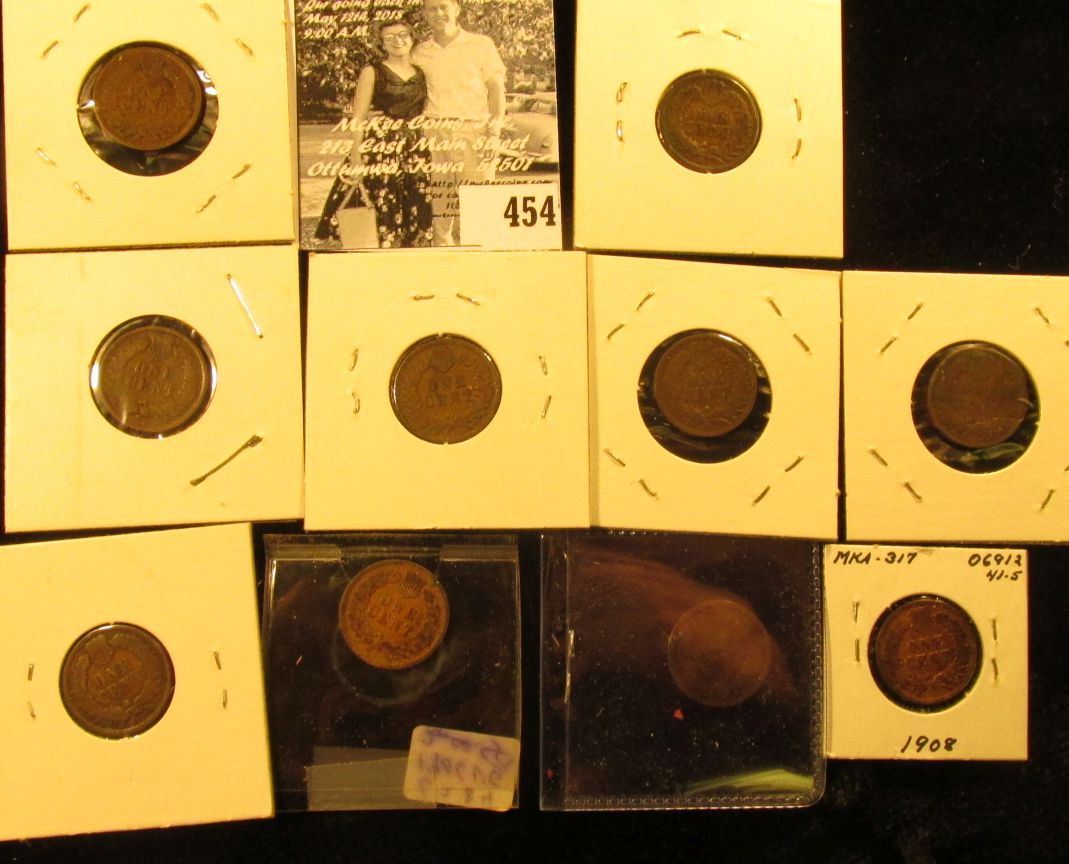 Group of Carded Indian Head Cents: 1893, 99, 1901, 02, 03, 04, 05, 06, 07, & 08. Grades up to Extra Fine.