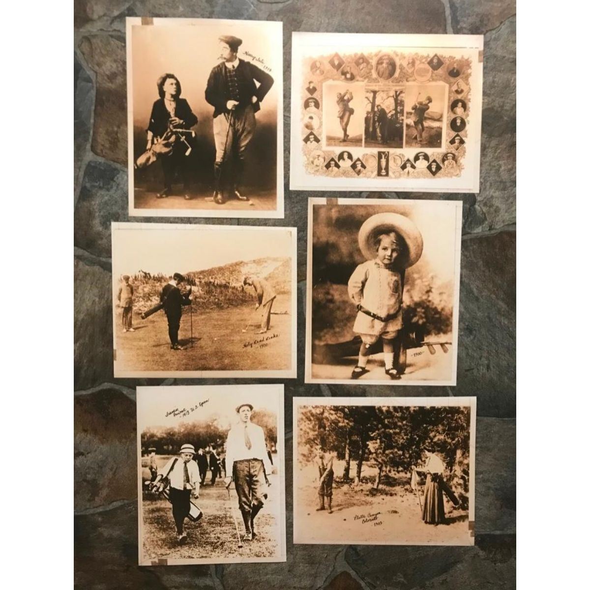 Group of 6 sepia-tone photo prints, clubhouse golfing scenes of the early 1900's. Vintage prints from the early 1990's, printed ona thin photo paper. Approx 8" X 10" each. Suitable for framing. Scenes include: - Jubilee of Golfing Championship 1860-1910 -Â Holy Land Links 1900 - Platte Canyon, Colorado 1903 - Little child caddy 1900 - Frances Ouinet U.S. Open 1913 - Harry Tate 1918