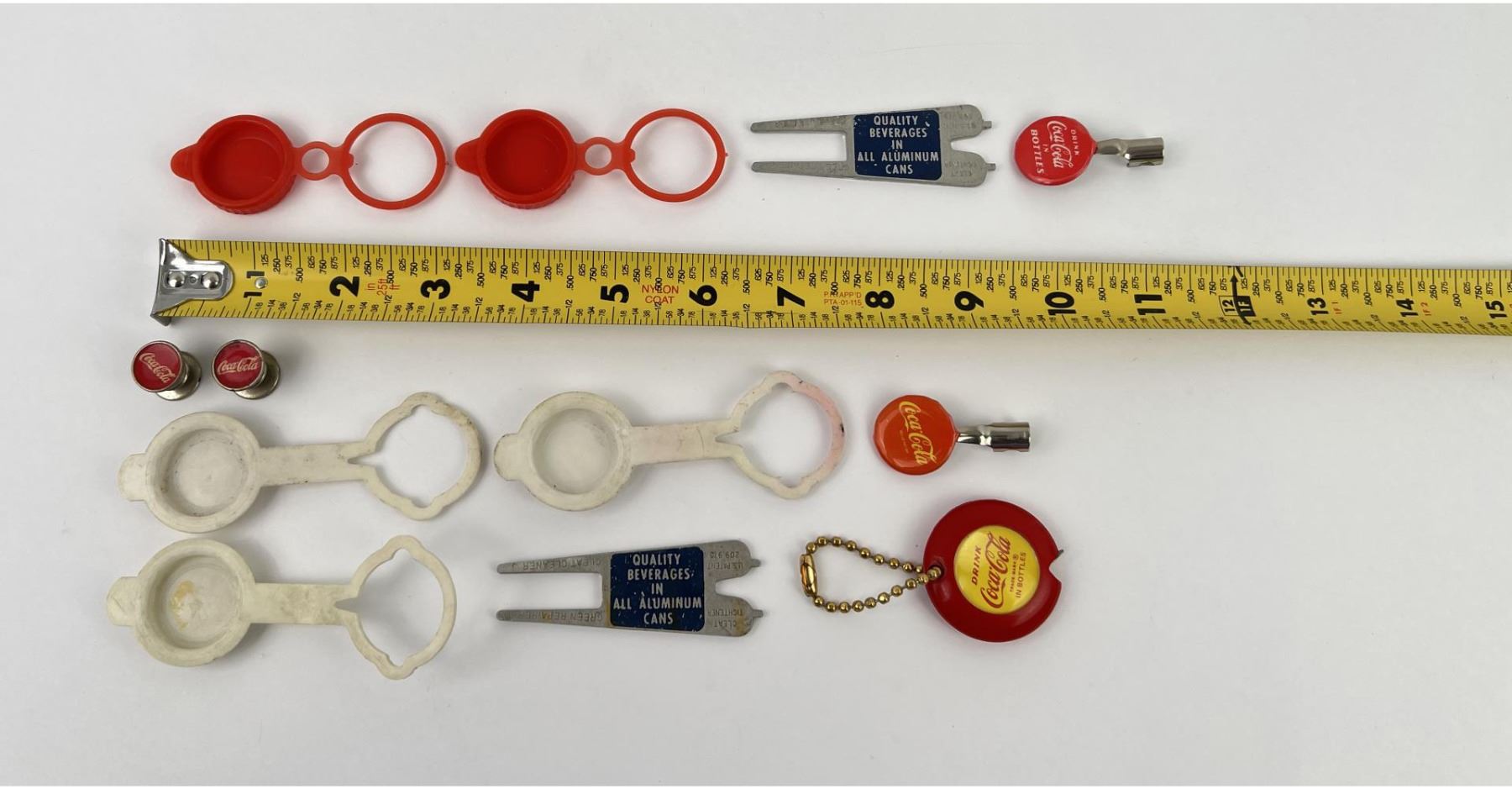 Nice grouping. Pen toppers, tape measure, bottle caps, and golf ball repair tools.