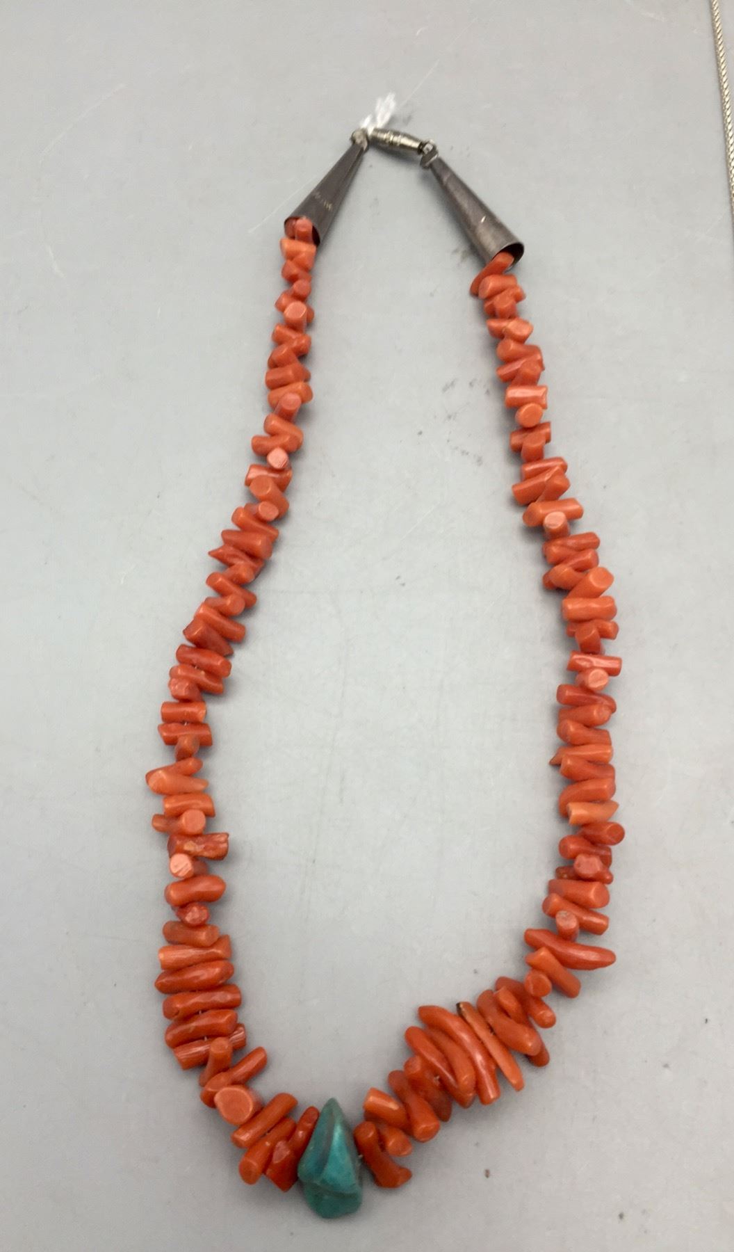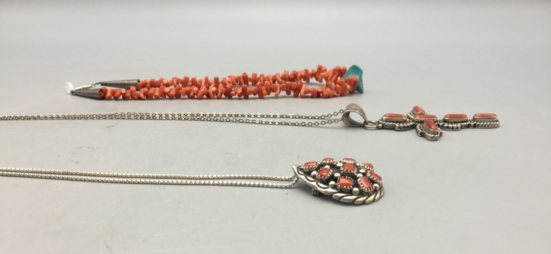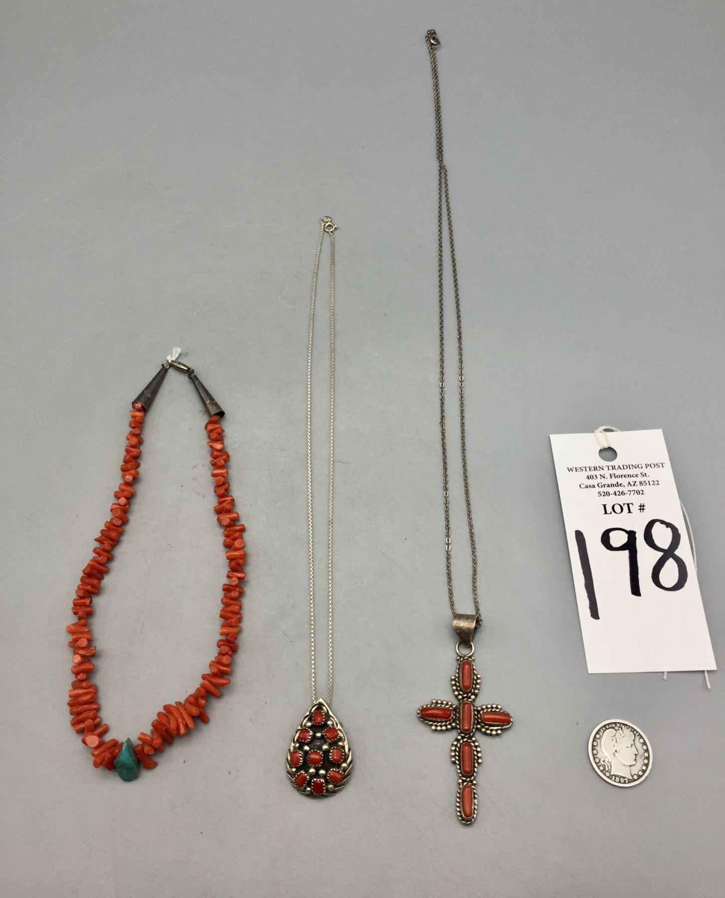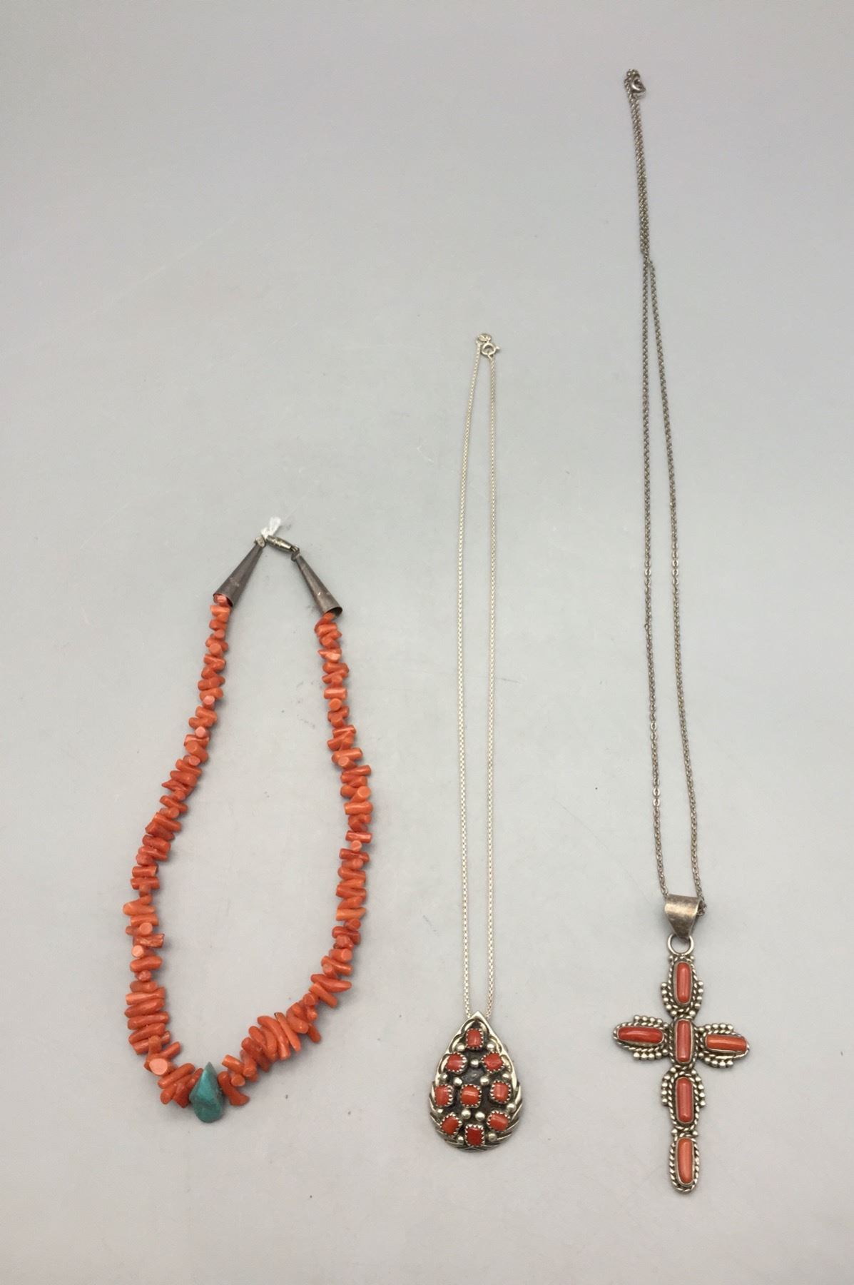 Description: For sale in this lot are three coral necklaces. They are various styles and designs and are sterling silver where applicable. Maker: Various. Approx. Age: Vintage to modern. Size: Various. Combined weight is 63 grams. Condition: Good for their ages, normal wear expected. Please look closely at the pictures - they are an important part of our description. Shipping: There will be a $5 handling / packaging fee for shipping this lot. The actual cost of postage will be added on top of that.