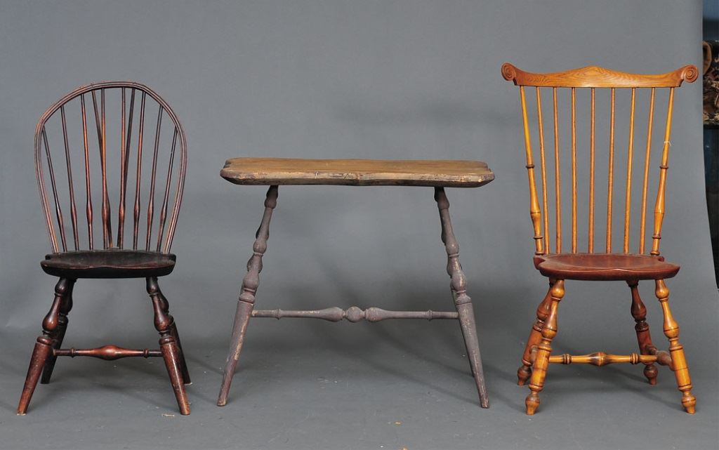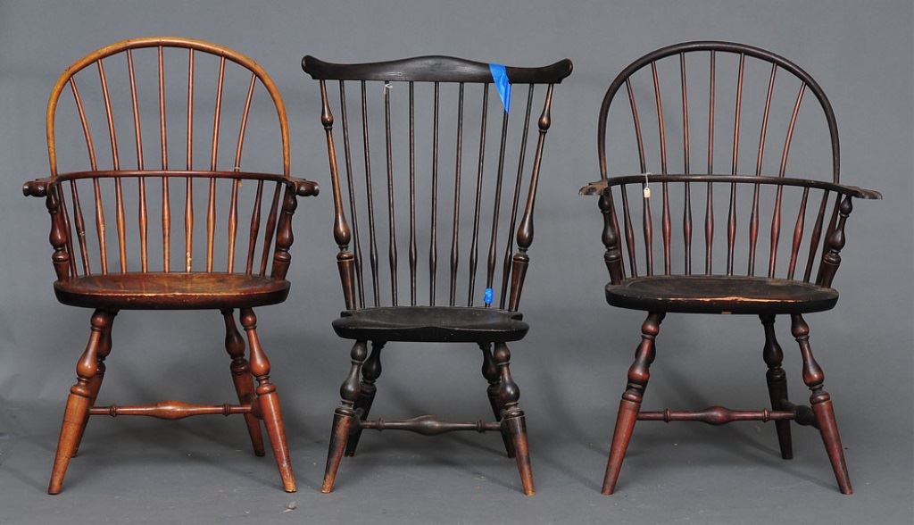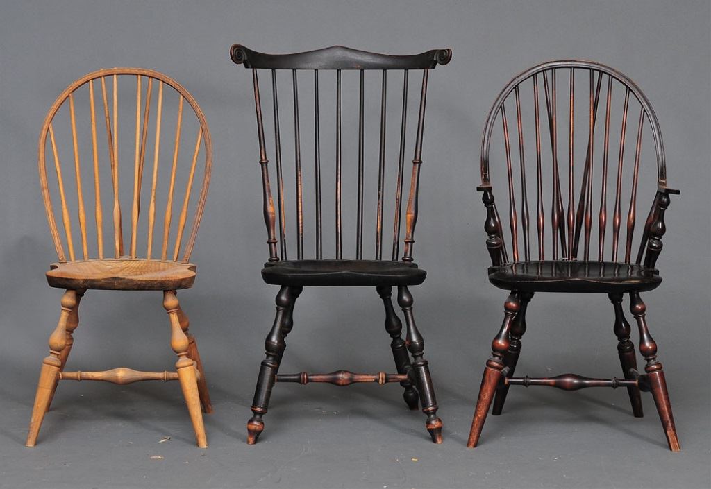 CONDITION REPORT: some lacking finish, others with cracks to hoop backs, one with broken spindle