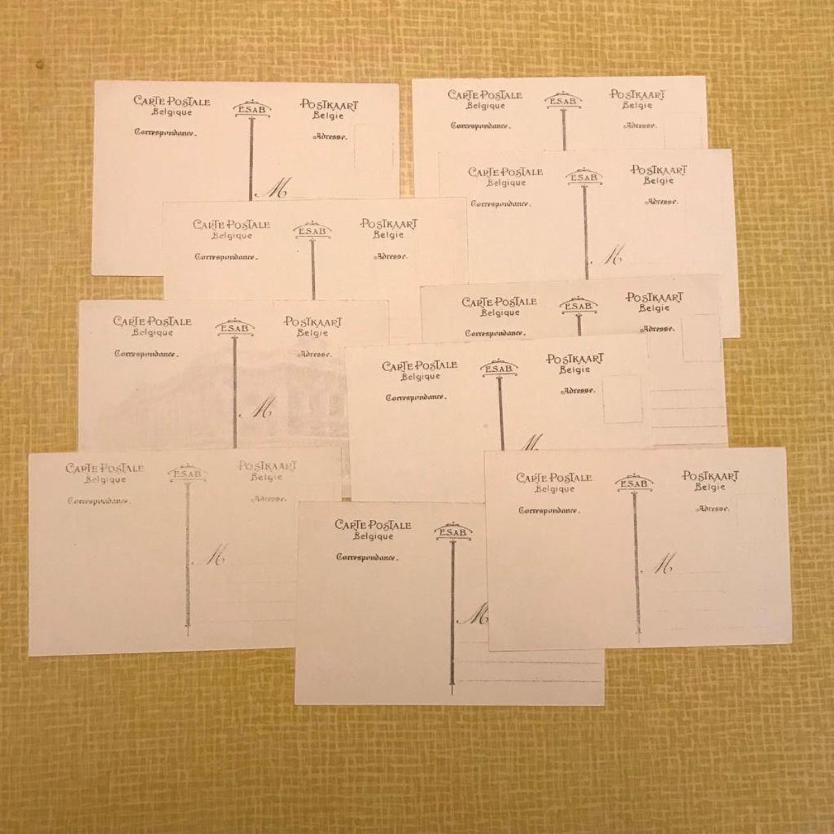 Group of 10 early 1900's sepia-tone numbered postcards. Grand Tour collectibles from Antwerp Belgium, Anvers Antwerpen. Scenes include: #2 Le Cathedrale, #3 Le Monument Brabo, #4 La Banque Nationale et Monument Leopold, #5 La Musee de Steen au ponton, #6 Le Musee de Beaux Arts, #7 Panorama de lav Ville, #9 Le "Steen", #9 Gare Centrale, #11 Le Theatre Royal Flamand, #13 Tour de la Cathedrale a la Grand Place. 3 1/2" X 5 1/2" each.Â
