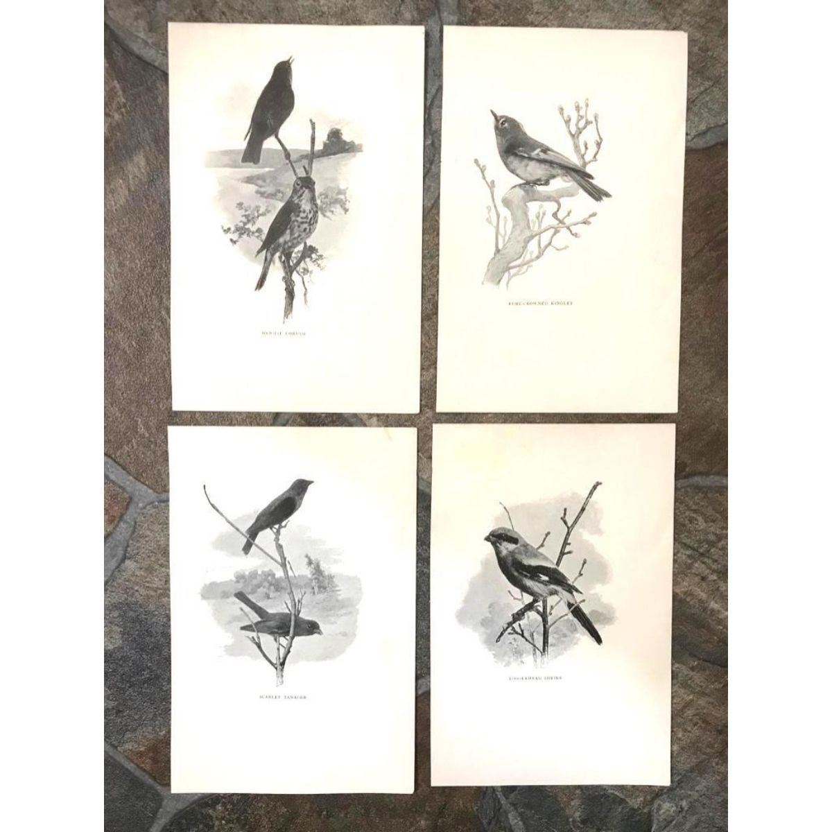 Group of 4 early 1900's half-tone book plate lithographs of birds of branches. Includes: Loggerhead Shrike, Scarlet Tanager, Hermit Thrush & Ruby-Crowned Kinglet. Â 5" X 8" each.Â