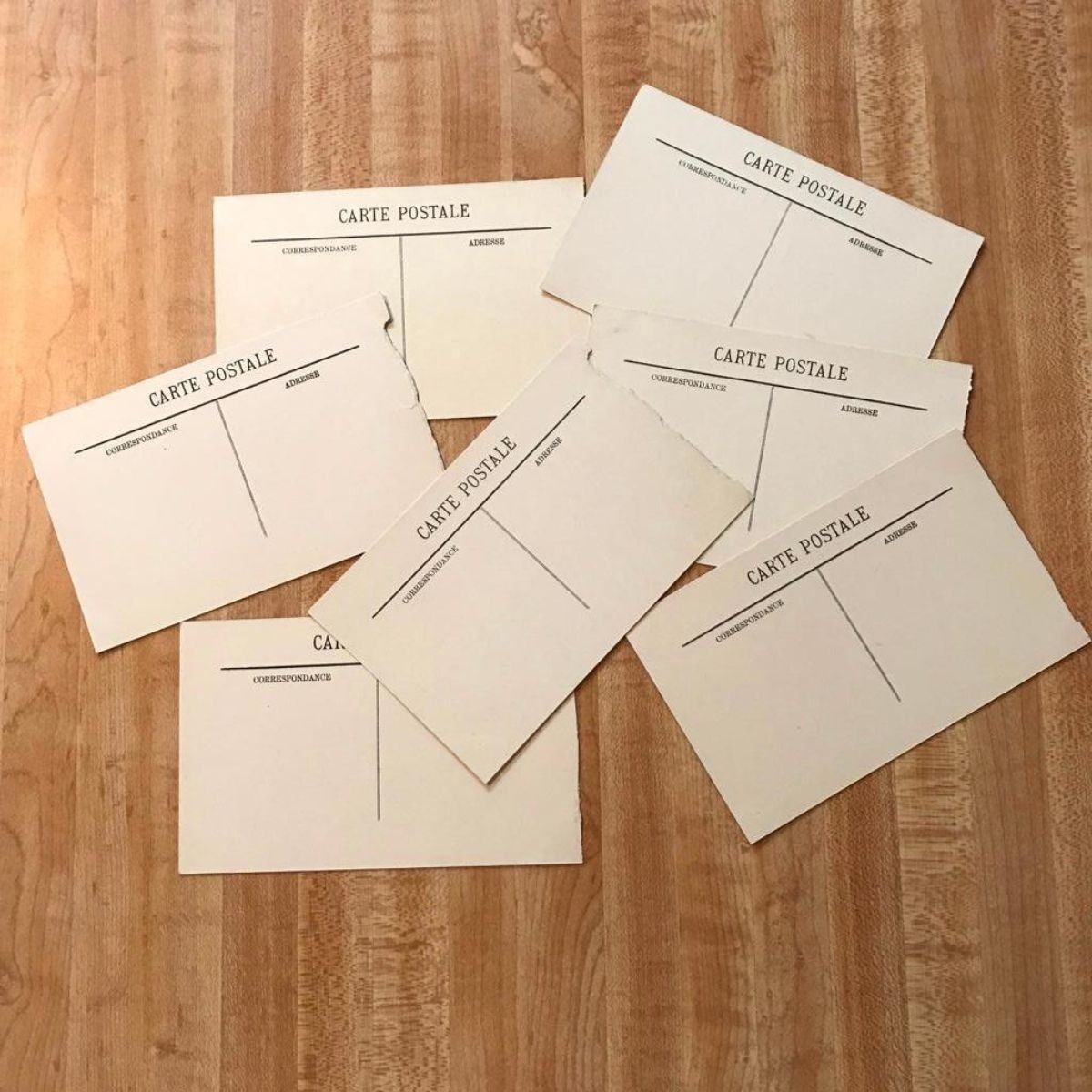 Group of 7 early 20th century ( c.1915 ) Grand Tour postcards of famous vistas in Paris France to include: #777 La Tour Eiffel, #175 La Place de las Bastille, #780 L'Opera, #238 Le Dome, #1193 Le Sacre Coeur, #710 Panorama vers la Place de la Concorde et la Seine & # 165 La Rue Soufflet et le Pantheon. Each card approx 3 1/4" X 5 1/4". In unused condition, obviously pulled from a perforated book of cards, with some edges slightly torn.