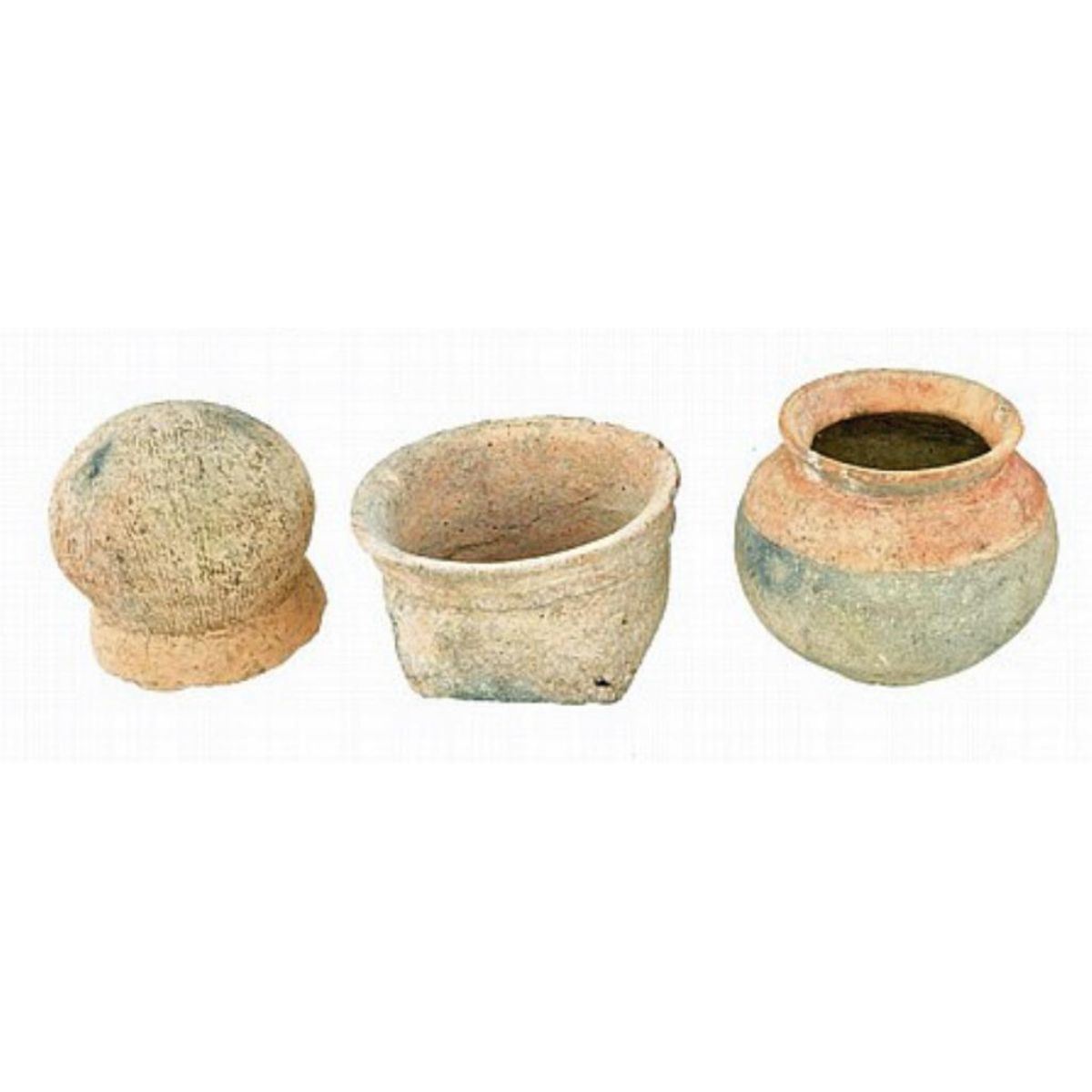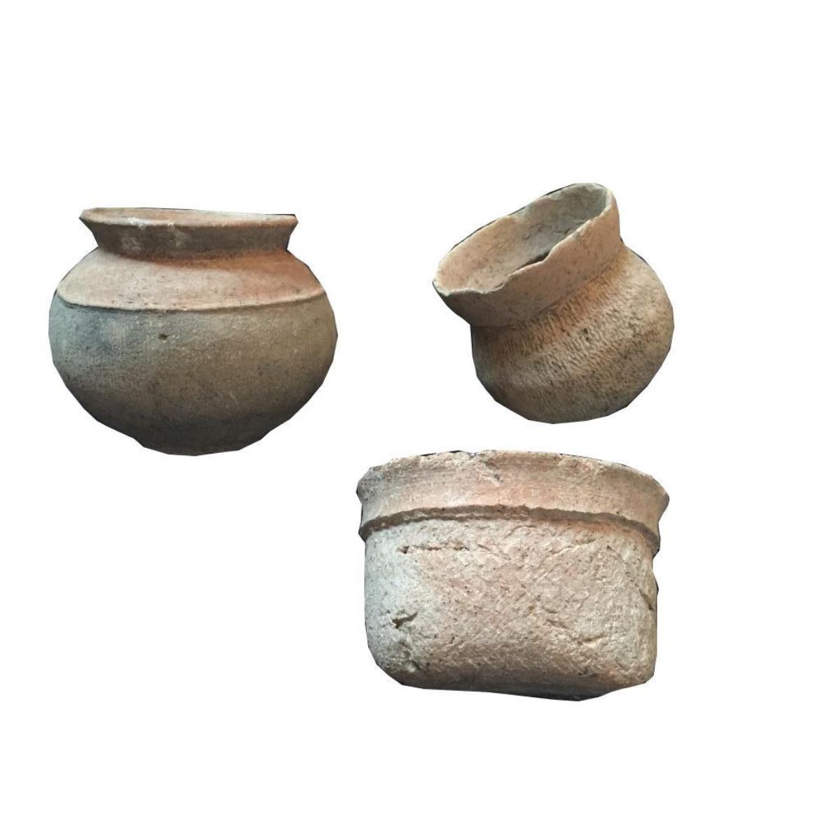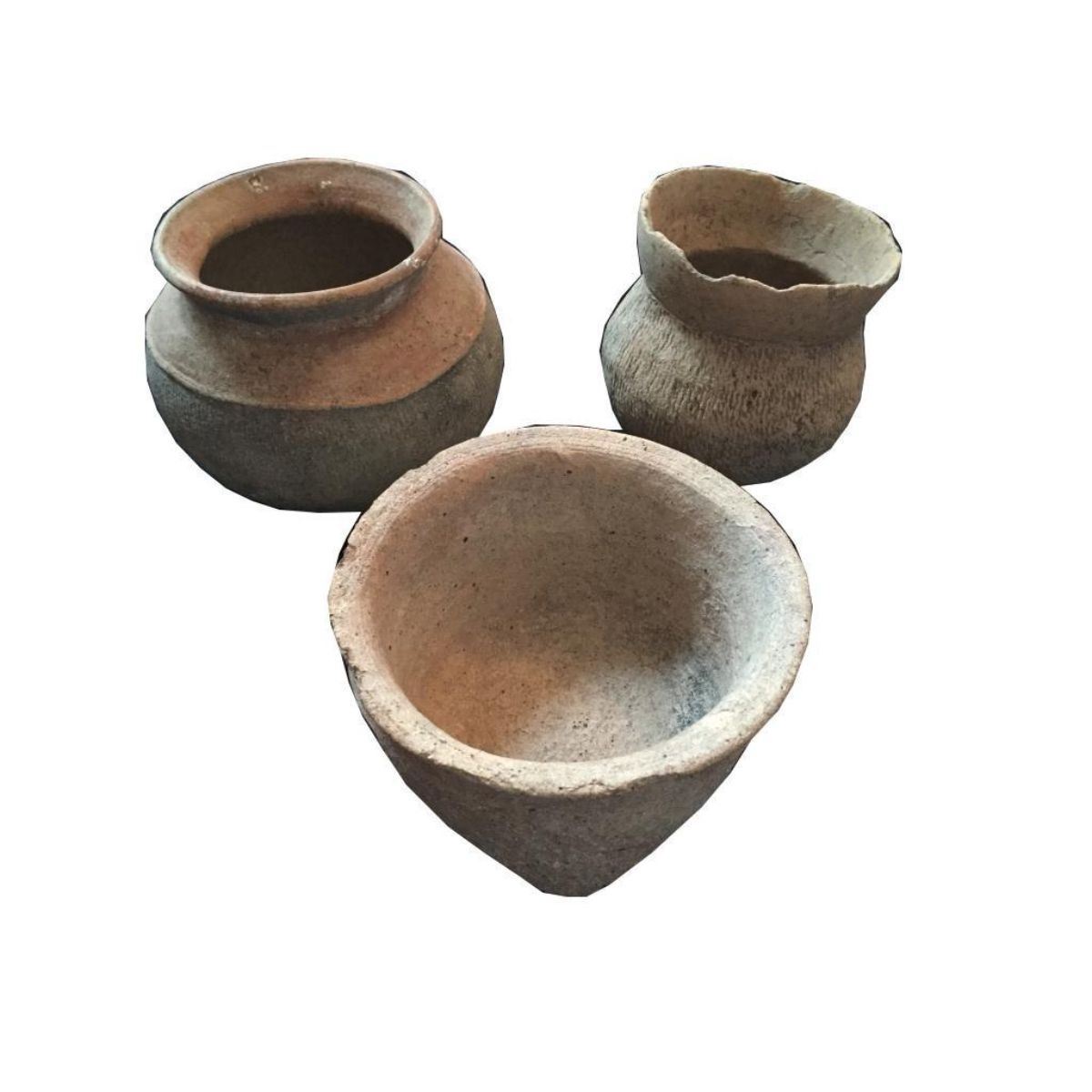 Group of 3 Early Meso-American Vessels. Includes 3 early pottery bowls & jars of Mezo-American origin. In quite a good state of preservation. Height of tallest jar is approximately 5 ". Width is approx. 3®-4". A wonderful instant collection! Meso-America is a region and cultural area in the Americas, extending approximately from central Mexico to Belize, Guatemala, El Salvador, Honduras, Nicaragua, and northernCosta Rica, within which a number of pre-Columbian societies flourished before the Spanish colonization of the Americas in the 15th and 16th centuries.