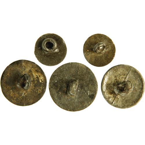 <B>Group of Early U.S. Infantry Buttons.</B></I> A group of early infantry buttons, circa 1812-1815, pewter, in various sizes including two 19mm foliated script "I" (GI 36A3), with oval below, no backmark; a 20mm (GI 36B) a 15mm (GI 36C), and a 15mm (GI 36A). All buttons are in very good or better condition.<BR><BR><b>Shipping:</b> Miscellaneous Collectibles, Smal (<a target="_blank" href="http://www.heritageauctions.com/common/shipping.php">view shipping information</a>)
