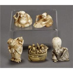 Group of Eight Japanese Ivory Netsuke Studies of Immortals and Men