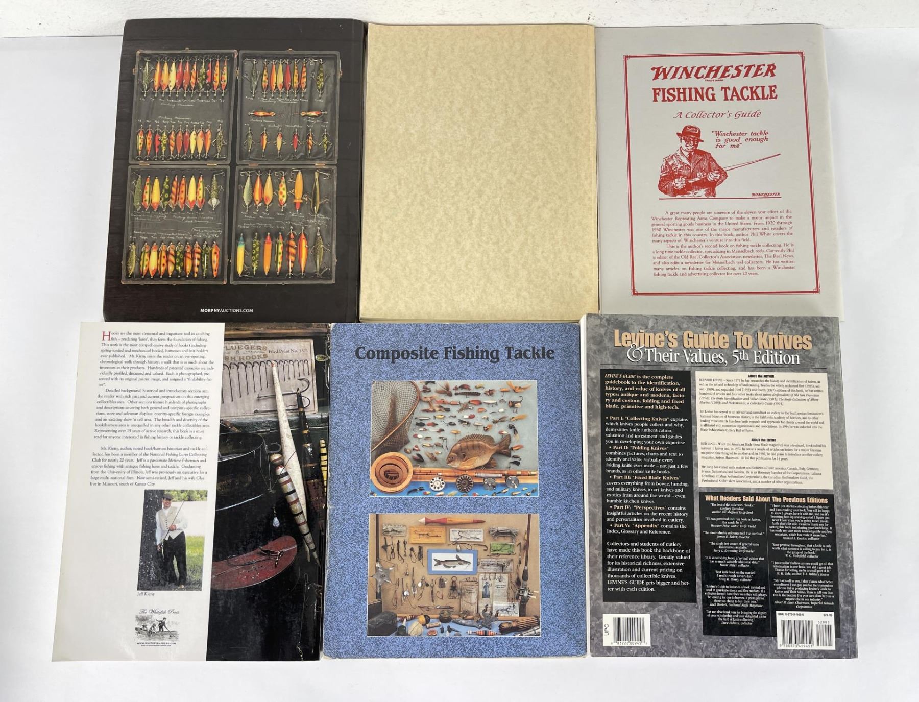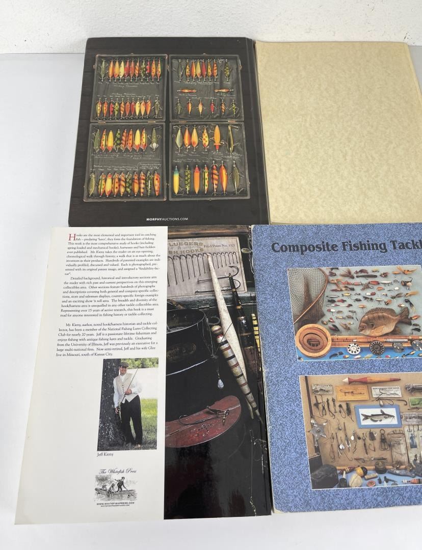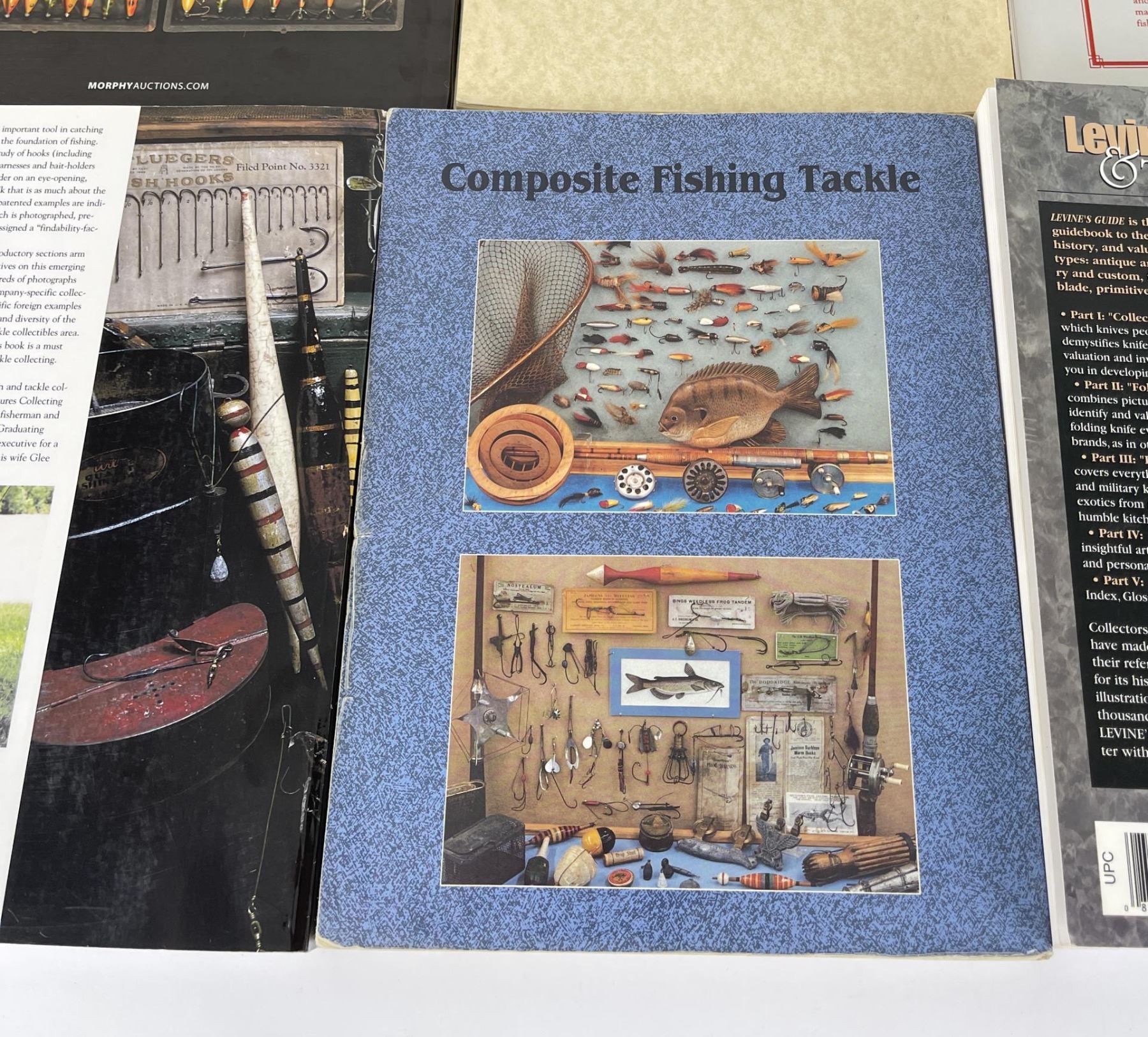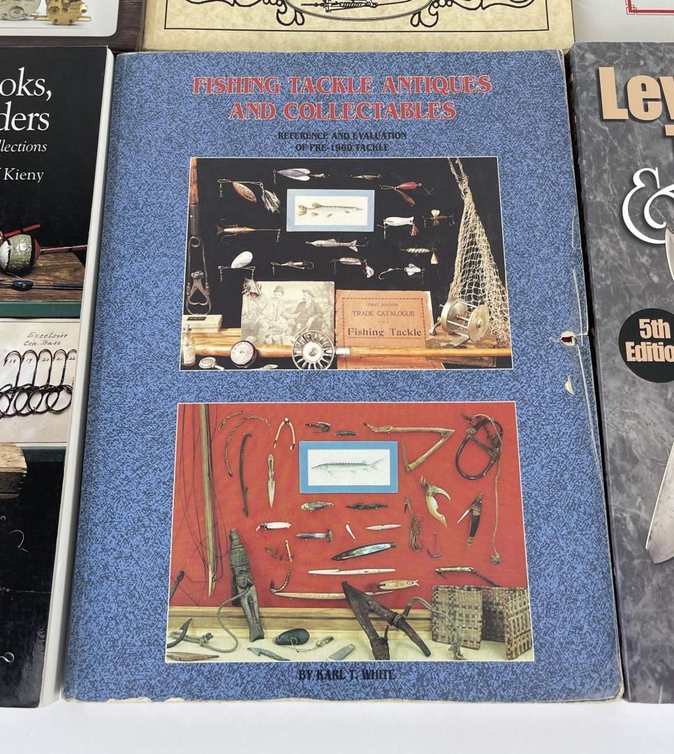 Fishing Tackle Antique and Collectables, Patented Hooks Harness Bait Holders, Winchester Fishing Tackle, Identification guide to Hooks & Harnesses, Morphy Fishing Tackle Auction Catalog, and a Levine's Guide to Knives.