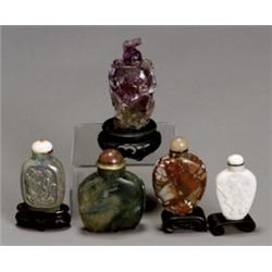 Group of Five Chinese Hardstone Snuff Bottles