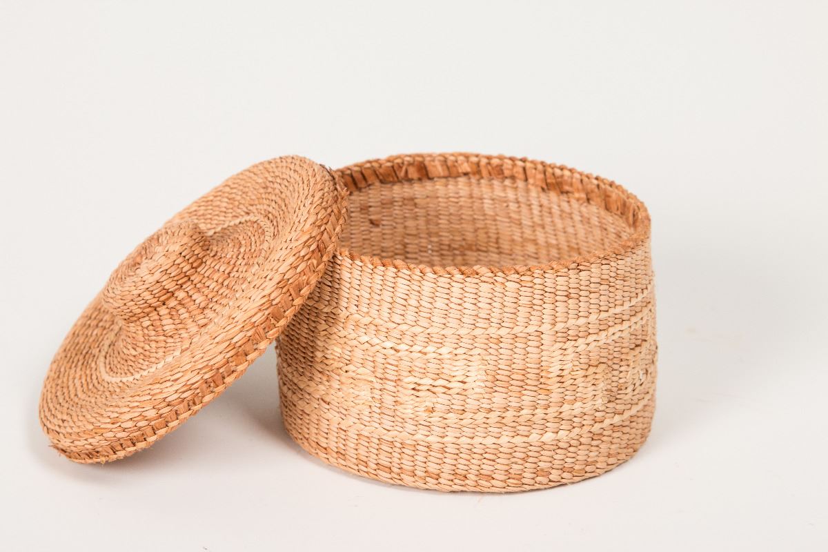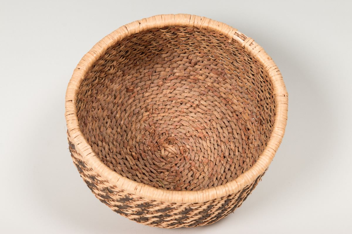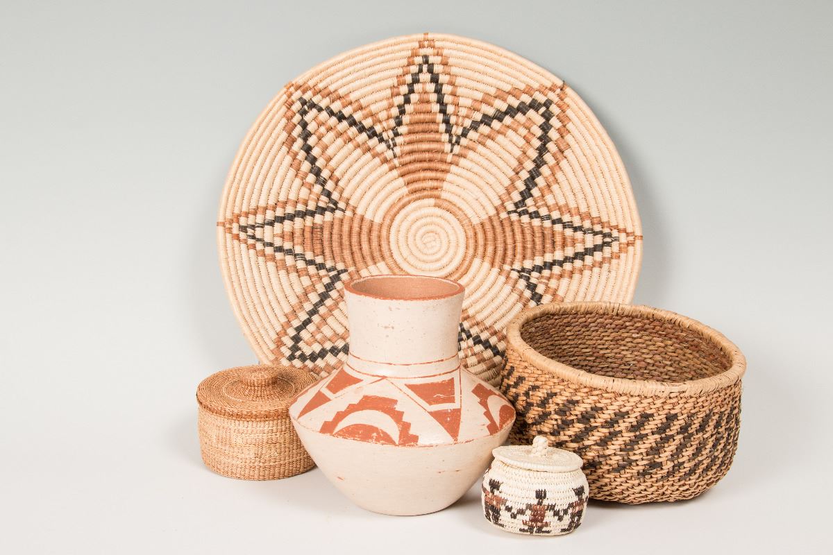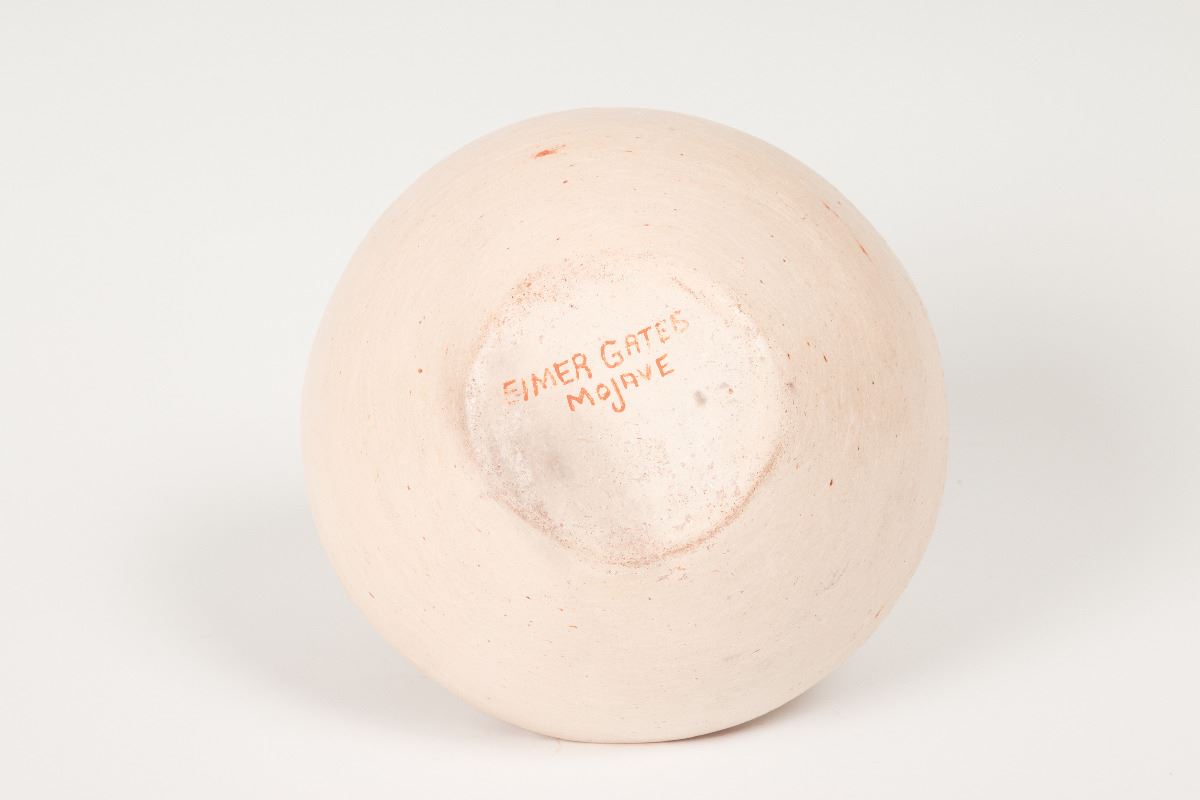 Group of Five Items: 1) Seri Basket. 14" diameter. Circa 1979. 2) Mojave Red on Buff Jar by Elmer Gates (1929-1990). 6" x 6 ½". Signed on bottom: Elmer Gates. Mojave.