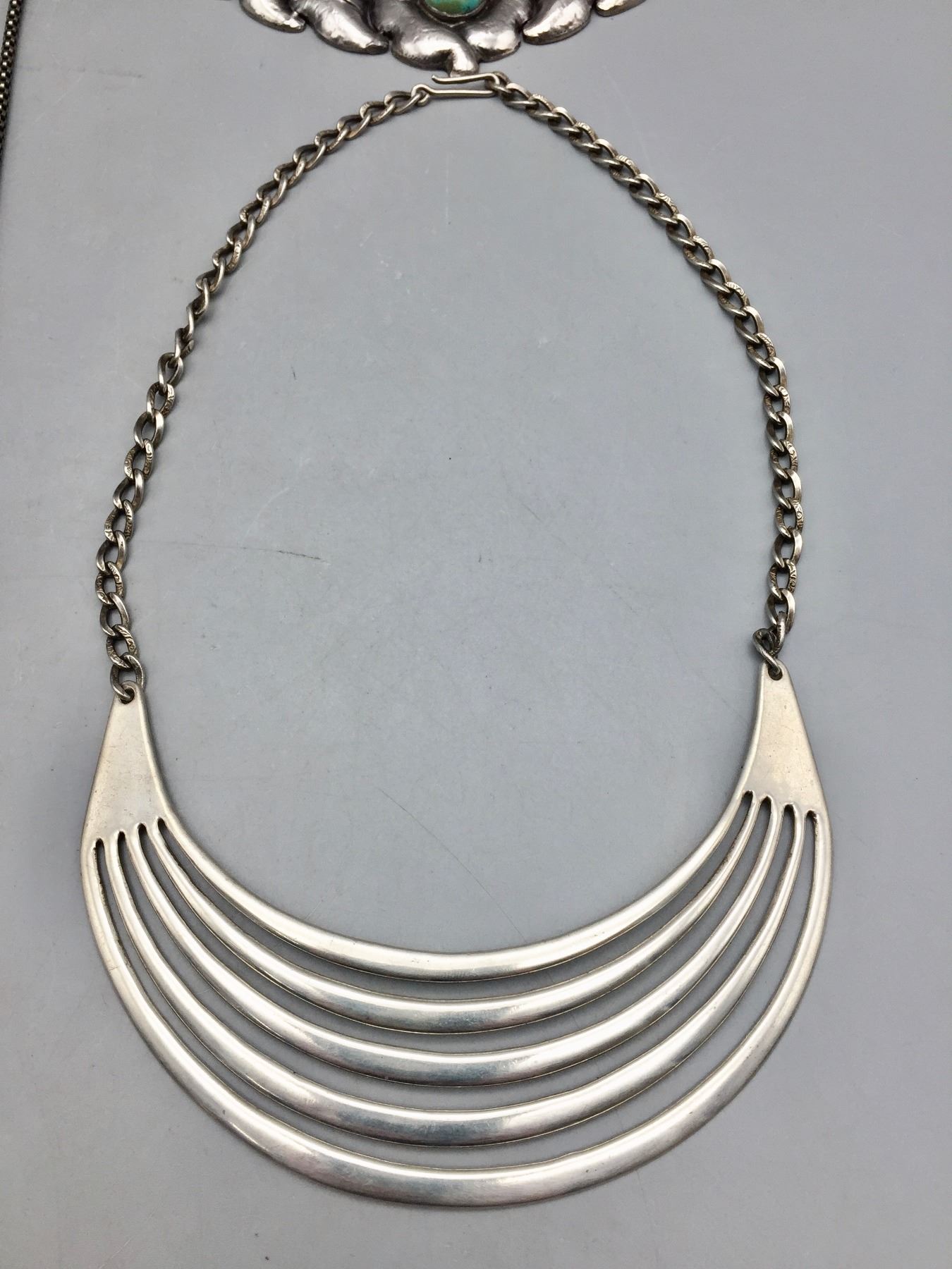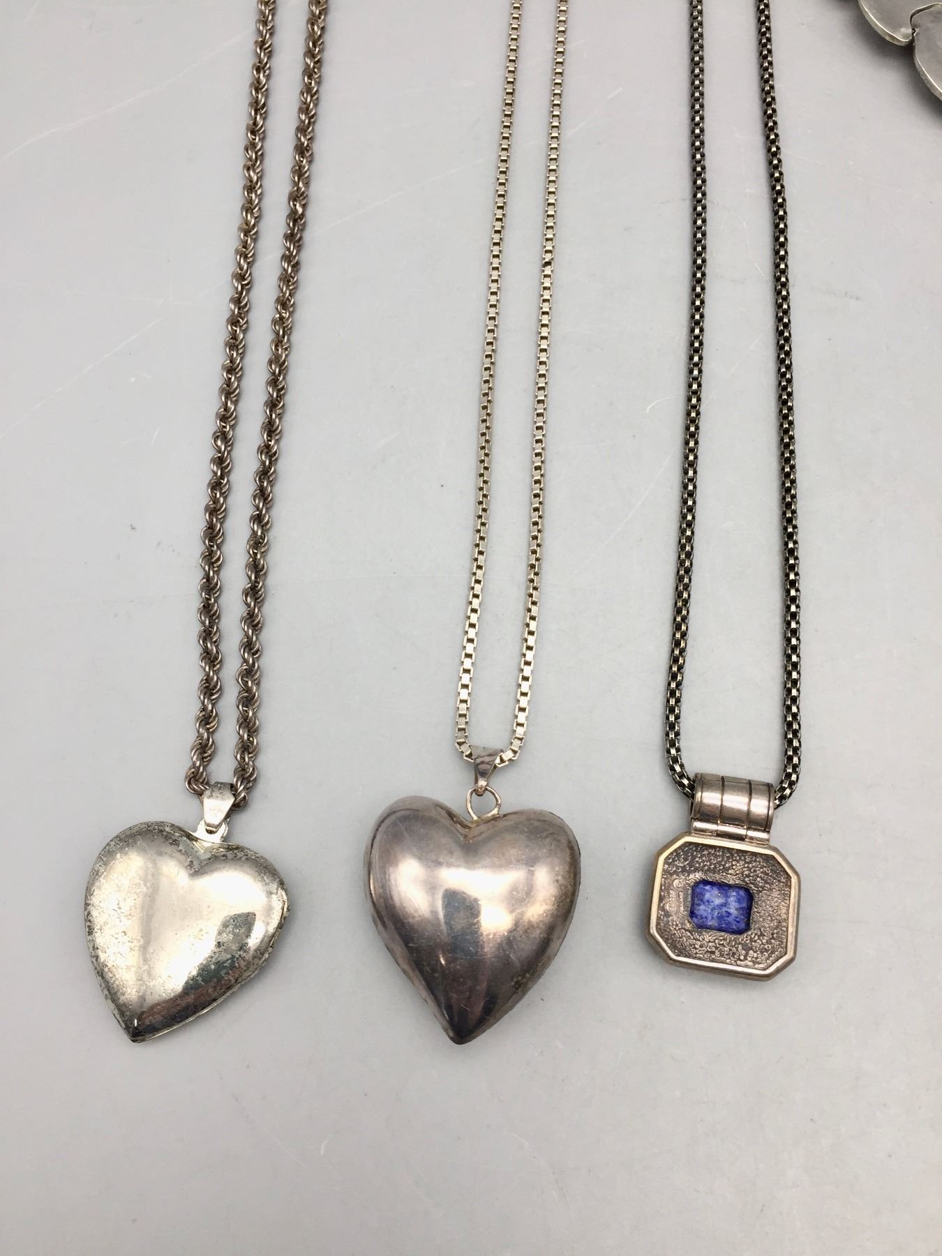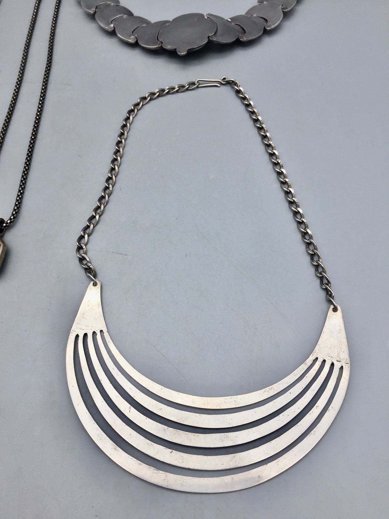 Description: Included in this bargain lot is a group of five necklaces in varying styles and sizes. Some are choker style and some are on chains with pendants.