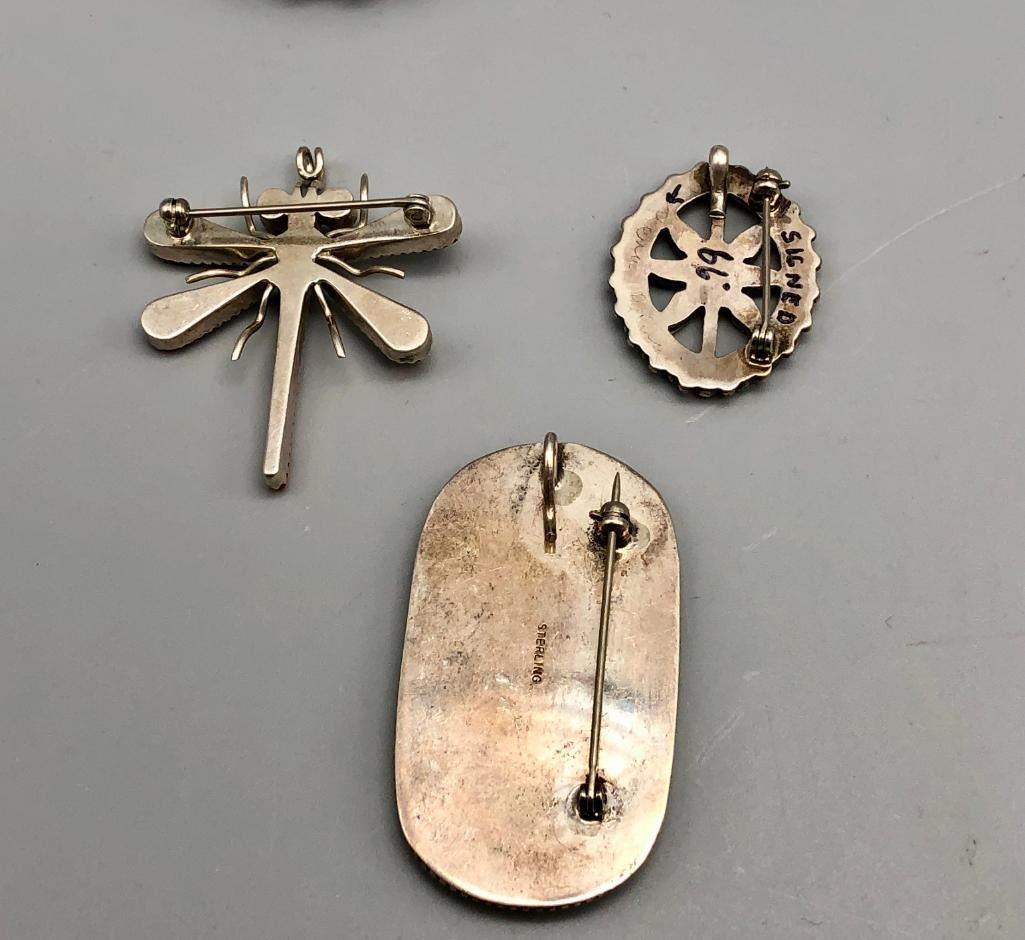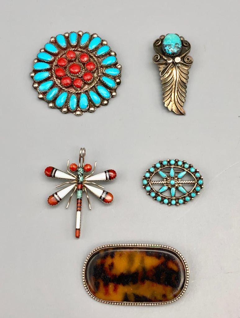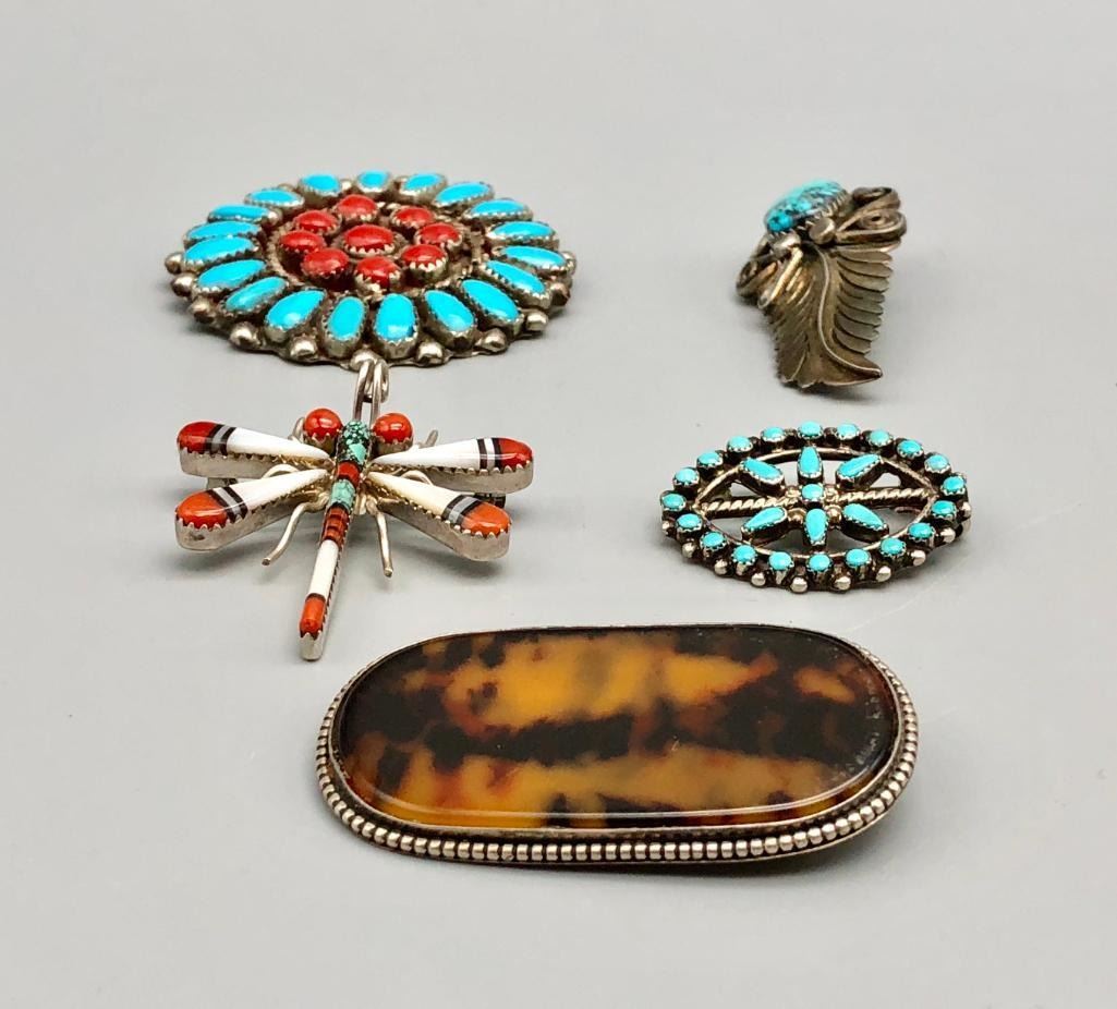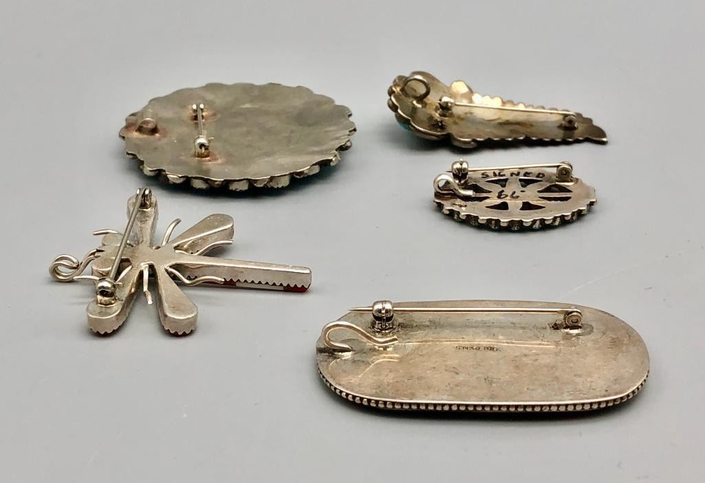 Up for consideration is a group of five pin/pendants. All are various sizes and styles. They all are set with various stones and are made from sterling silver. MAKER: Various. APPROX AGE: Vintage. SIZE: Various. Combined weight is 53.6 grams. CONDITION: Good for their age, normal wear expected. Please look closely at the pictures as they are an important part of our description and are hereby incorporated into the description, specifically with regards to condition. SHIPPING: There will be a $5 handling / packaging fee for shipping this lot. The actual cost of postage will be added on top of that. BUY IT NOW: If you would like to buy this item now, without waiting for the auction day to bid on it, we do offer this option (which is available up to 48 hours before the actual auction starts). The “Buy it Now†price is the high estimate of this lot (plus applicable fees and the Buyer's premium is discounted to 10% when using the Buy it Now option). If you would like to exercise this option, you must contact us by email (or phone as long as you talk to someone live). Reference this lot number and your intention to "Buy it Now."