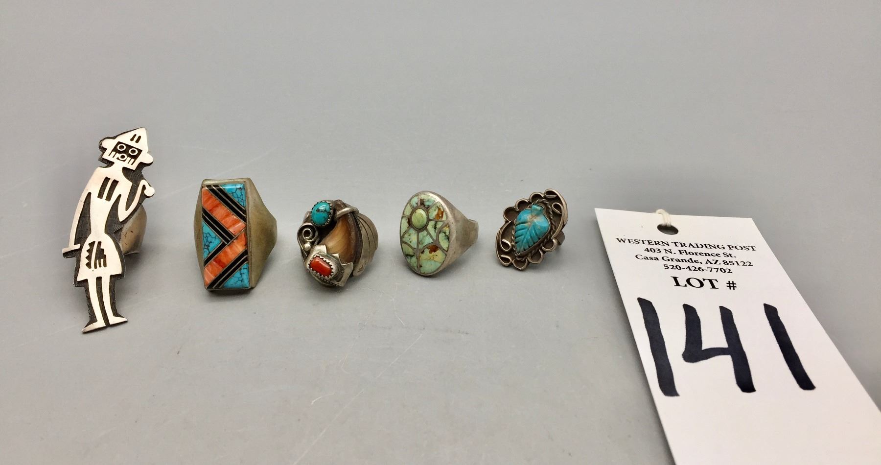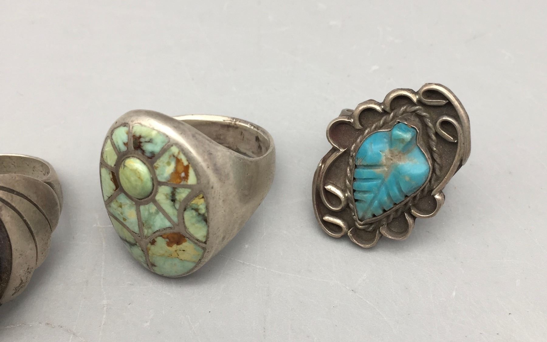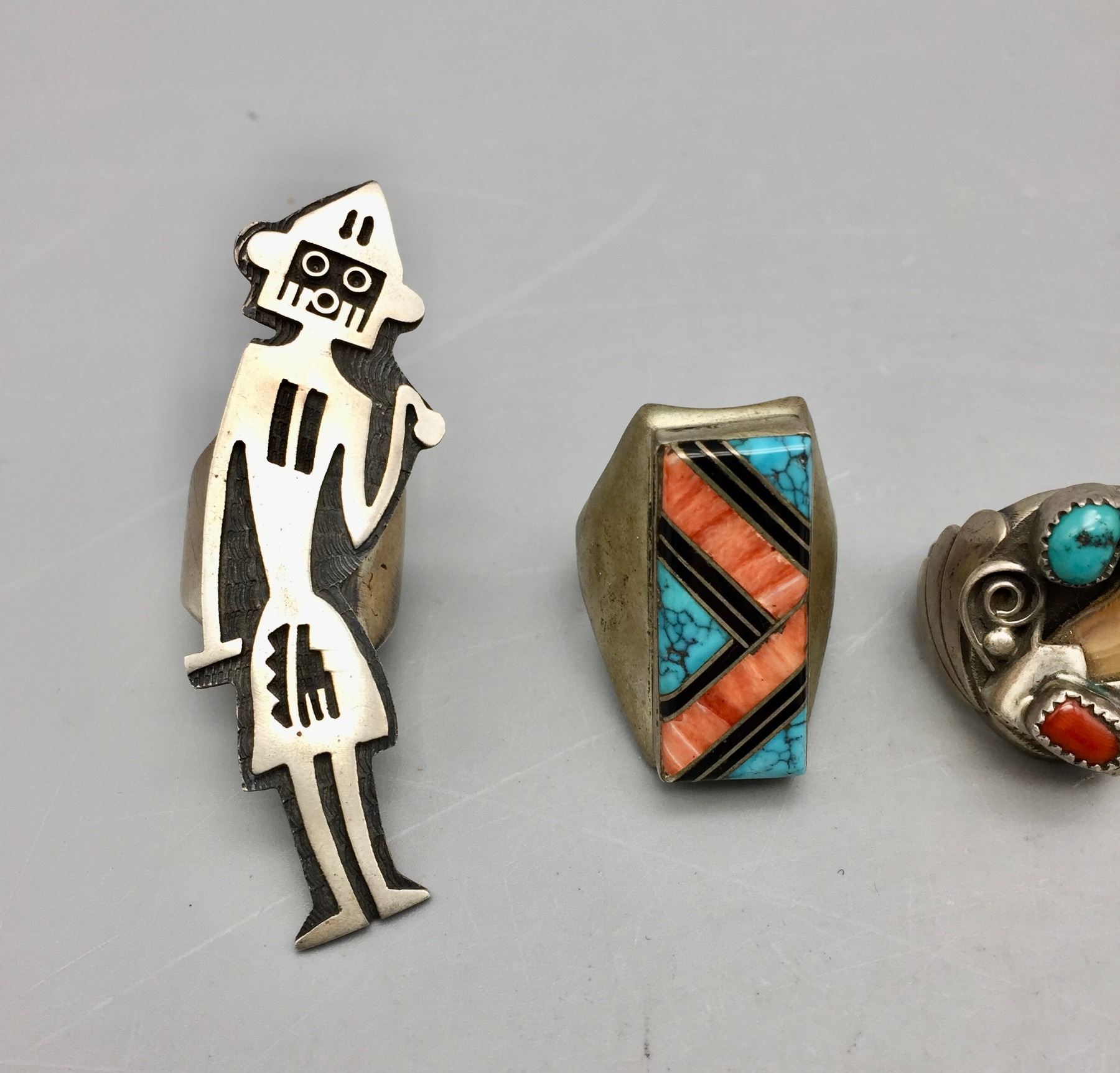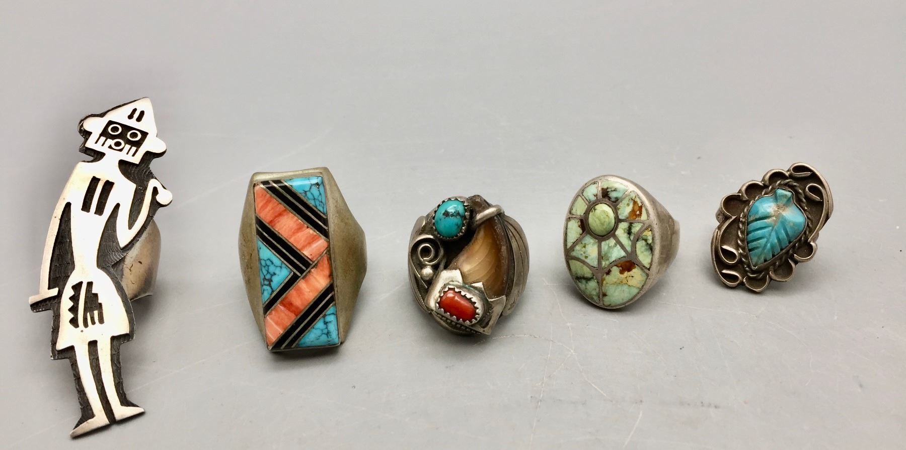 Description: Featured in this lot is a group of rings in a variety of styles and sizes. All are sterling silver.                                                                                                           Maker: Various.                                                                                                                 Approx. Age: Vintage.                                                                                                            Size: Various. 78.8 grams                                                                                                                                                                                                                                 Condition: Good for their age, normal wear expected.                                                                                                                Please look closely at the pictures - they are an important part of our description.                                Shipping: There will be a $5 handling / packaging fee for shipping this lot. The actual cost of postage will be added on top of that.
