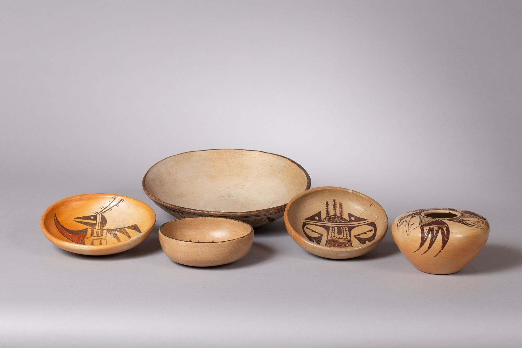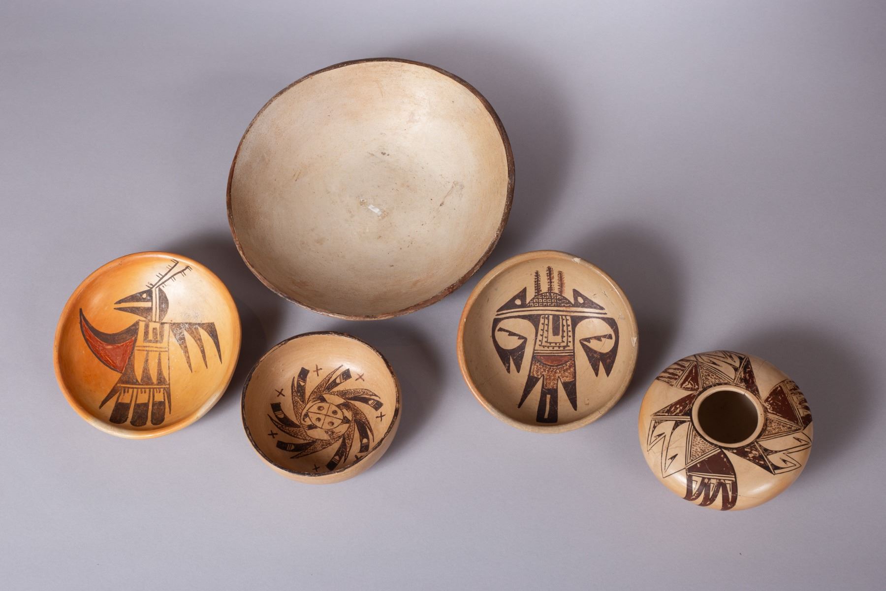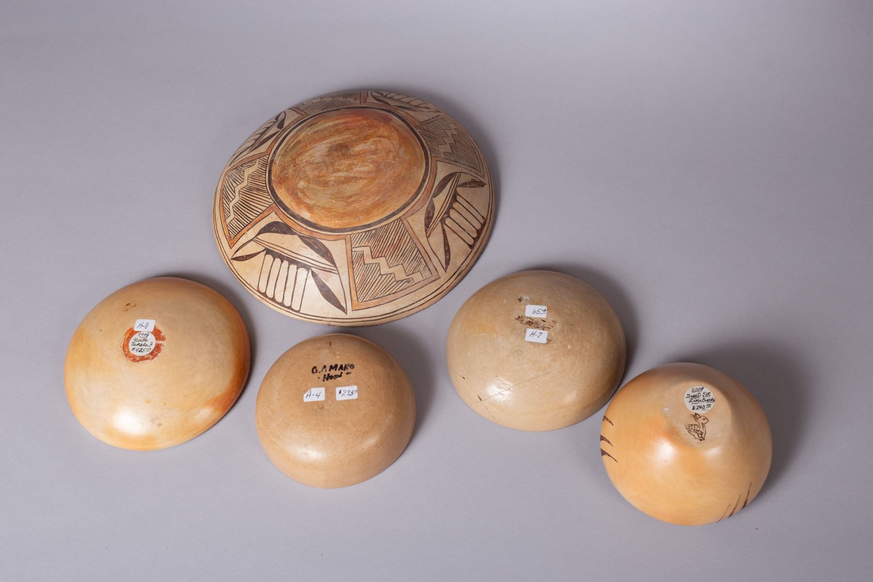 Group of Five Vintage Hopi Polychrome Pottery Bowls