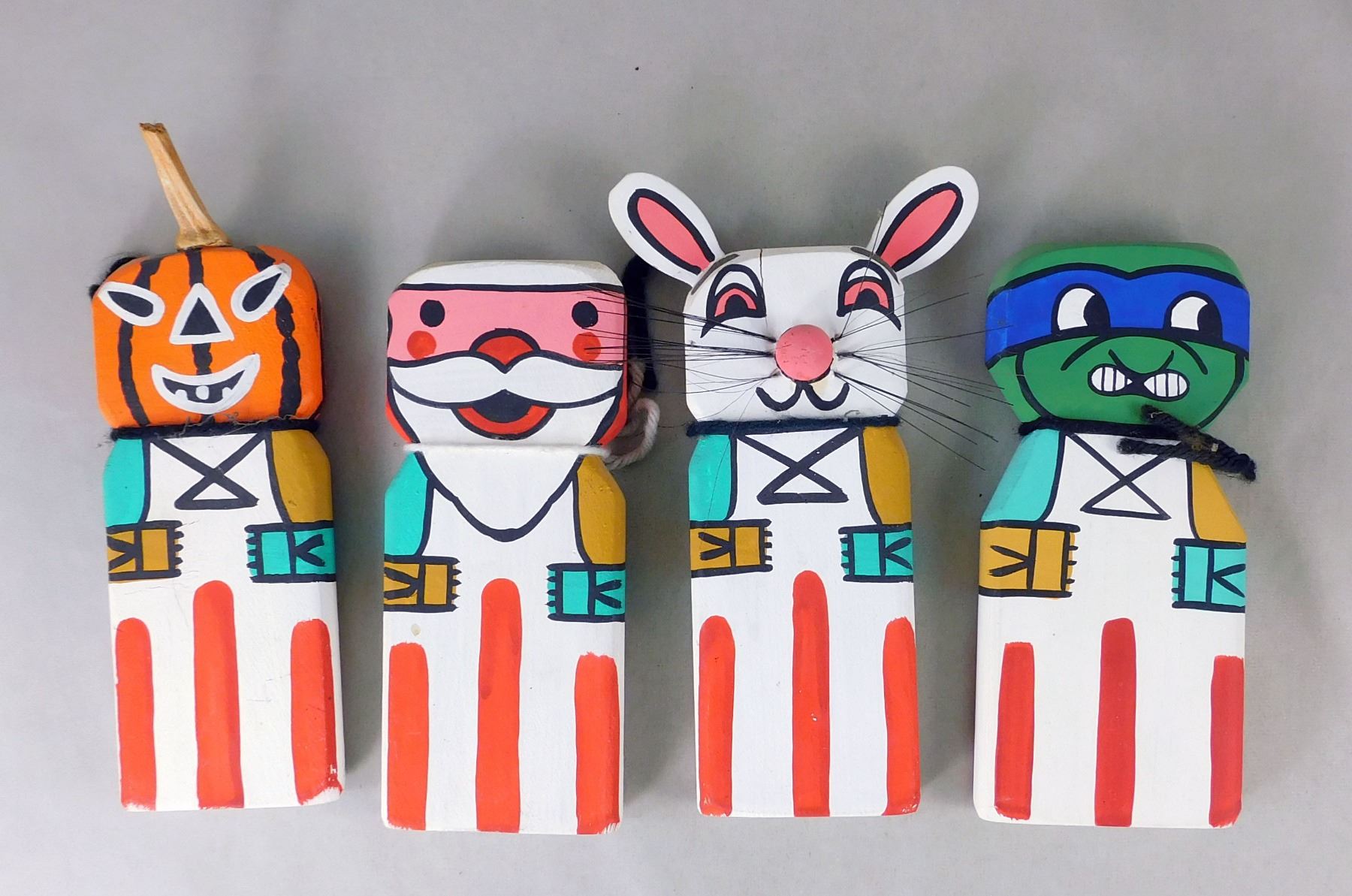 Great Pumpkin, Easter Bunny, Santa, Ninja Turtle, 6" tall.