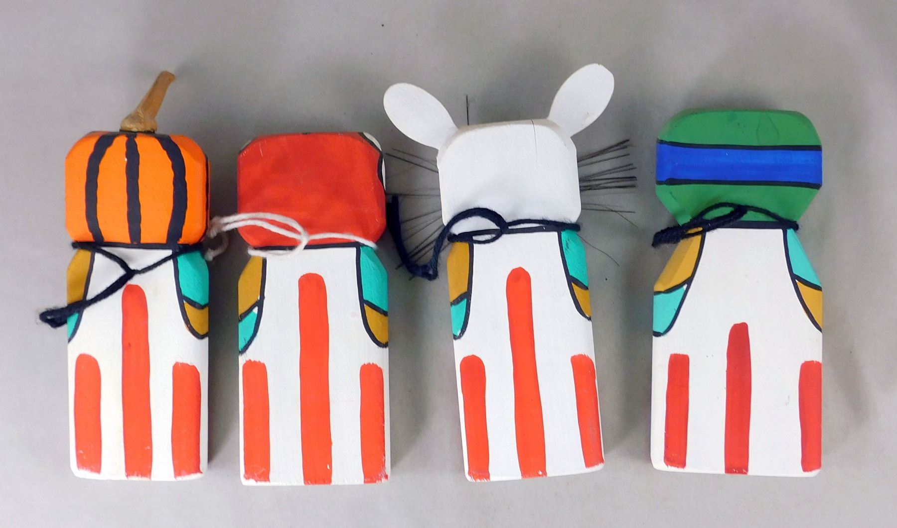 Group of 4 flat dolls by Theodore Puhuyesva, circa 1990.