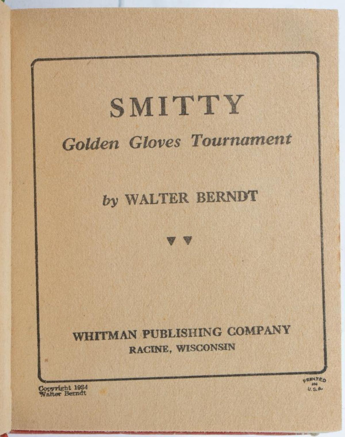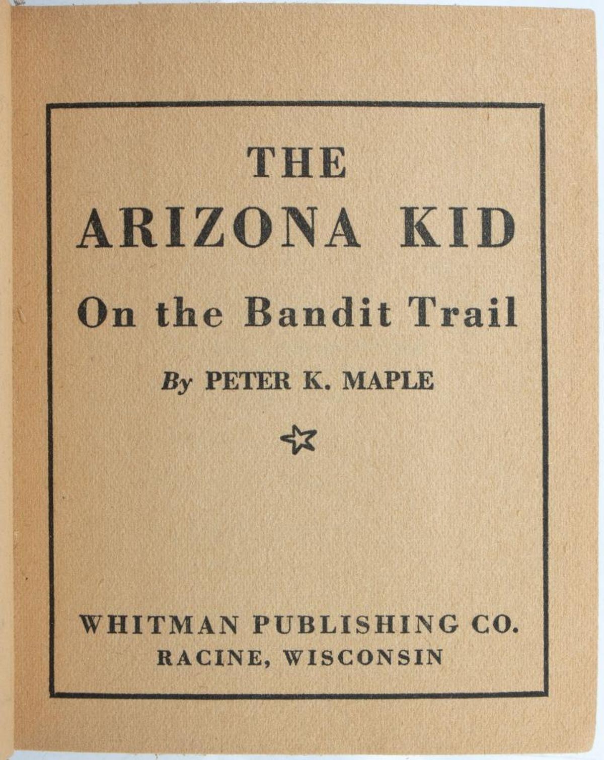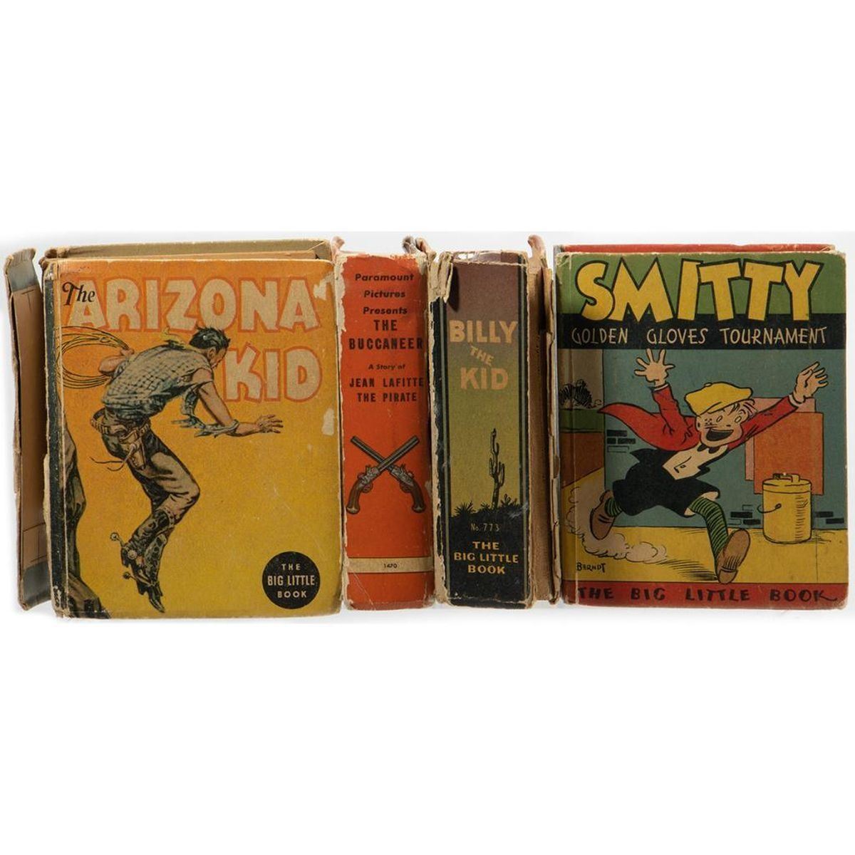Various Big Little Book titles, Poor to Good condition: 1. THE BUCCANEER. No. 1470. Paramount Pictures movie tie-in with photographic illustrations; n.d. Disbound and cover bent/worn. 2. BERNDT, WALTER. Smitty Golden Gloves Tournament. Racine: Whitman Publishing Company, 1934. Toned, small tear on back cover. 3. MAPLE, PETER K. The Arizona Kid on the Bandit Trail. Racine: Whitman Publishing co., 1936. Spine is detached, splitting, fading, wear, toned. 4. MORGAN, LEON. Billy the Kid. Racine: Whitman Publishing Co., 1935. With pictures by Hal Arbo. Spine and back cover fully detached, splitting, fading, wear, toned.