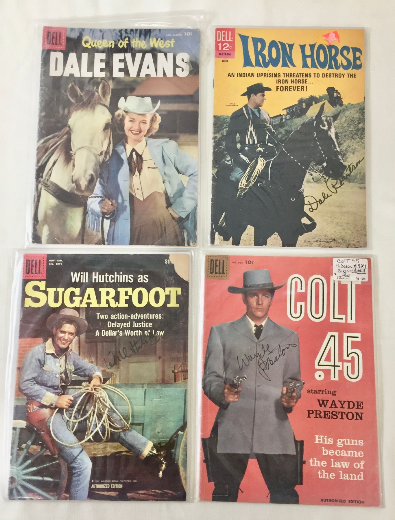 Description: Included for sale in this lot is a group of four "Golden Era" Cowboy comics featuring Wayde Preston, Will Hutchins, Dale Robertson, and Dale Evans. Maker: Dell Comic.
