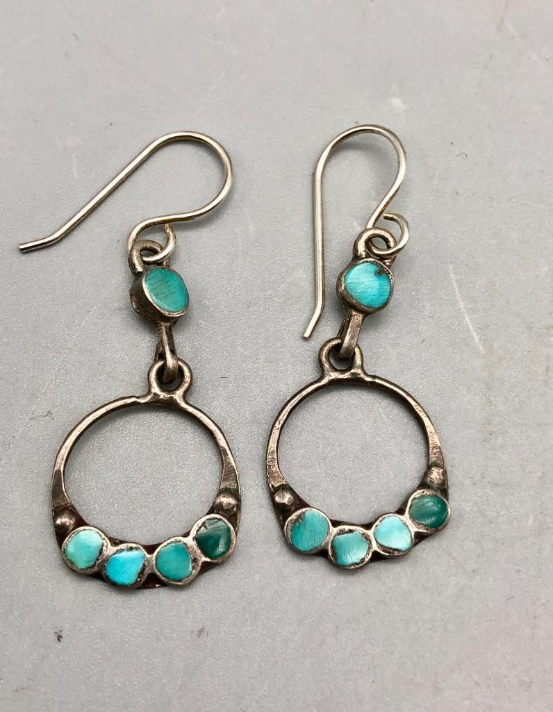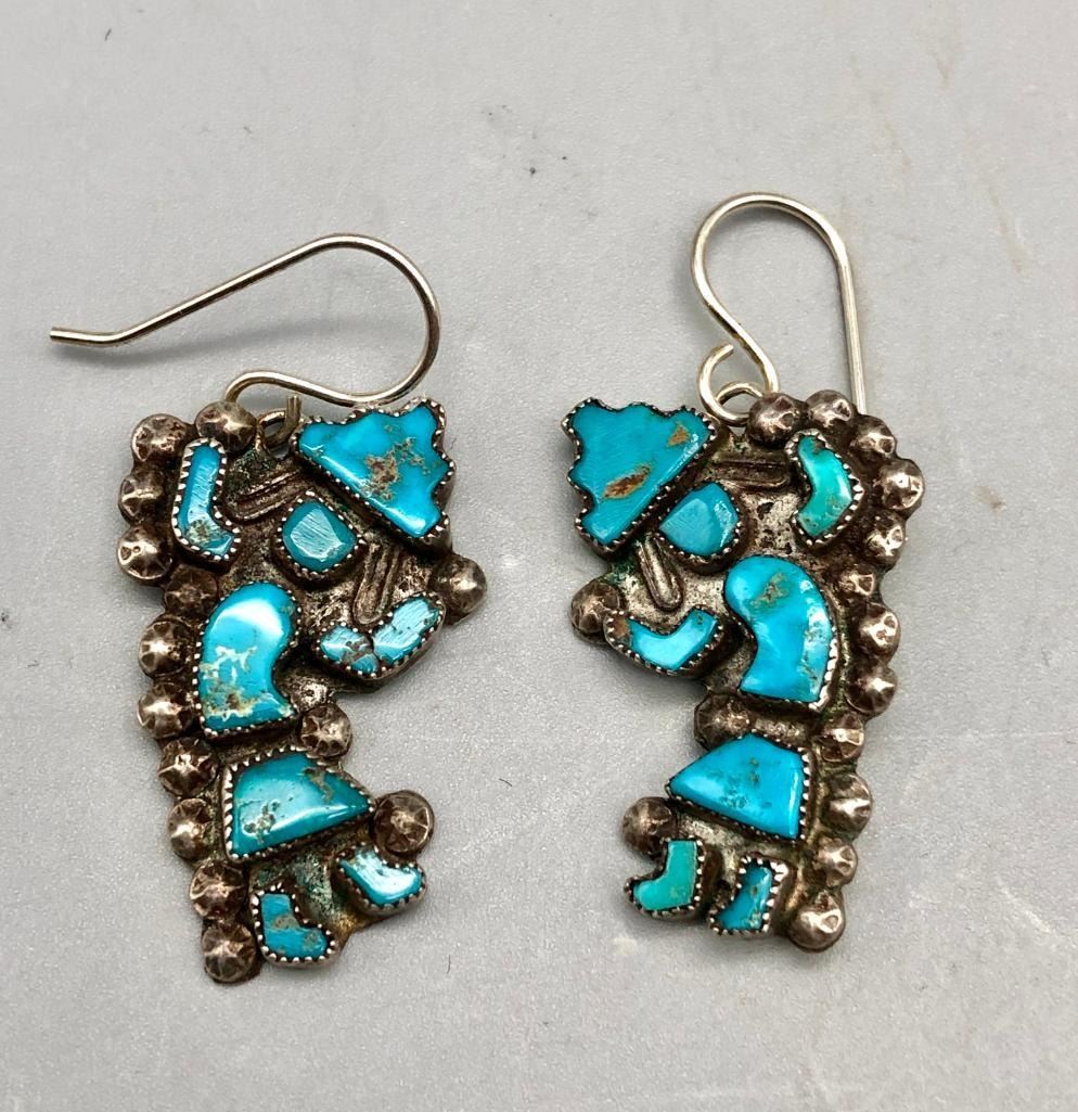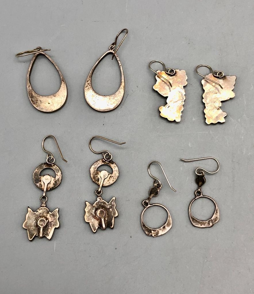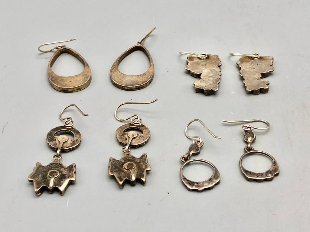 Offered for sale in this lot s a group of four pairs of vintage earrings. This is a great group of inlay style earrings. All are various sizes, styles and are made from sterling silver. MAKER: Various. APPROX AGE: Vintage. SIZE: Various. Combined weight is 35.5 grams. CONDITION: Good for their age, normal wear expected. Please look closely at the pictures as they are an important part of our description and are hereby incorporated into the description, specifically with regards to condition. SHIPPING: There will be a $5 handling / packaging fee for shipping this lot. The actual cost of postage will be added on top of that. BUY IT NOW: If you would like to buy this item now, without waiting for the auction day to bid on it, we do offer this option (which is available up to 48 hours before the actual auction starts). The “Buy it Now†price is the high estimate of this lot (plus applicable fees and the Buyer's premium is discounted to 10% when using the Buy it Now option). If you would like to exercise this option, you must contact us by email (or phone as long as you talk to someone live). Reference this lot number and your intention to "Buy it Now."