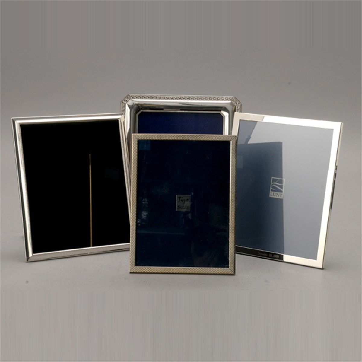 Group of Four Sterling Picture Frames: two for 9 x 6 3/4 photos; two for 9 1/2 x 7 1/2 photos {Dimensions of largest 12 1/2 x 9 1/2 inches}