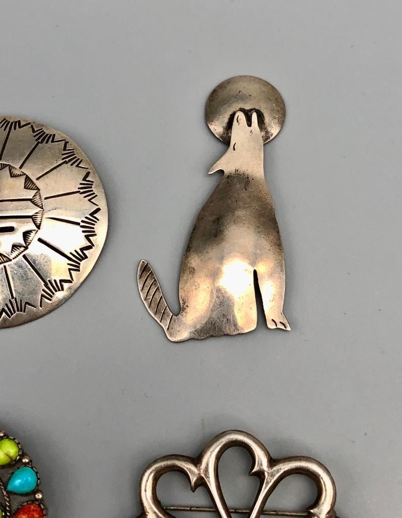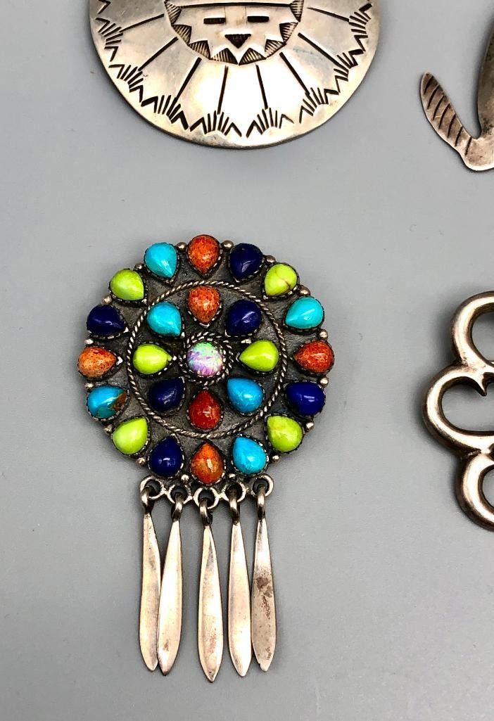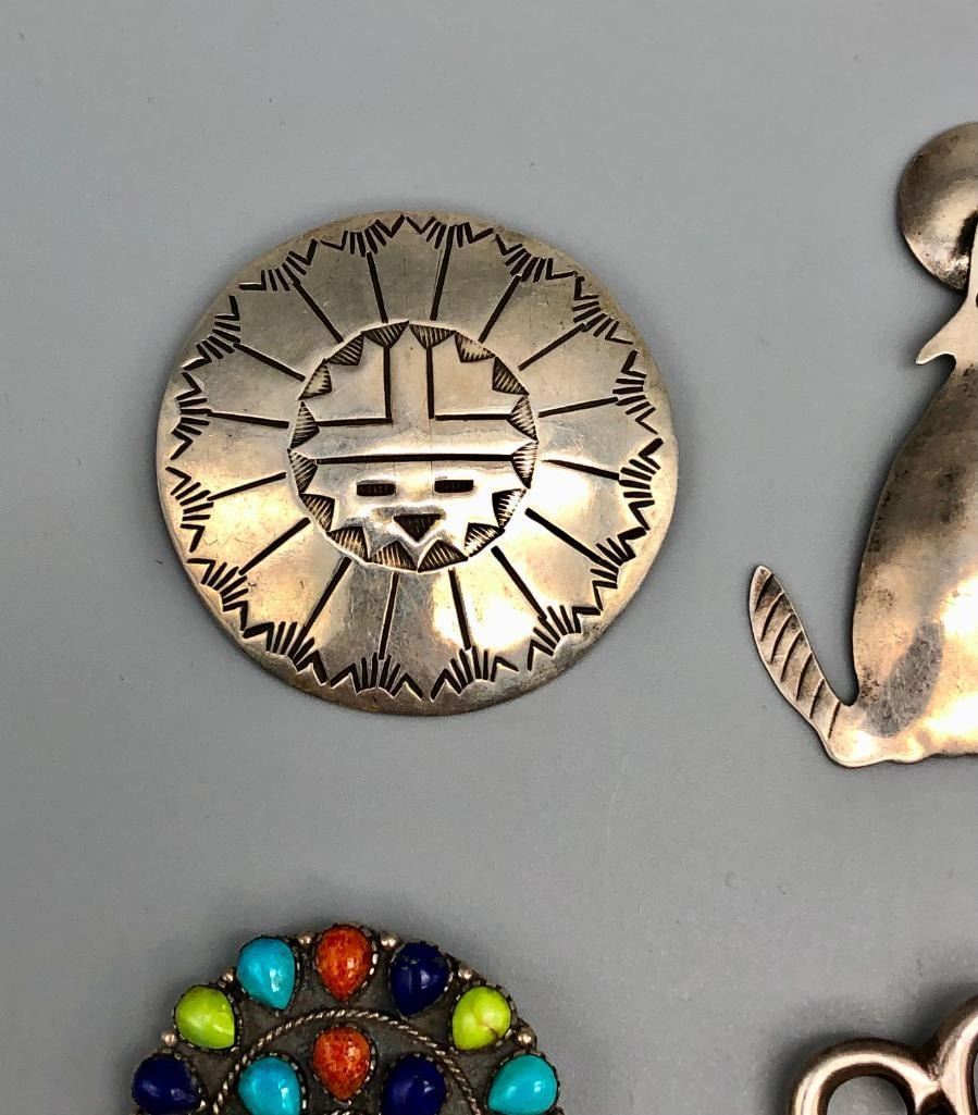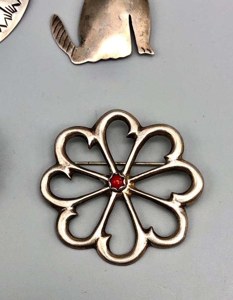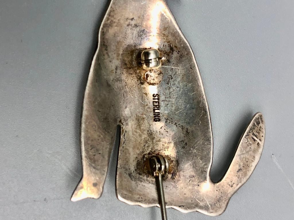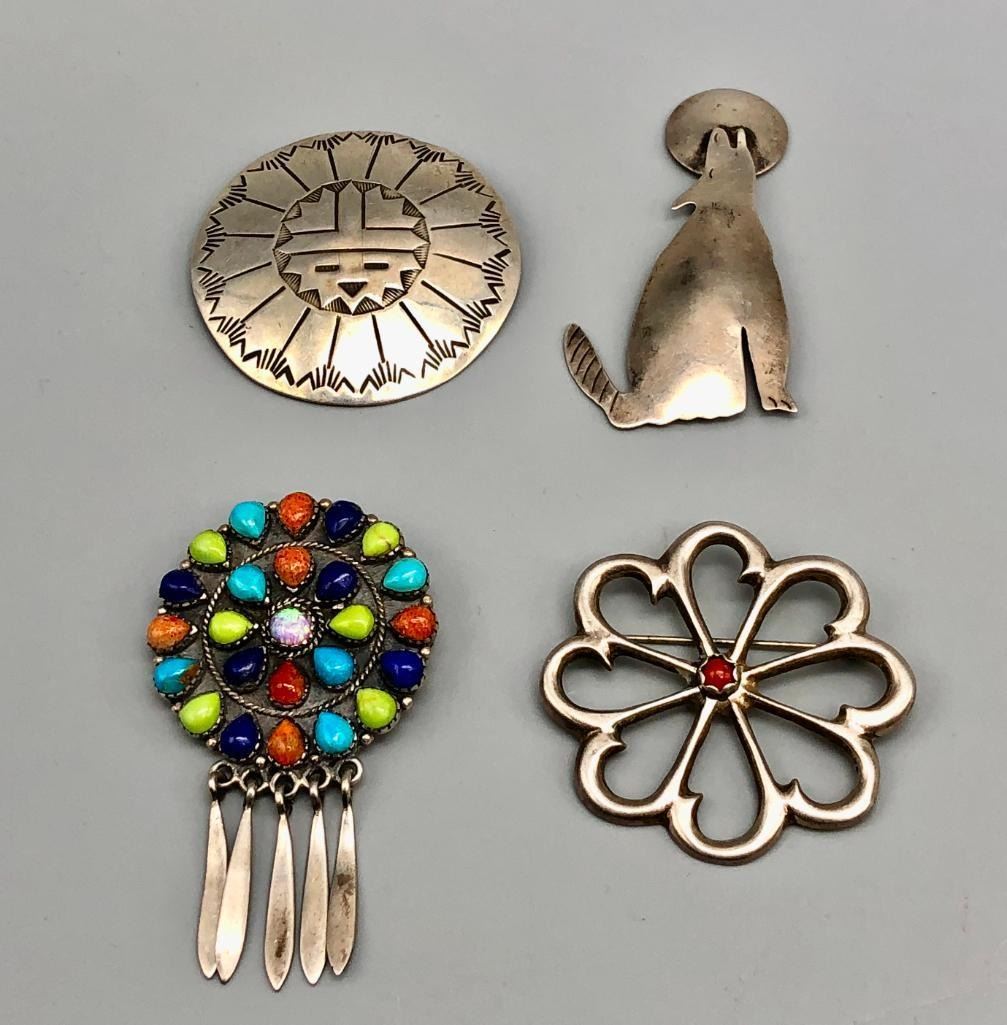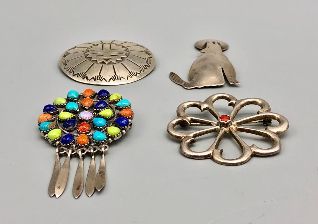 For sale in this lot is a group of four various sterling silver pins. This is a great group of pins, all are various sizes and styles, some are set with multi stones. They are made from sterling silver. MAKER: Various. APPROX AGE: Vintage. SIZE: Various. Combined weight it 53.7 grams. CONDITION: Good for their age, normal wear expected. Please look closely at the pictures as they are an important part of our description and are hereby incorporated into the description, specifically with regards to condition. SHIPPING: There will be a $5 handling / packaging fee for shipping this lot. The actual cost of postage will be added on top of that. BUY IT NOW: If you would like to buy this item now, without waiting for the auction day to bid on it, we do offer this option (which is available up to 48 hours before the actual auction starts). The “Buy it Now†price is the high estimate of this lot (plus applicable fees and the Buyer's premium is discounted to 10% when using the Buy it Now option). If you would like to exercise this option, you must contact us by email (or phone as long as you talk to someone live). Reference this lot number and your intention to "Buy it Now."
