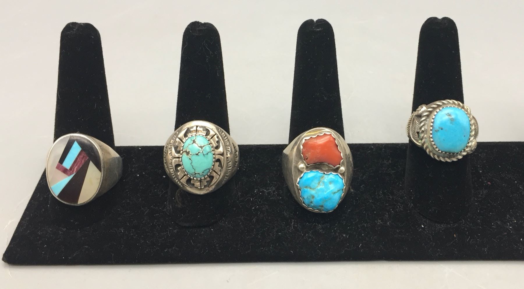 Description: Presented for sale in this lot is a nice group of four vintage rings in a variety of styles and designs and featuring a variety of stones. Maker: Various. Approx. Age: Vintage. Size: Various. Combined weight is 75.6 grams. Condition: Good for their ages, normal wear expected. Please look closely at the pictures - they are an important part of our description. Shipping: There will be a $5 handling, packaging fee for shipping this lot. The actual cost of postage will be added on top of that.