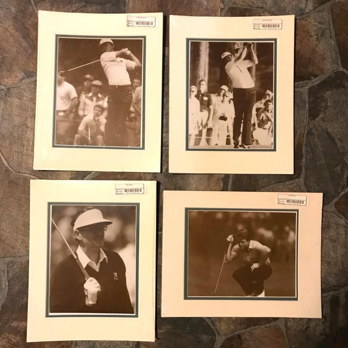 Group of 4 golfing greats - Tom Watson, Bob Charles, Tommy Nakajima, Raymond Floyd - golf pro, Clubhouse photo prints. Created in the early 1990's for The American Heritage Gallery, printed on heavy cardstock, sepia-tone images. 8" X 10" each in 11" X 14" double mats with original gallery packaging.Â