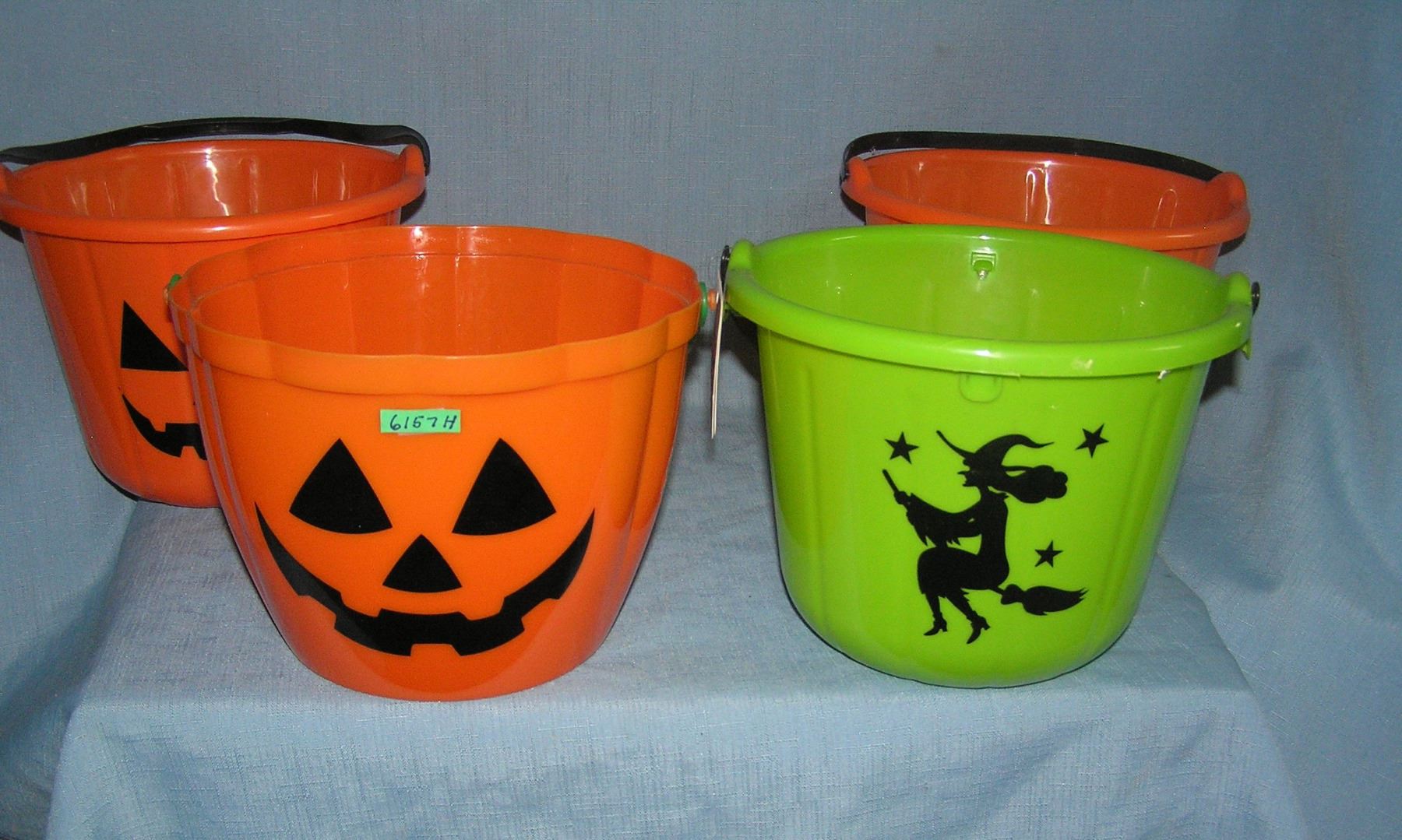 Group of Halloween Trick or Treat buckets, some may be illuminated est. value $15.00-$20.00