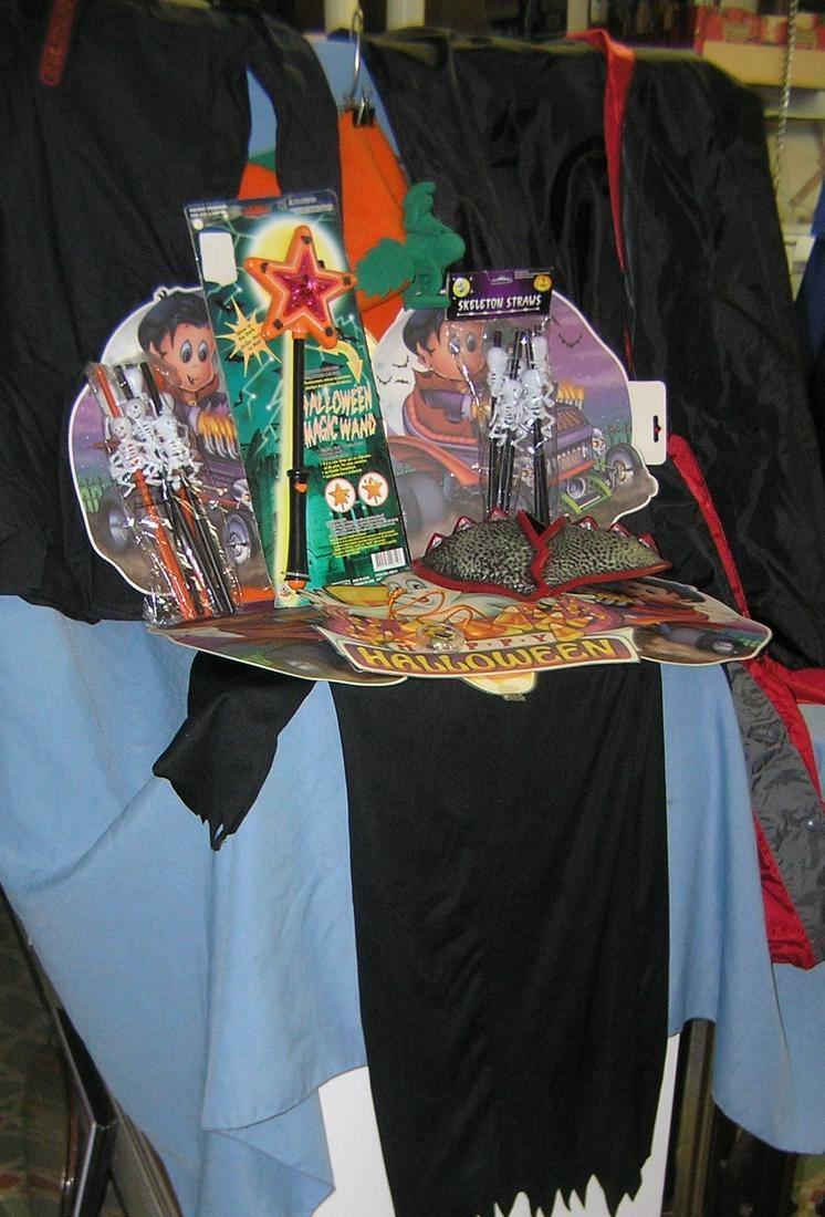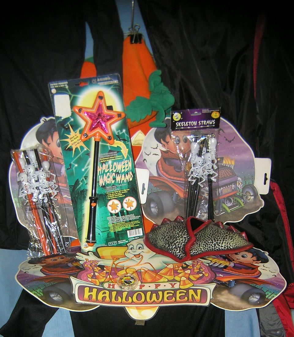 Large group of Halloween costumes and decorations est. value $75.00-$80.00