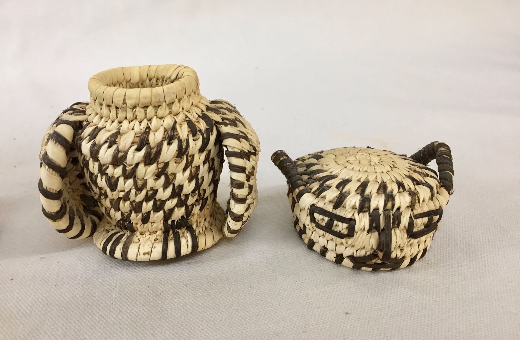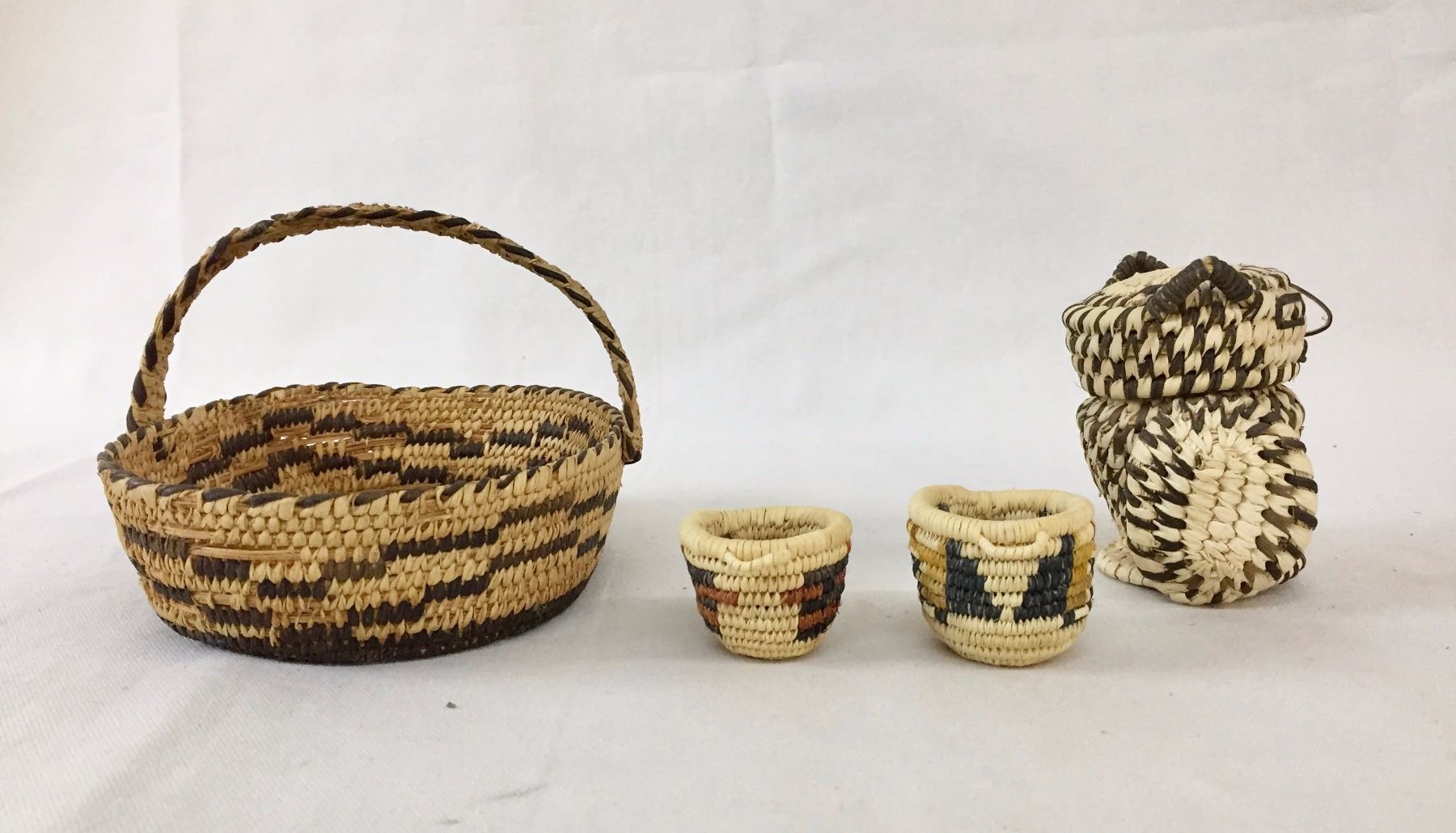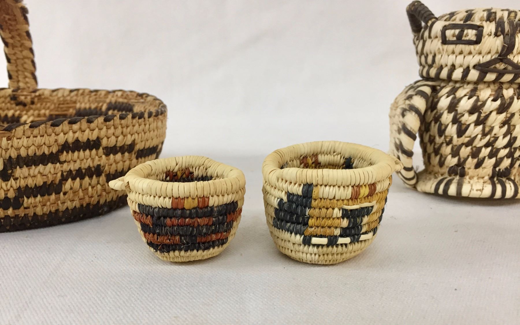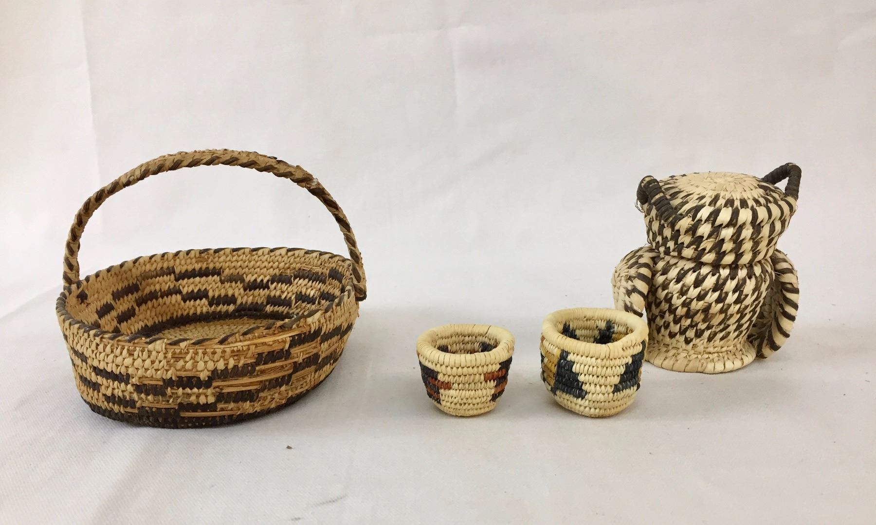 Description: Group of smaller sized, Hopi and Tohono O’Odham baskets. One is an owl effigy. Maker: Various Hopi and Tohono O’Odham Artists. Approx. Age: Vintage. Size: From 6-1/4”w x 3-3/4” tall to 1-1/2” x 1-1/4” tall. Condition: Good for its age, normal wear expected. Please look closely at the pictures - they are an important part of our description. Shipping: There will be a $7 handling / packaging fee for shipping this lot. The actual cost of postage will be added on top of that.