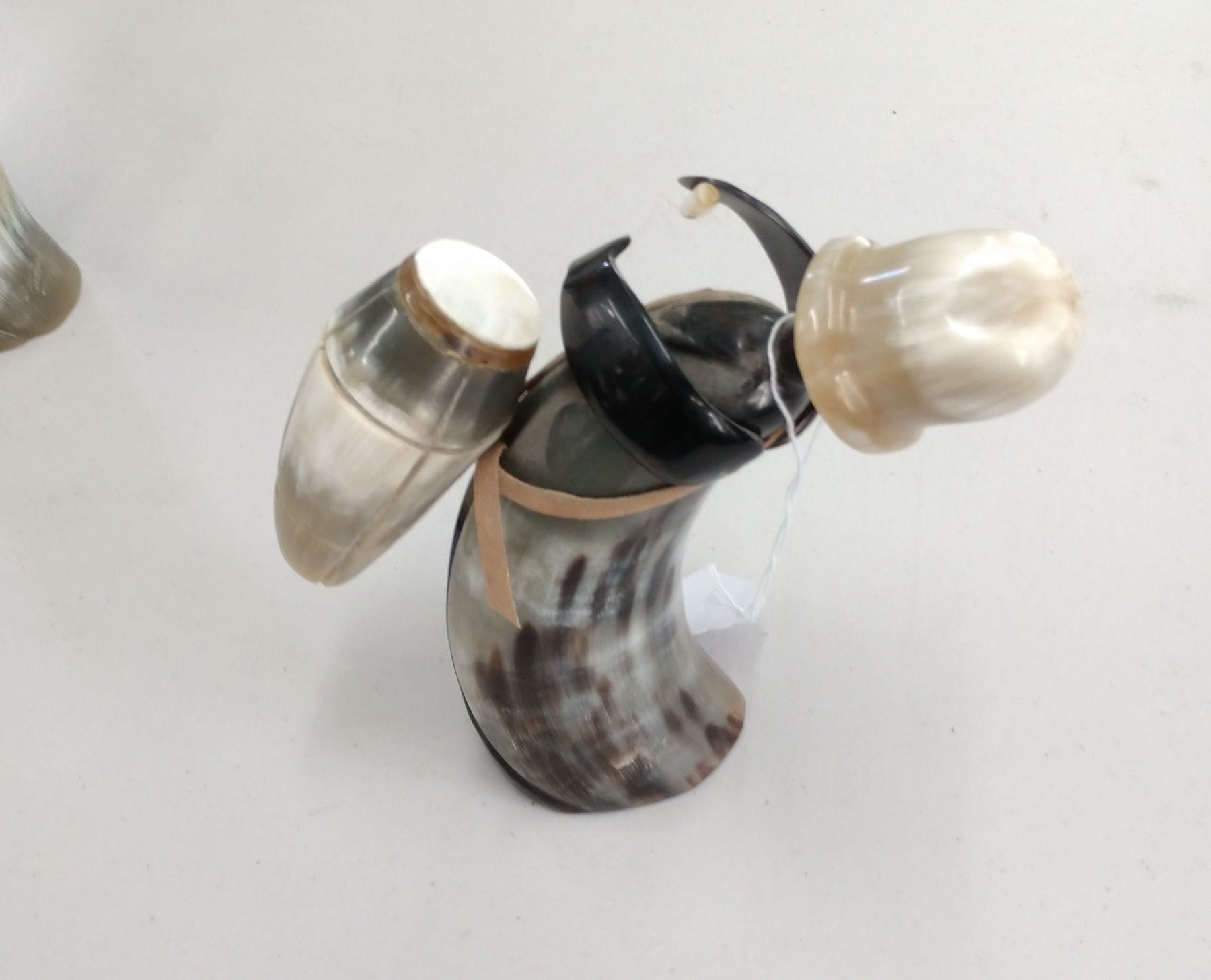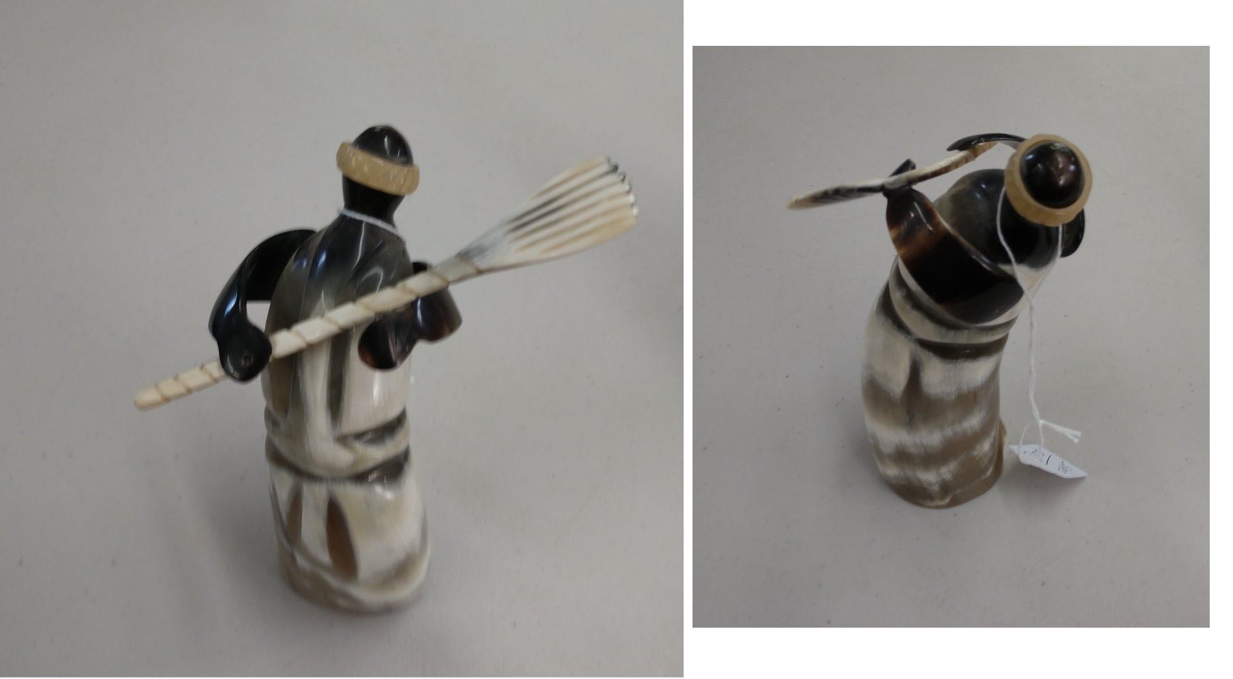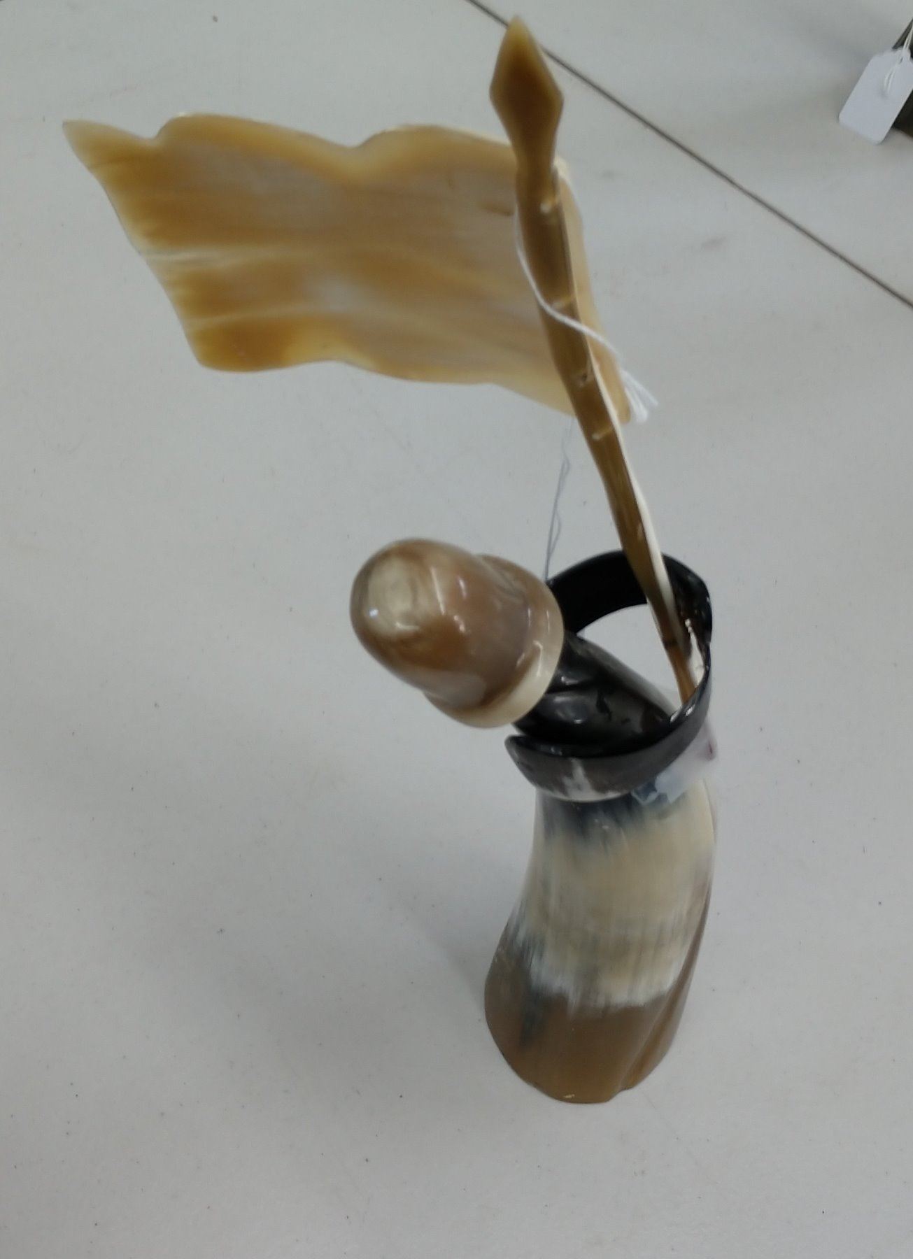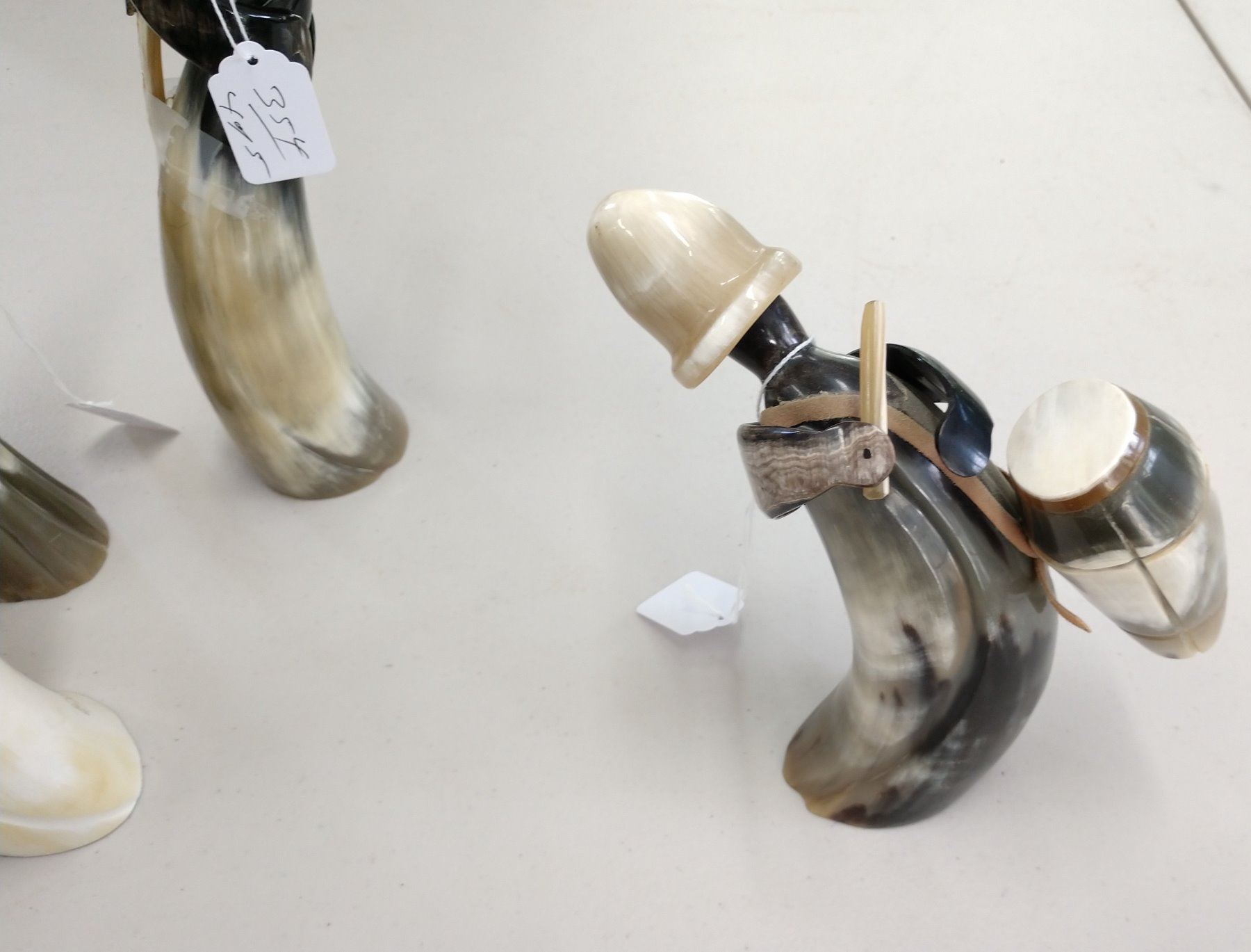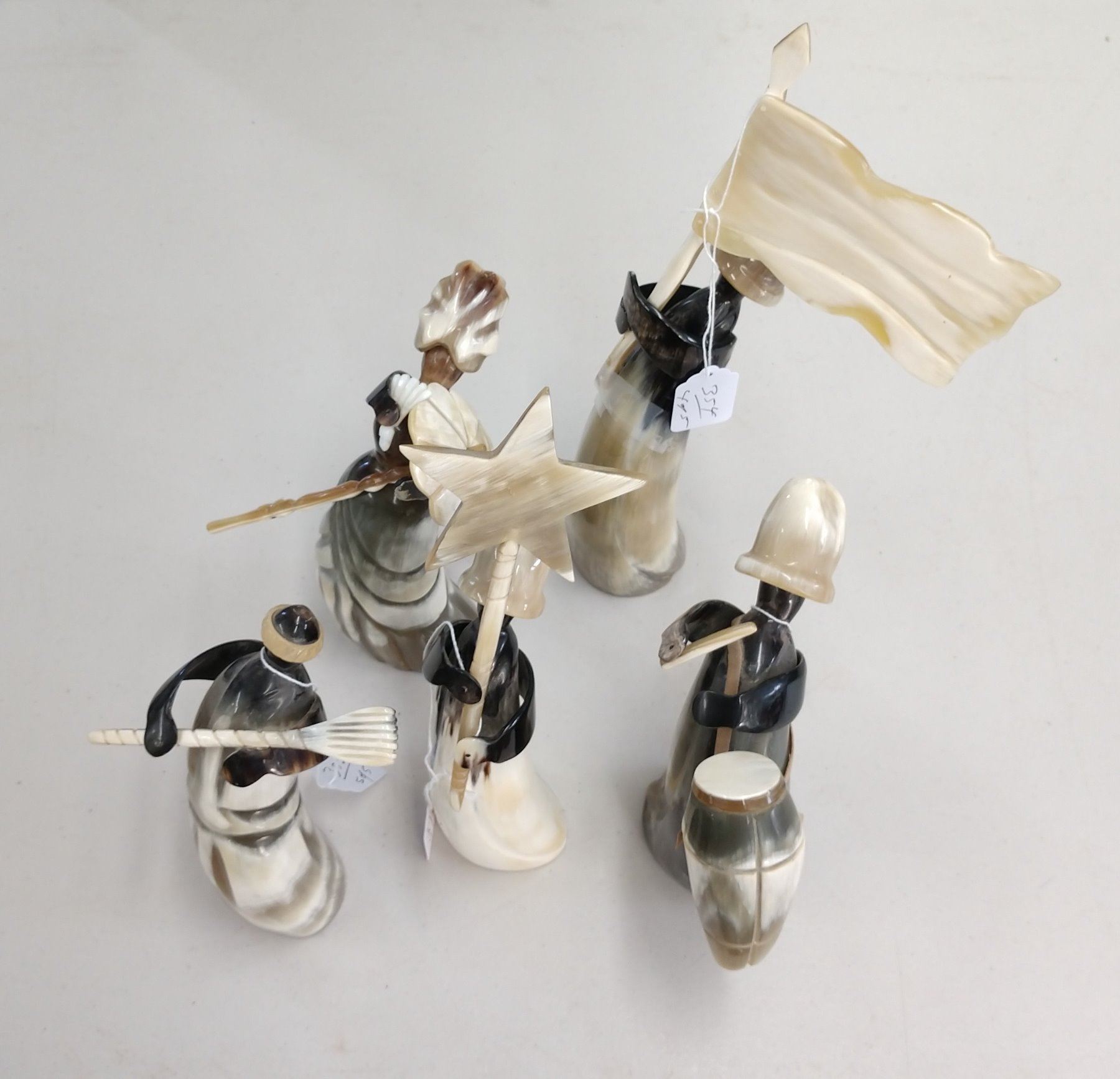 Group of Horn Carvings, c. 1960s. Made of horn, the items measure between 8" and 14" tall. Boliva. Appears to be a parade or band, five piece group. Condition: Good, see images. Shipping: $32.50 w/insurance and signature, due to size.