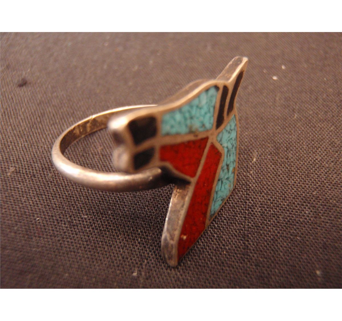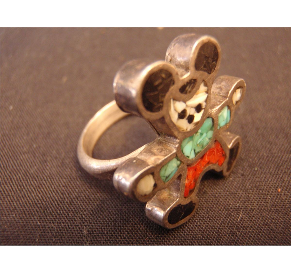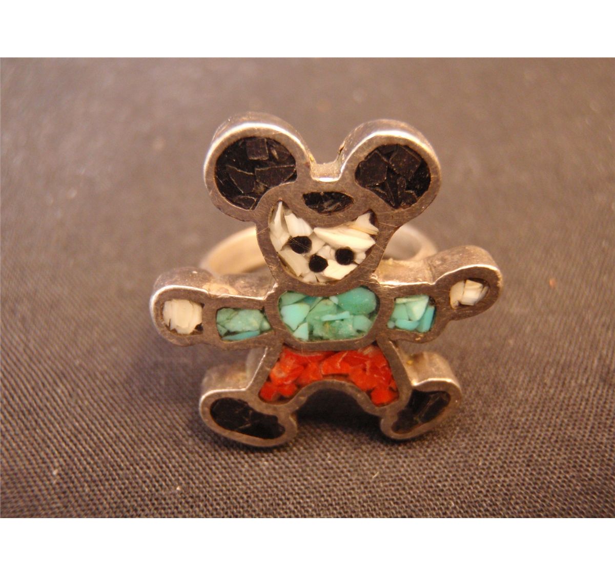 Ladies inlay watch tips, Zuni. Signed "T&J". + A copper bracelet by Bell. + Chip inlay horse head ring. Size 5.5 + Chip inlay mickey mouse ring size 5.5. Shipping on this lot: $5.00. Additional Shipping Charges for Lots sent outside of the U.S