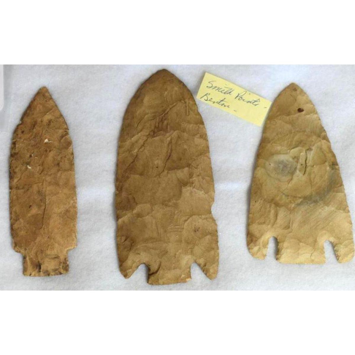 Group of three large Smith Points, Arrowheads. Largest measures 5 1/2". Benton, Colorado origin. - 9862-030518-PB-00155