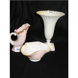 Three Pieces, Lenox: Fluted Vase, Candy Dish and Small Pitcher.
