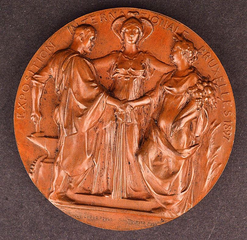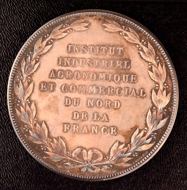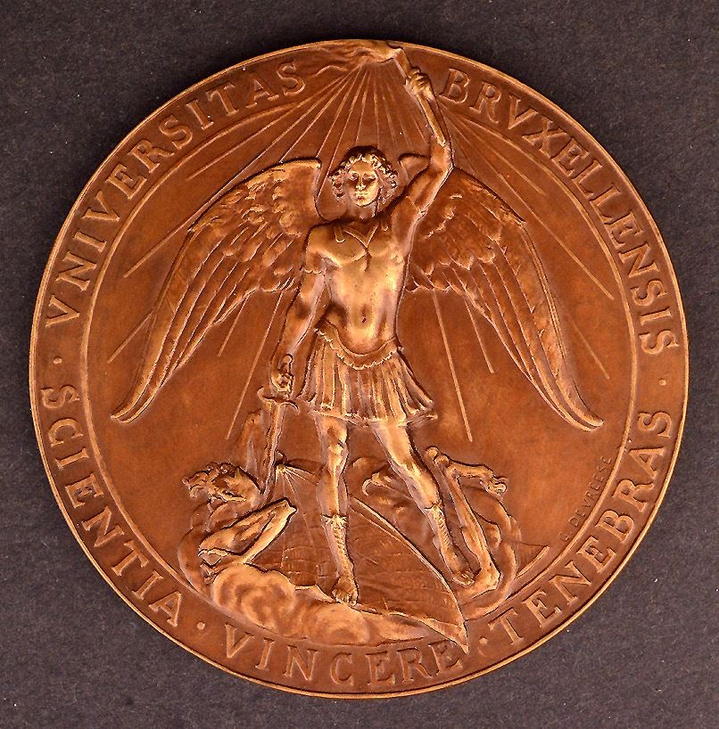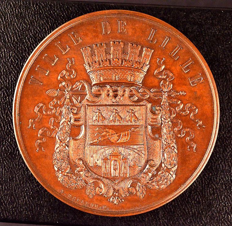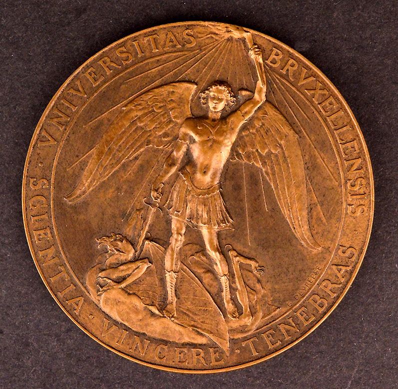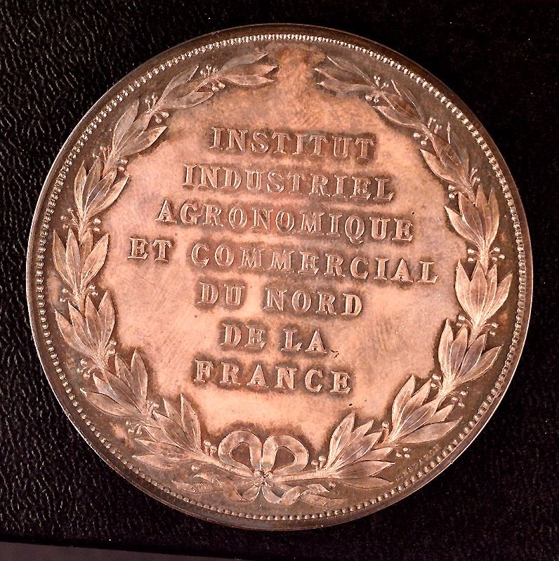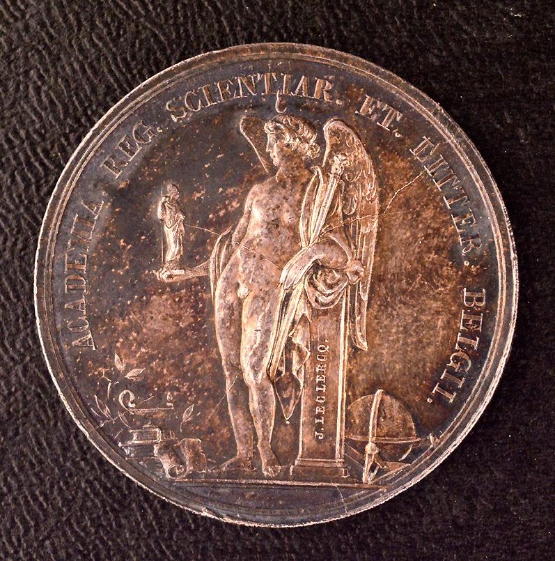A group of medals presented to Louis Dollo, 1857-1931: (1)- Obv: Winged woman reclining, facong left, "Furfooz" on tablet, Ed. Geerts. Sculp & Fec. In exergue; Rev: "Congres International D'Anthropologie et D'Archeologie Prehistorique A Bruxelles. 6e Session Sous la Presidance de Mr. J.J. D'Omalius d'Halloy, 1872", surrounded by palm leaves; Ae, 65mm; Furfooz refers to Furfooz Man, discovered in Fufooz, Namur, Belgium, in 1866. Dollo would have been only 15 if he attended this Congress; (2)- Obv: "Ville de Lille", coat of arms at centre, J. Esparon, F. at bottom; Rev: "Association Francaise pour L'Avancement des Sciences, Session de 1874, A Lille, Offert Par Le Comite Local"; Ae, 60mm, in red fitted case; (3)- Obv: "Institut Industriel Agronomique et Commercial Du Nord de la France", wreath, J.Esparon, at lower right; Rev: Inscribed "Premier Anne du Genie Civil Premier, DOLLO, Louis", surrounded by wreath; Ar, 57.5mm, 70.66 gms, edge marked Argent, in maroon fitted case; (4)- As last, but inscription, "Genie Civil Deuxieme Annee, 1875-76, Premier, DOLLO, Louis"; Ar, 55.5 mm, 75.16gms, edge marked Argent, in maroon fitted case; (5)- Obv:Man facing right, "R. Bureau Gv. Lille" below; Rev: "Societe des Sciences de L'Agriculture des Arts, de Lille, Fondation Kuhlmann, 1881", Inscribed in frame, at centre, "Mr. Dollo 1884"; Ae, 61mm, in maroon fitted case; (6)- Obv: Exposition International Bruxelles, 1897", 3 allegorical figures at centre, Jul Legae Scult, Wolfgang Fecit, in exergue; Rev: "Koninkryk.Belgie.Royaume.Belgique", Crowned emblem of Belgium, "Union Fait La Force" in ribbon at centre; Ae, 70mm; (7)- Obv: "Academia Reg. Scientiar et Litter Belgii", Winged Mercury at centre, "J. Leclercq" on column; Rev: Rampant lion, holding shield with coat of arms, "L. DOLO" inscribed below; Ar, 37mm, 22.39gms, in red fitted case; (8)- Obv: "Universitas Bruxellensis, Scientia Vincere Tennebras", Winged Angel standing on Lucifer; Rev: "Universite Libre de Bruxelles, LXXVe Anniversaire, 1834- 20 Novembre- 1909", "Louis Dollo" inscribed at centre; Ae, 65mm; He began teaching at the University in 1909; (9)- As last but reverse, "Universite Libre de Bruxelles, Fondee le 20 Novembre, 1834", "Hommage A" on die, "Louis Dollo" inscribed at centre; Ae, 65mm, in black case," J. Fonson, Medaille d'Art" on inside lid; He won the Murchison Medal in 1912; (10)- Obv: Woman holding globe, "Fernan Dubois" at bottom; Rev: "Touring Club de Belgique", "CTB", at centre, Winged Eagle at bottom, inscribed, at top, "Le T.C.B. a Mr. L. Dollo, 1917", Ar, plaquette, 60 x 29mm; Most VF to EF, last Fine; Louis Dollo was born in 1857, in France, and graduated as an engineer, in 1878. He was a pre-eminent paleontologist, in Belgium, and was instrumental in the advancement of Paleobiology. From 1882 to 1885, while he was head of the vertebrate fossil section of the Royal Institute, Dollo worked on reconstructing the skeletons of the Iguanodons, as it was necessary to display them on their hind legs. The first one was assembled in the interior of an unused church that Dollo was using as a workshop. Twelve of those skeletons have been the principal attraction of the Museum of Natural Sciences at the Royal Institute. Dollo collaborated with his former professor Alfred Giard and the Université Lille Nord de France. Around 1890, he formulated a hypothesis on the irreversible nature of evolution, known later as "Dollo's Law". According to his hypothesis, a structure or organ lost during the course of evolution would not reappear in that organism. He won the Murchison medal in 1912. This is an interesting collection of an important man's medals.