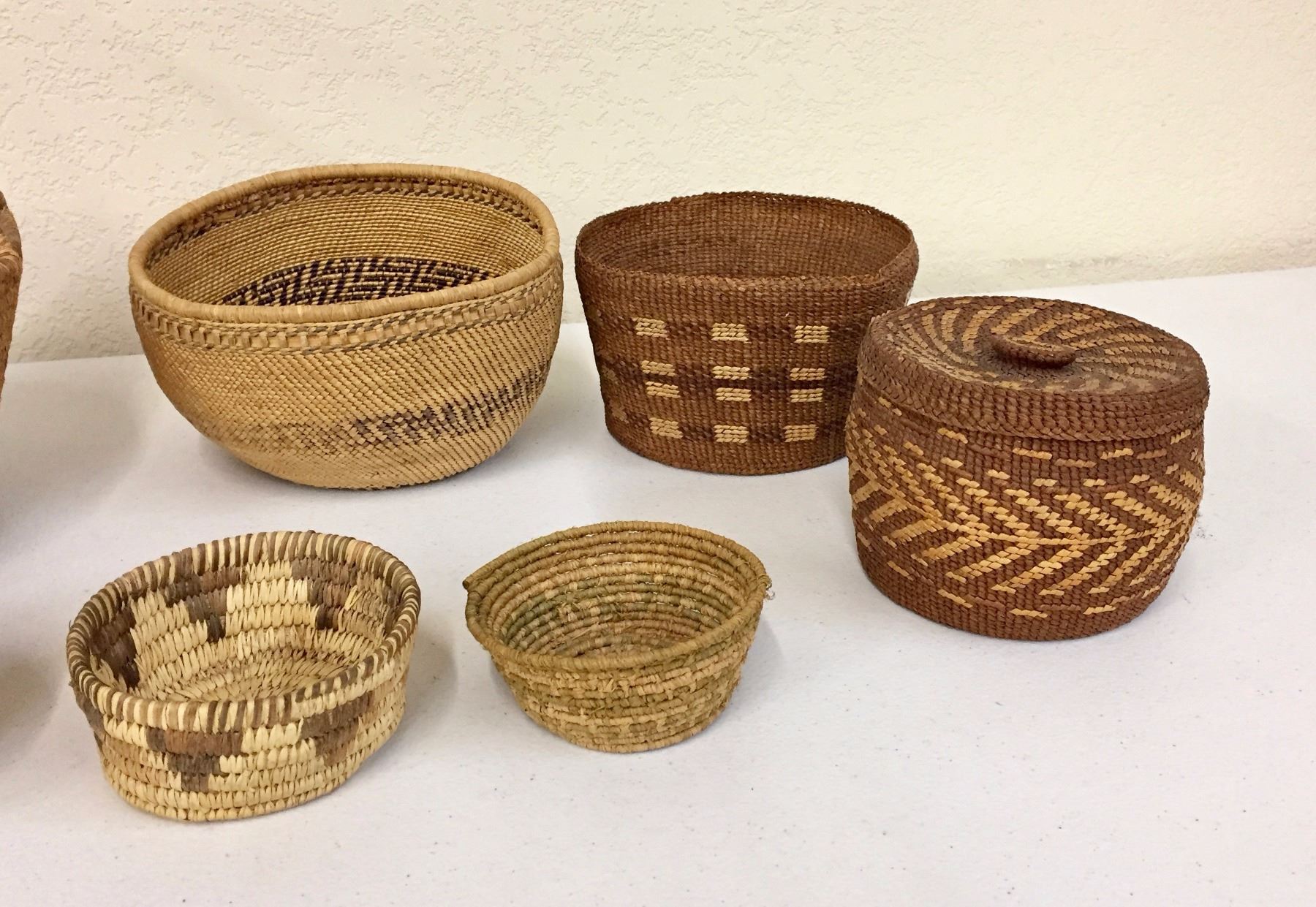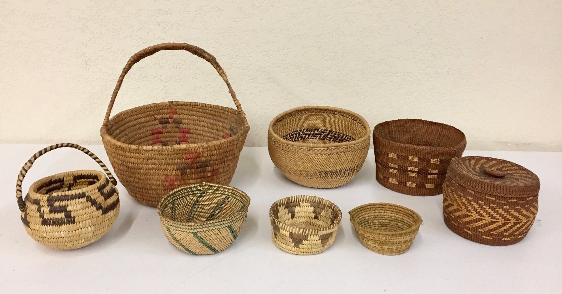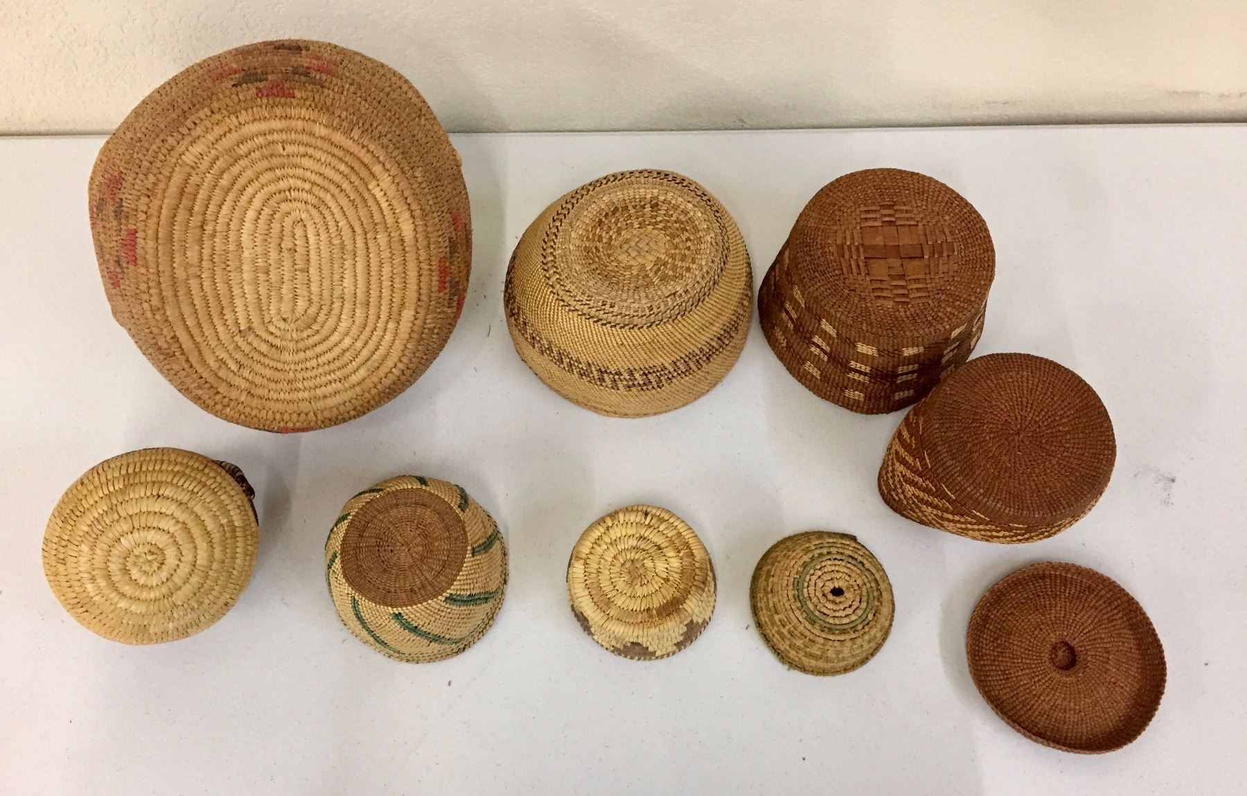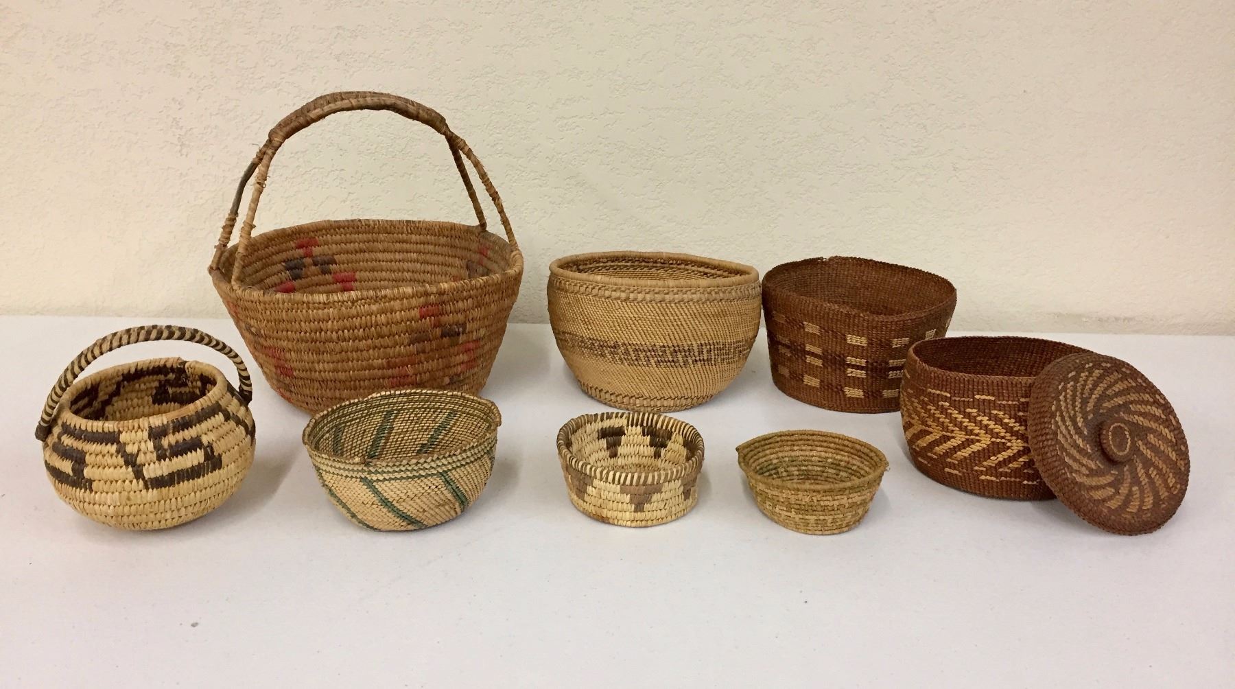 Description: Group of 8 misc. baskets. Maker: Various. Approx. Age: Various. Size: Sizes range from 1 1/2” deep x 4” wide to 6” deep x 11” wide. Condition: Poor too good for their ages, normal wear expected. Please look closely at the pictures - they are an important part of our description. Shipping: There will be a $10 handling / packaging fee for shipping this lot. The actual cost of postage will be added on top of that.