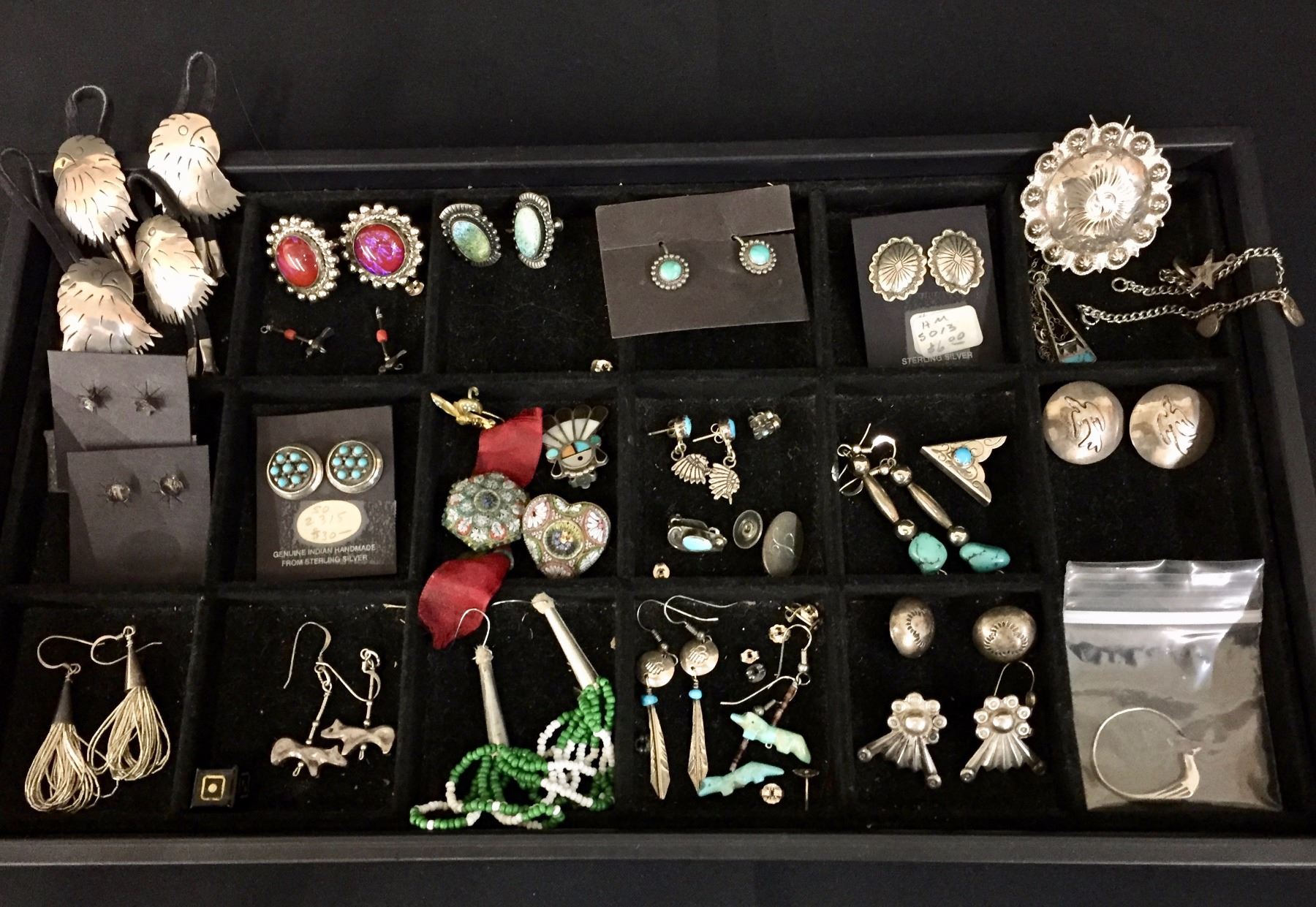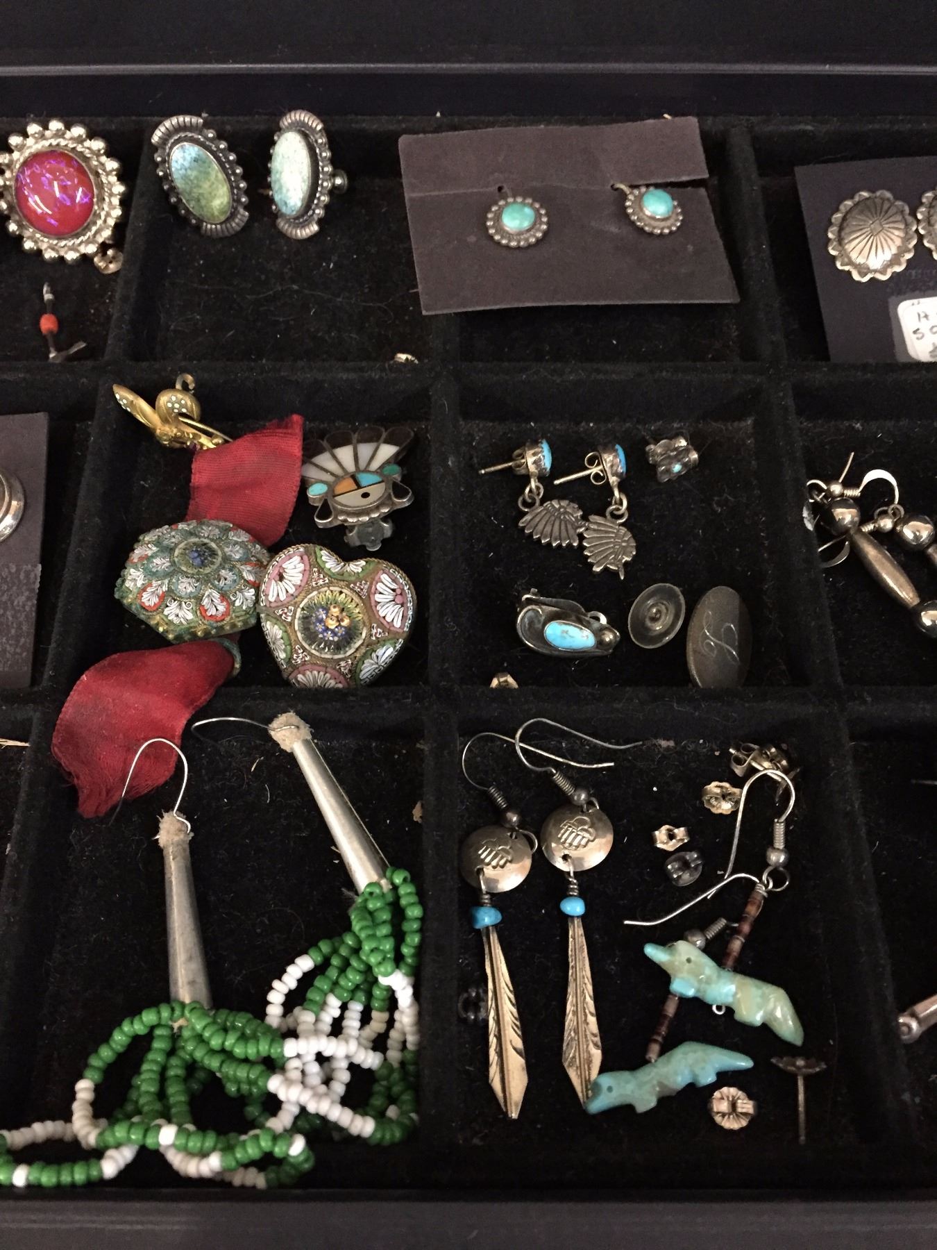 Description: A large group of miscellaneous jewelry and other items. Mostly earrings, some pins, pendants and pieces. Bargain lot! Maker: Various. Approx. Age: Mostly vintage. Size: Lot weighs approx. 170 g. Condition: Pretty good for their ages, wear expected. Please look closely at the pictures - they are an important part of our description. Shipping: There will be a $10 handling / packaging fee for shipping this lot. The actual cost of postage will be added on top of that.