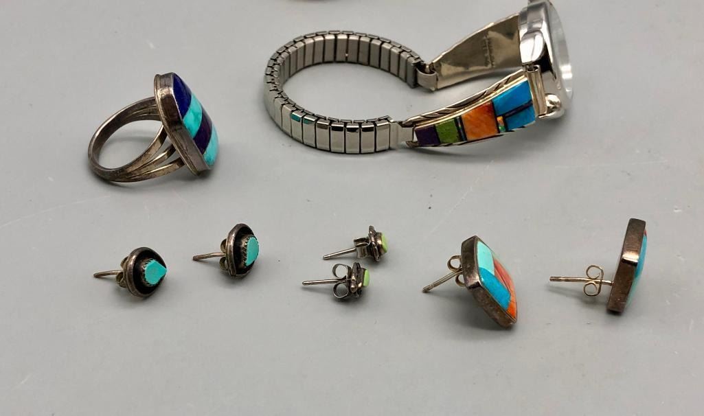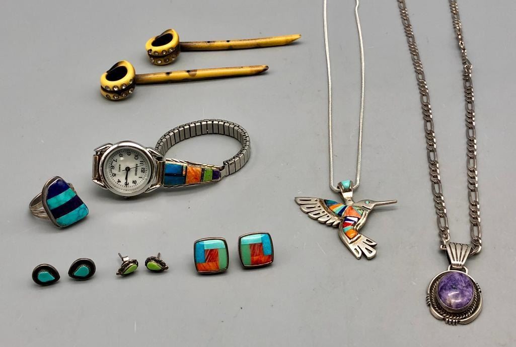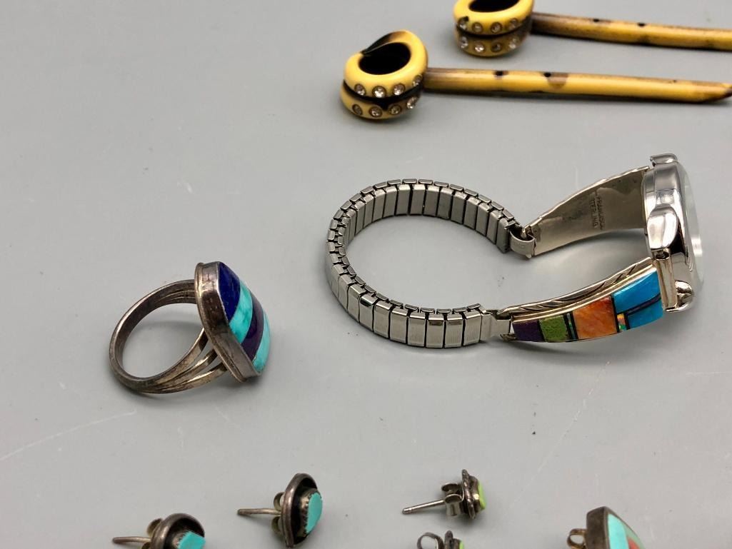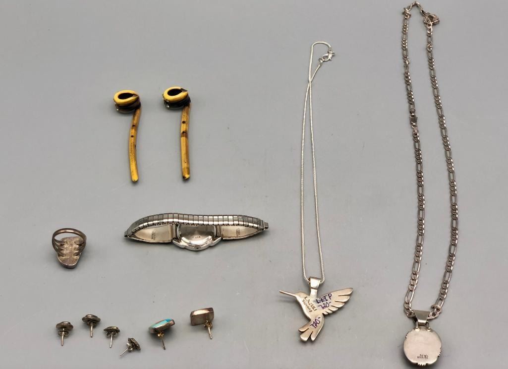 For sale in this lot is a group of miscellaneous contemporary jewelry. This is a great group of assorted jewelry. All are various sizes, styles and set with various stones. They are made from sterling silver. MAKER: Various. APPROX AGE: Contemporary. SIZE: Various. Combined weight is 128.3 grams. CONDITION: Good for their age, normal wear expected. Please look closely at the pictures as they are an important part of our description and are hereby incorporated into the description, specifically with regards to condition. SHIPPING: There will be a $5 handling / packaging fee for shipping this lot. The actual cost of postage will be added on top of that. BUY IT NOW: If you would like to buy this item now, without waiting for the auction day to bid on it, we do offer this option (which is available up to 48 hours before the actual auction starts). The “Buy it Now†price is the high estimate of this lot (plus applicable fees and the Buyer's premium is discounted to 10% when using the Buy it Now option). If you would like to exercise this option, you must contact us by email (or phone as long as you talk to someone live). Reference this lot number and your intention to "Buy it Now."