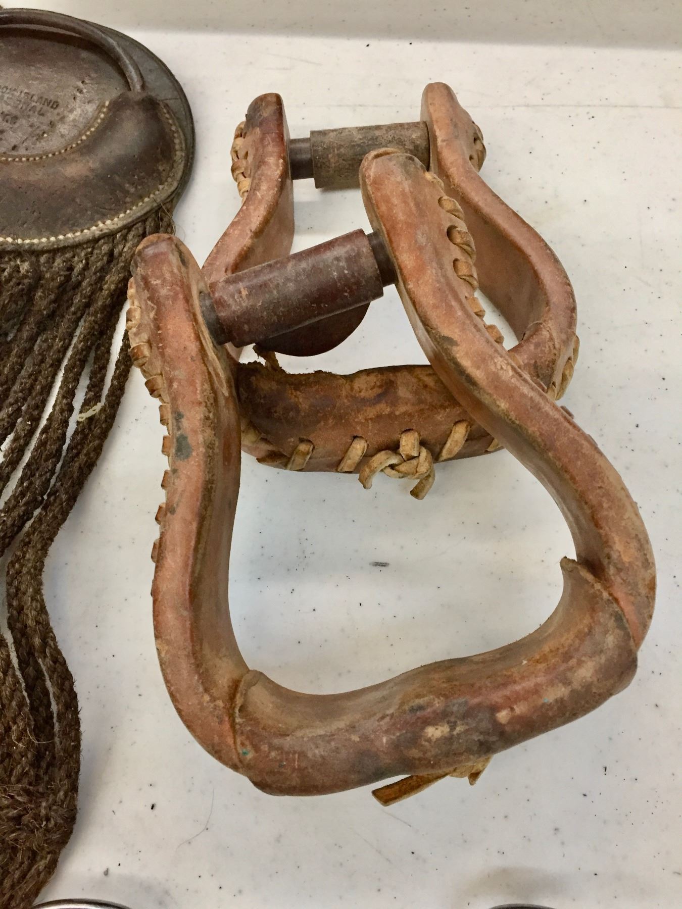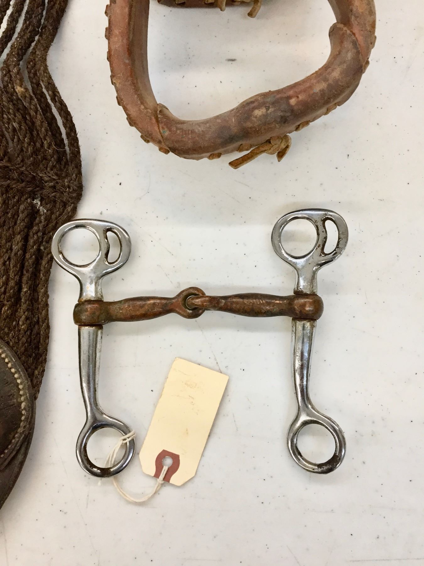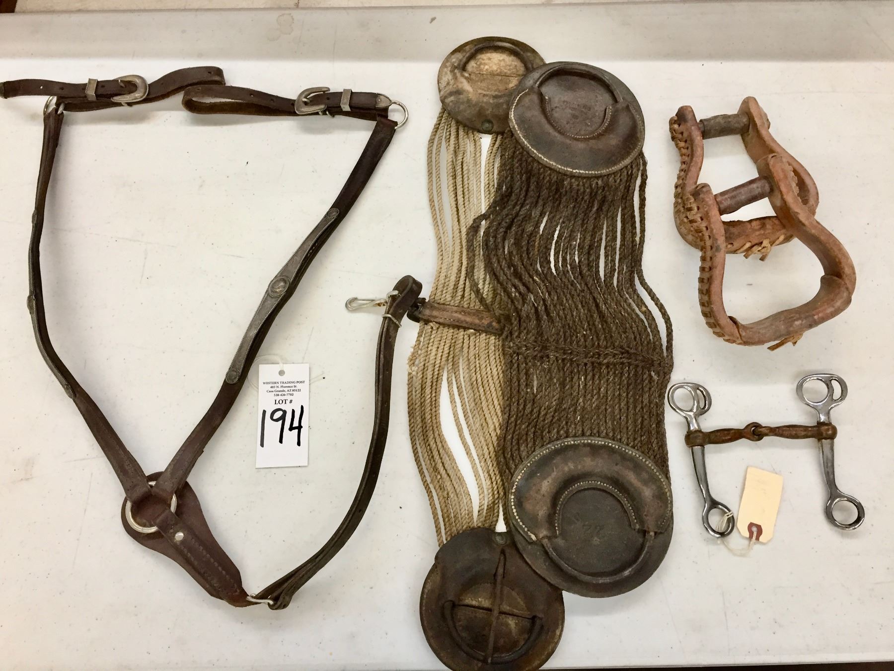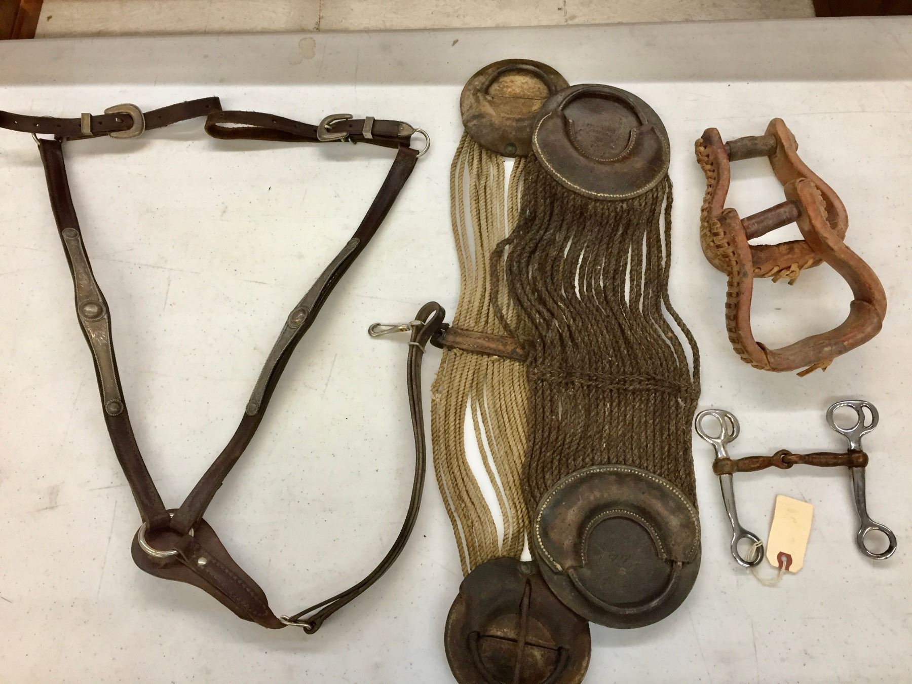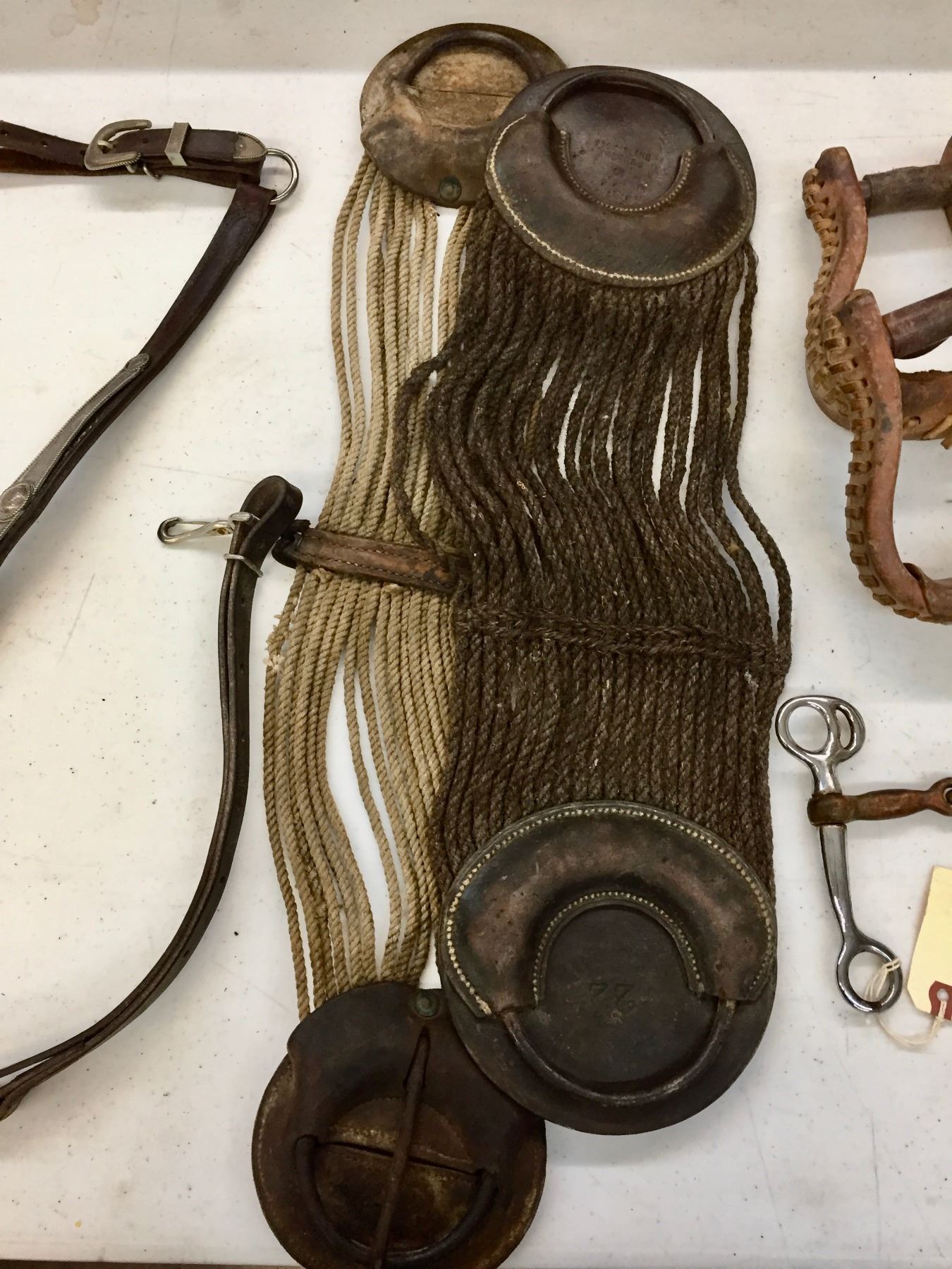 Description: Included for sale in this lot is a group of miscellaneous tack which includes a couple of military cinches, some stirrups, a nice beast collar, and a snaffle bit. Maker: Various. Approx. Age: Vintage. Size: Varies. Condition: Pretty good for their ages, normal wear expected. Please look closely at the pictures - they are an important part of our description. Shipping: There will be a $8 handling / packaging fee for shipping this lot. The actual cost of postage will be added on top of that.
