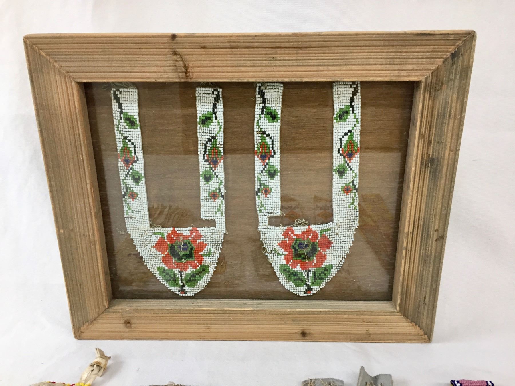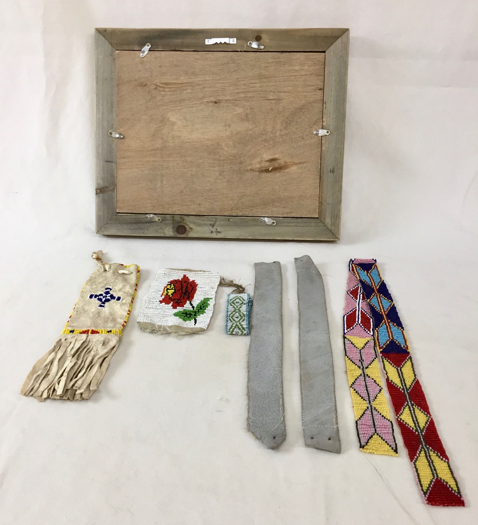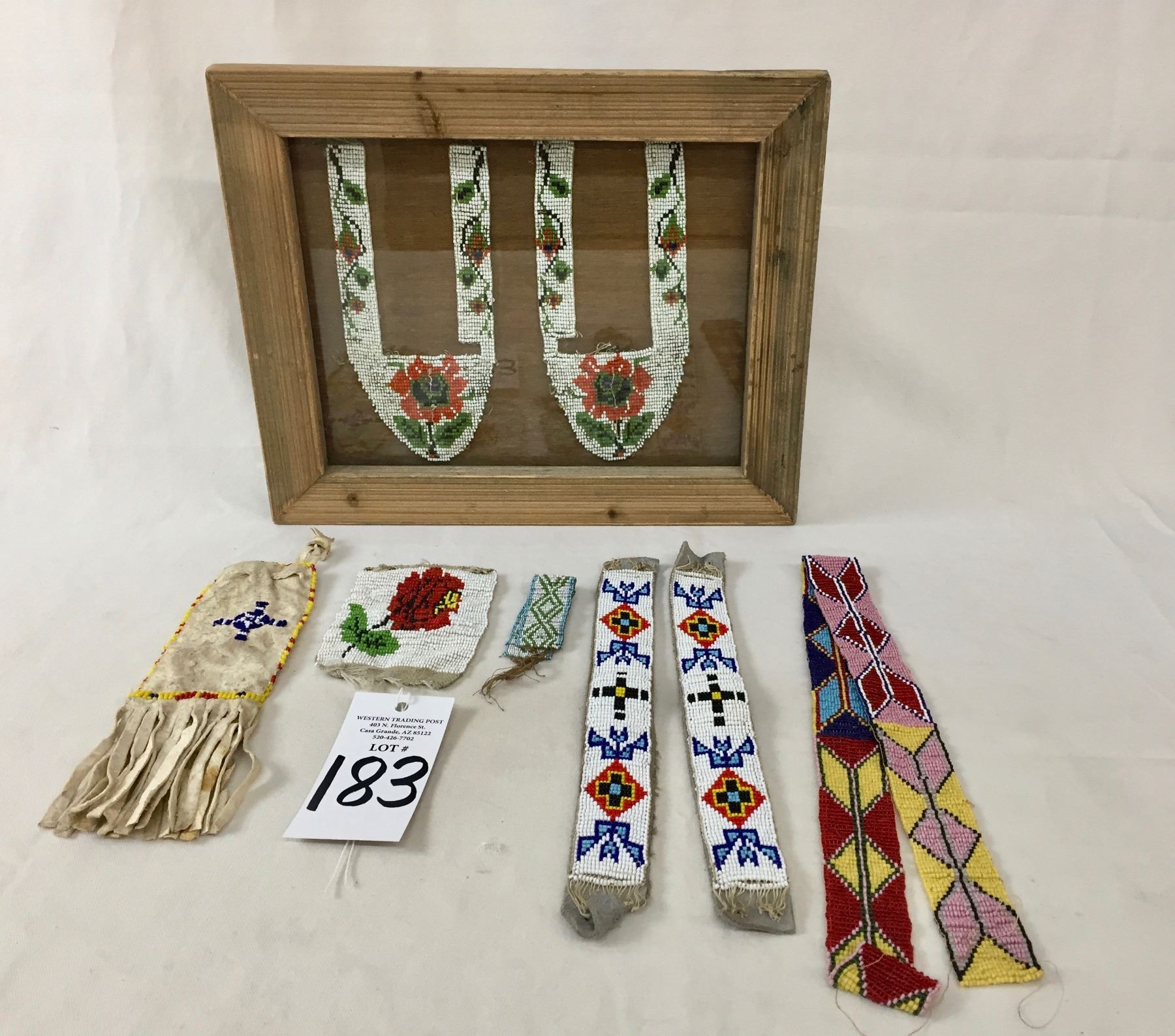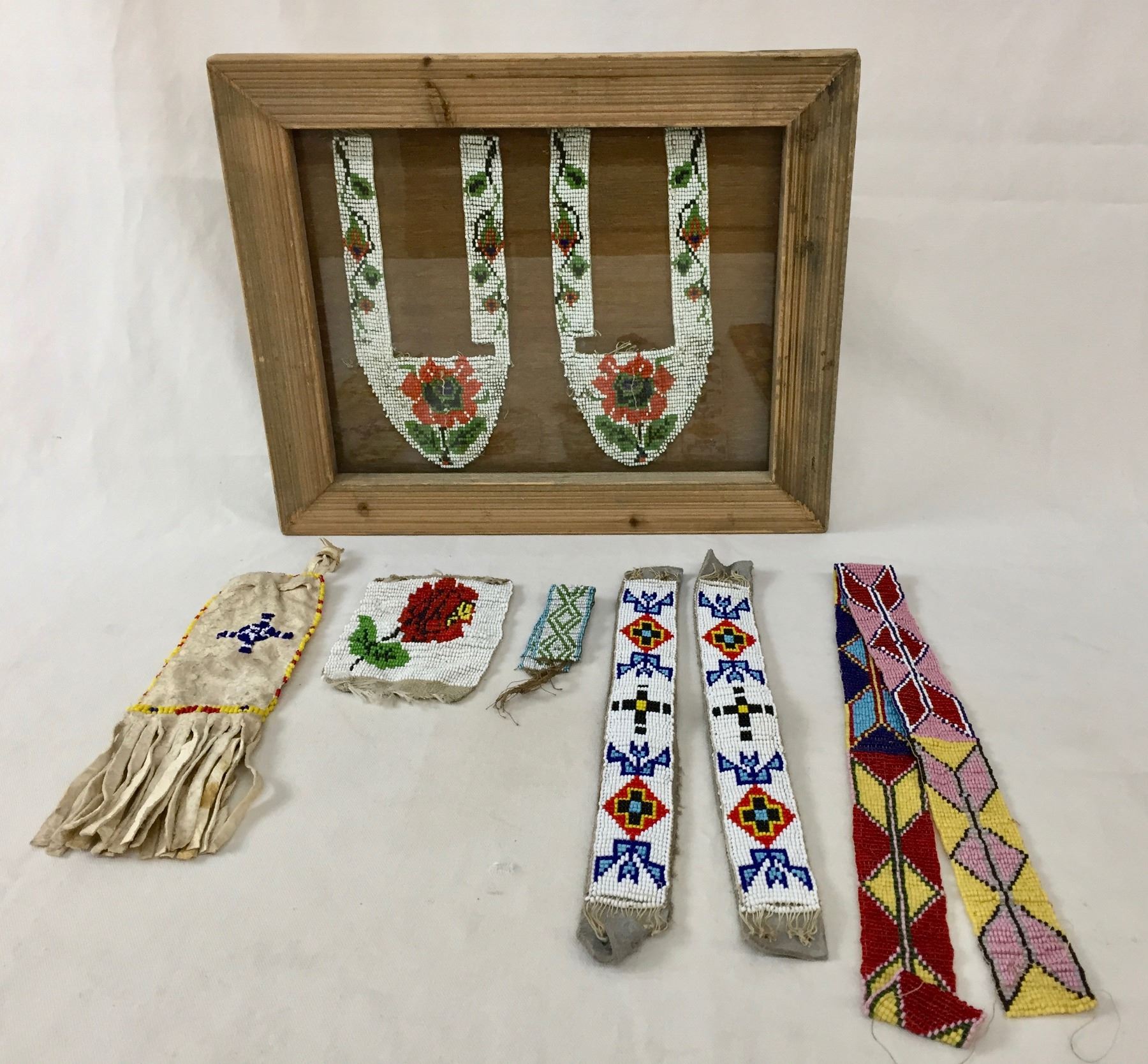 Description: Included in this lot is a group of miscellaneous vintage bead work. This lot includes different designs and sizes of patches and steps which can be used for various purposes. One is framed. Maker: Various Artists, mostly Plains. Approx. Age: Varies, mostly vintage and older. Size: Frame 13-1/2” x 11” tall. Condition: Good for their age, normal wear expected. Please look closely at the pictures - they are an important part of our description. Shipping: There will be a $10 handling / packaging fee for shipping this lot. The actual cost of postage will be added on top of that.