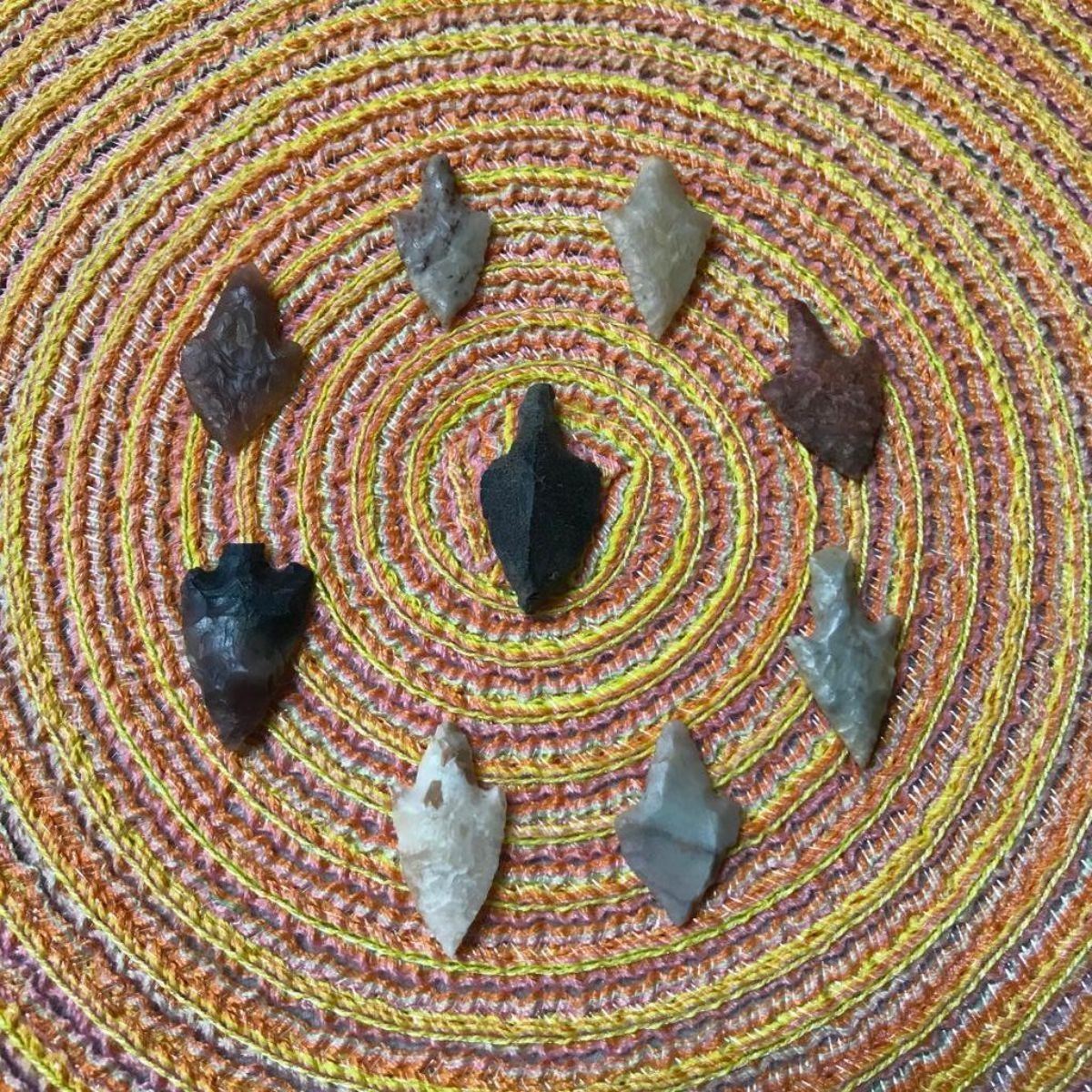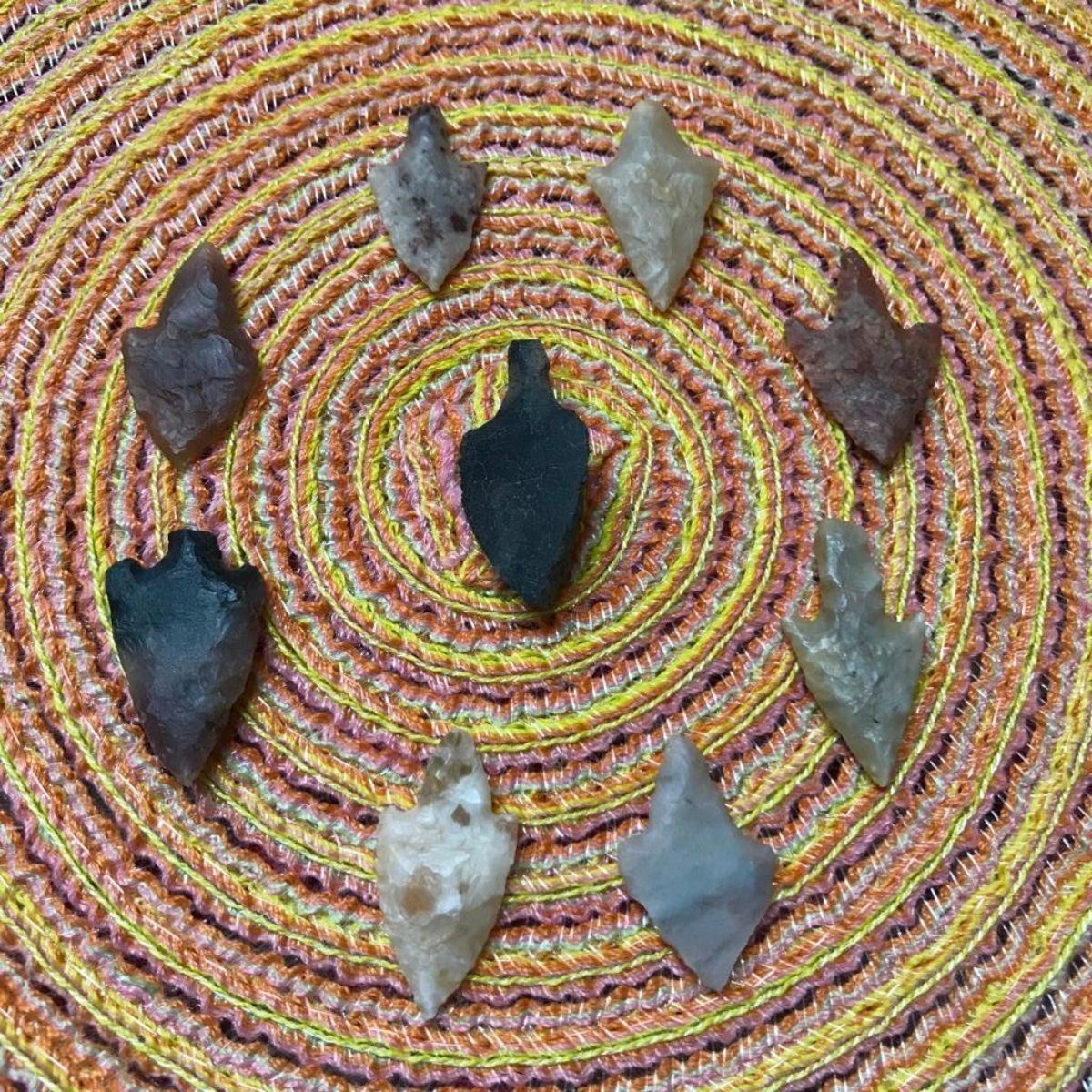 Group of nine Native American Indian birdpoint arrowheads. 20 - 30mm size.