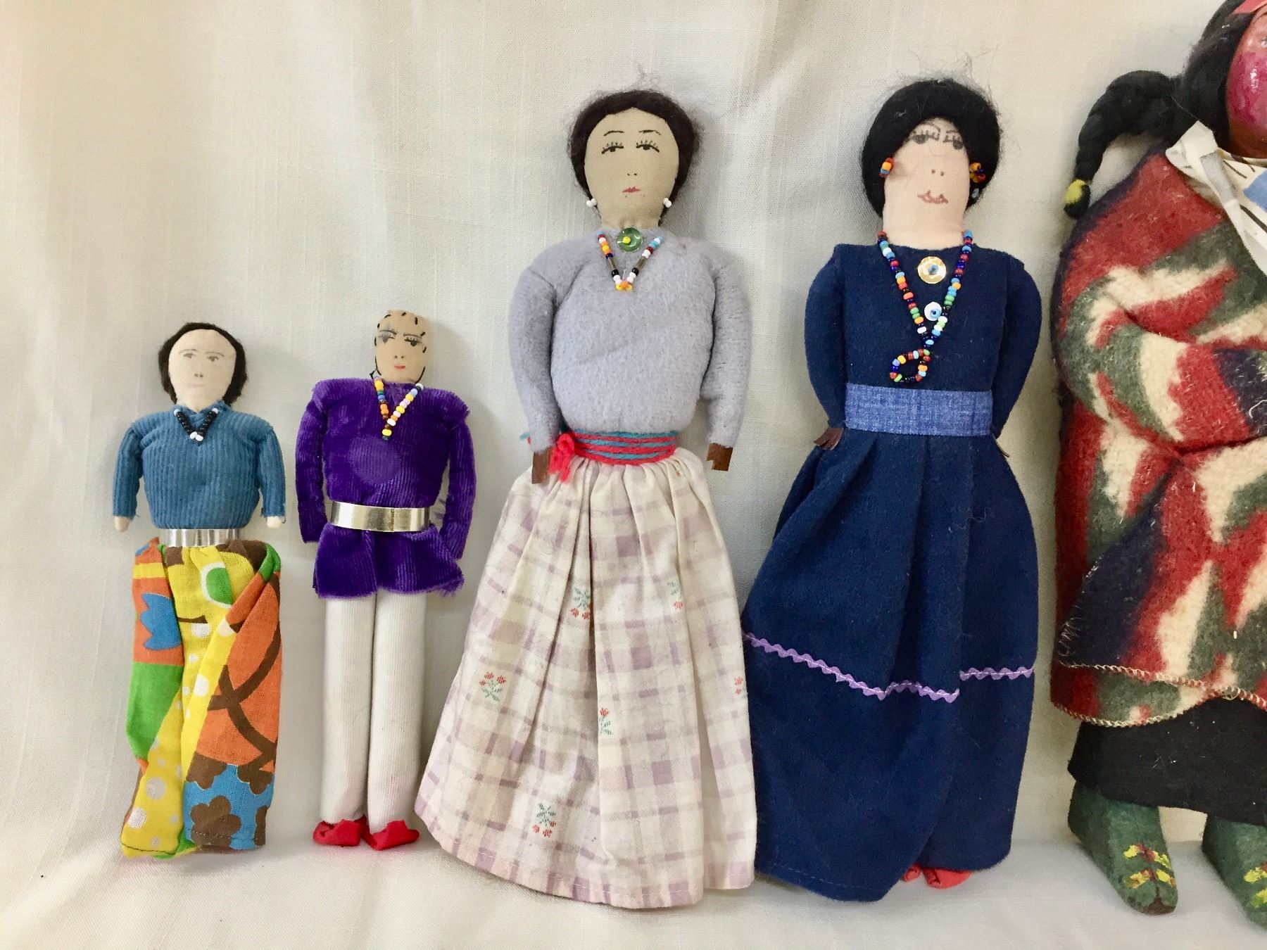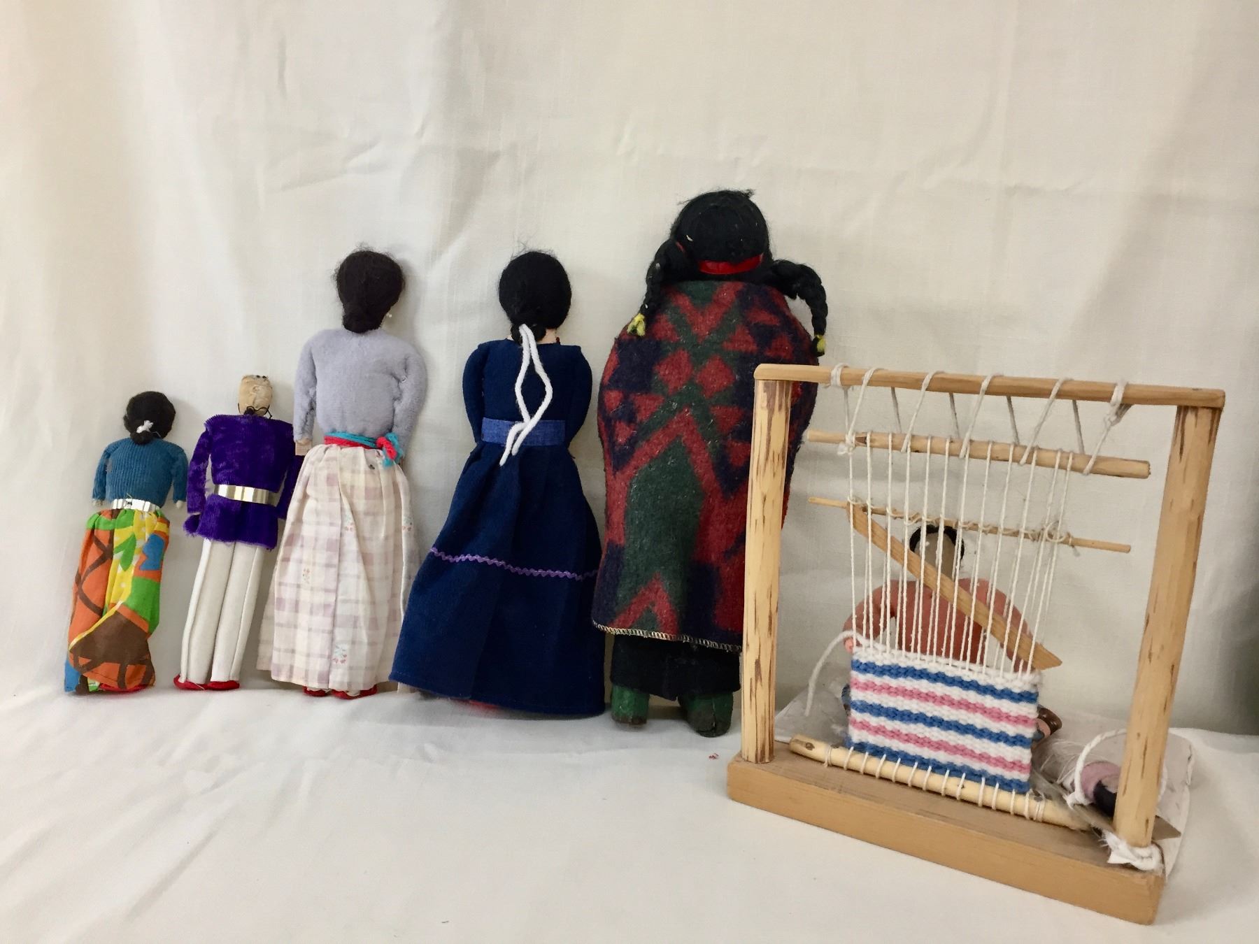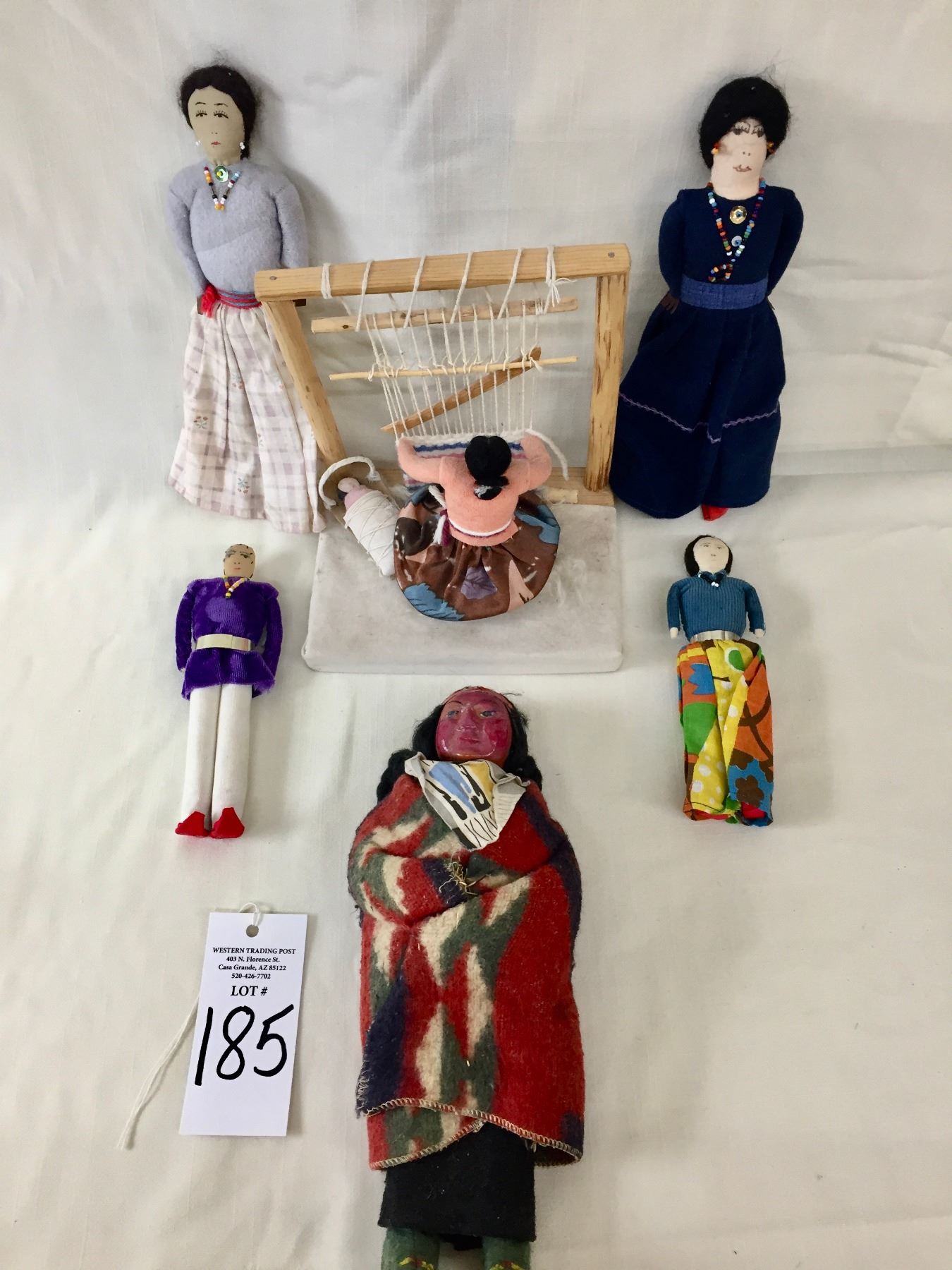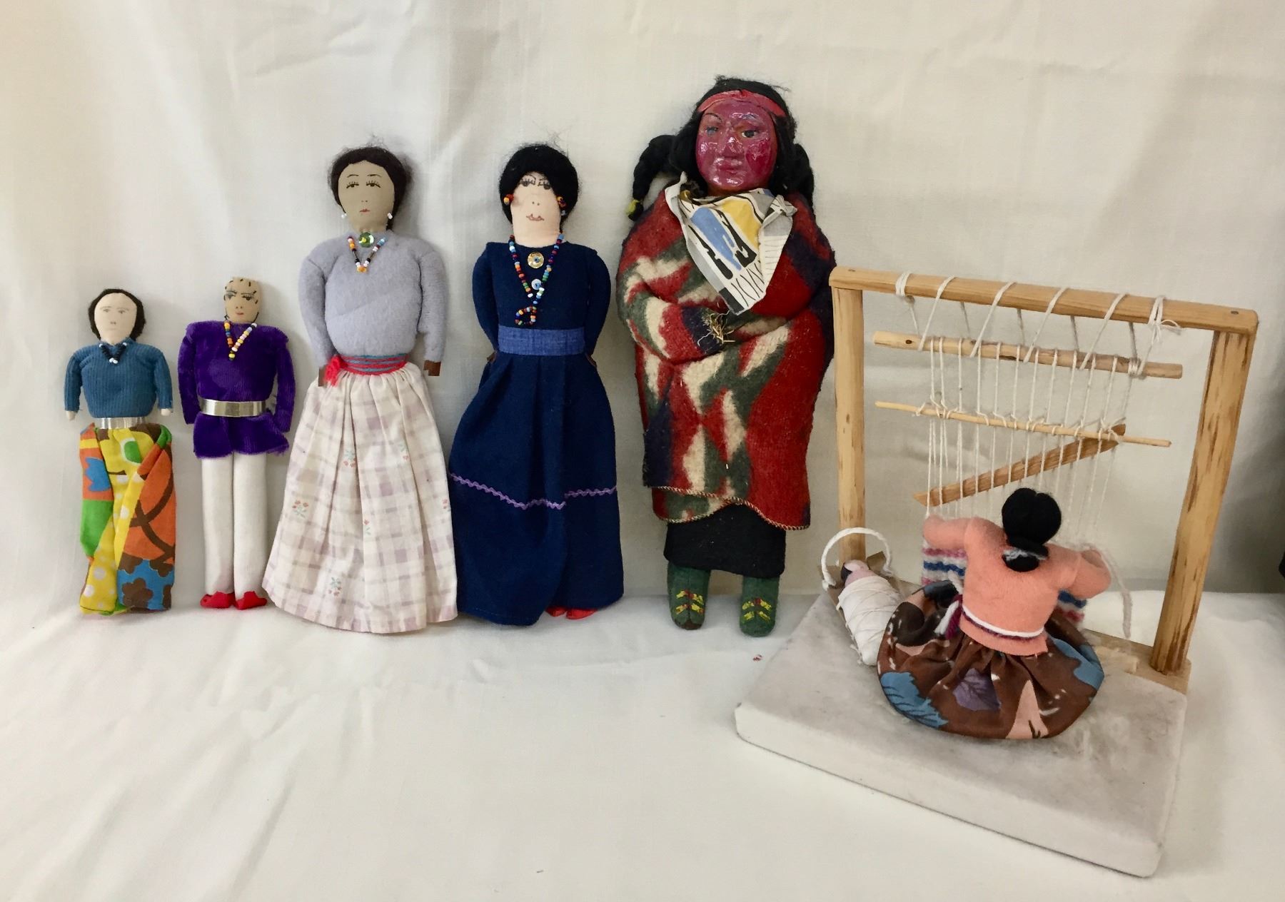 Description: Included in this lot is a group of Navajo Dolls and a weaving sampler. These are in various sizes and styles. Maker: Varies. Approx. Age: Vintage. Size: Varies. Condition: Good for their age, normal wear expected. Please look closely at the pictures - they are an important part of our description. Shipping: There will be a $10 handling / packaging fee for shipping this lot. The actual cost of postage will be added on top of that.