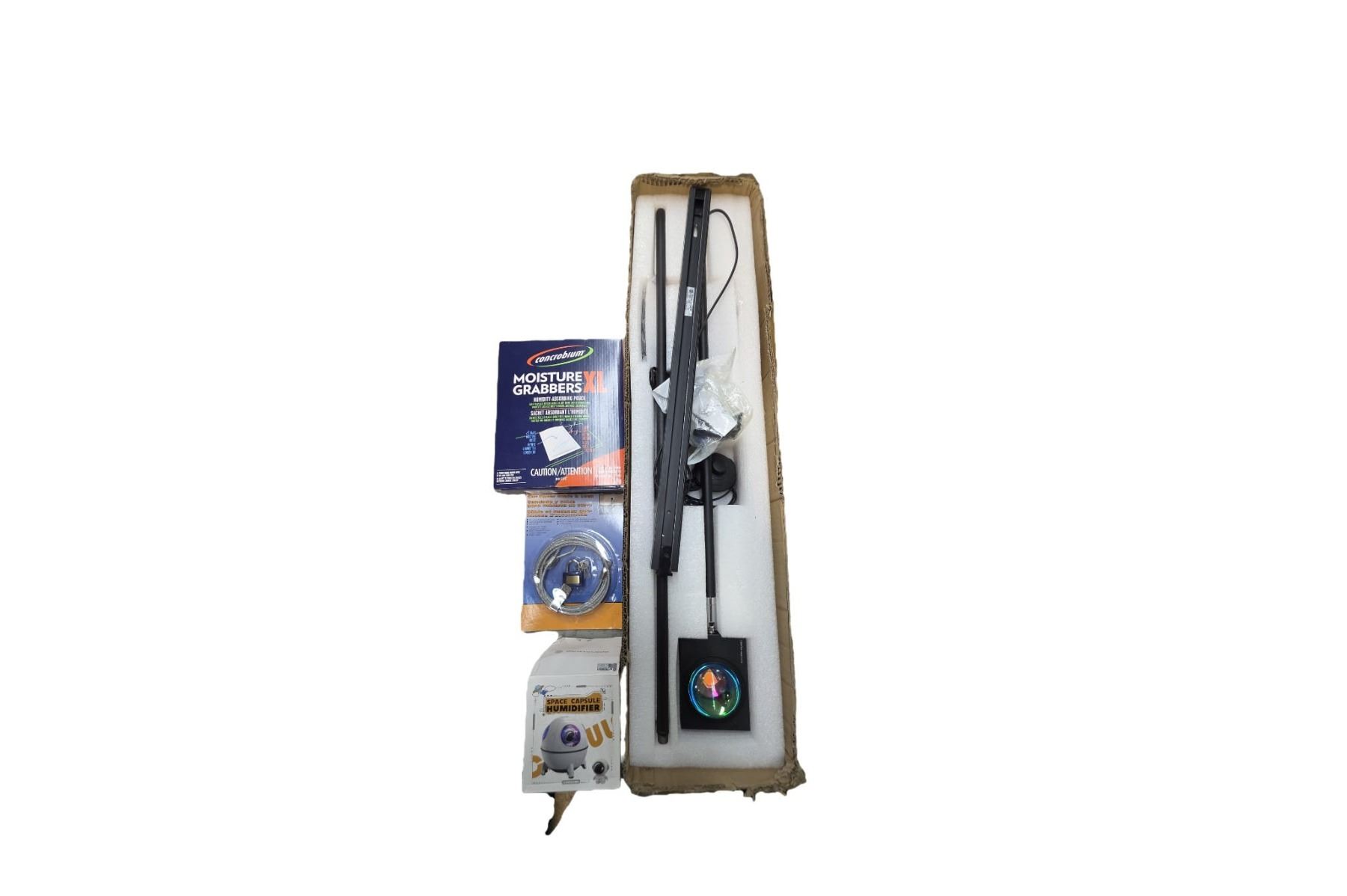 Group of New Items - includes a Space Capsule Humidifier/Moisture Grabbers XL Pouch & Black Nordic Home Halo Sunrise lamp