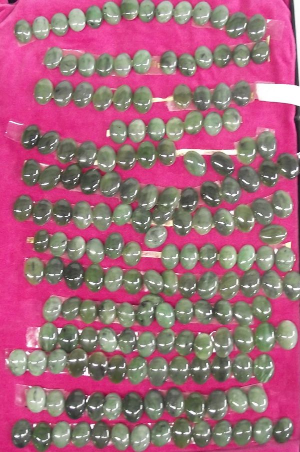 Group of Over 170 Jade Cabochons. Uniform, flat back cabochons ready to use in your jewelry design. Each is approximately 18mm x 13mm. Riker display box included.