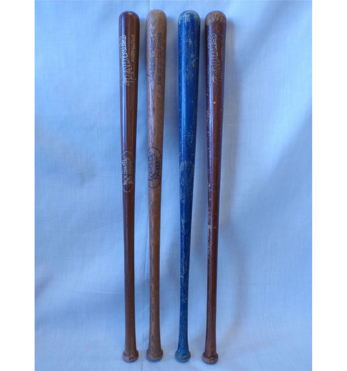 Four, game-day promotional baseball bats. 1 - Los Angeles Dodgers, 3 - San Diego Padres. All 14" Long. 3 Padres bats are Louisville Sluggers. Dodgers manufacturer graphics difficult to read. Shipping on this lot: $15.00. Additional Shipping Charges for Lots sent outside of the U.S