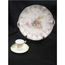 Group of RS Prussia, Plate with Yellow and Pink Rose Design and Teacup and Saucer