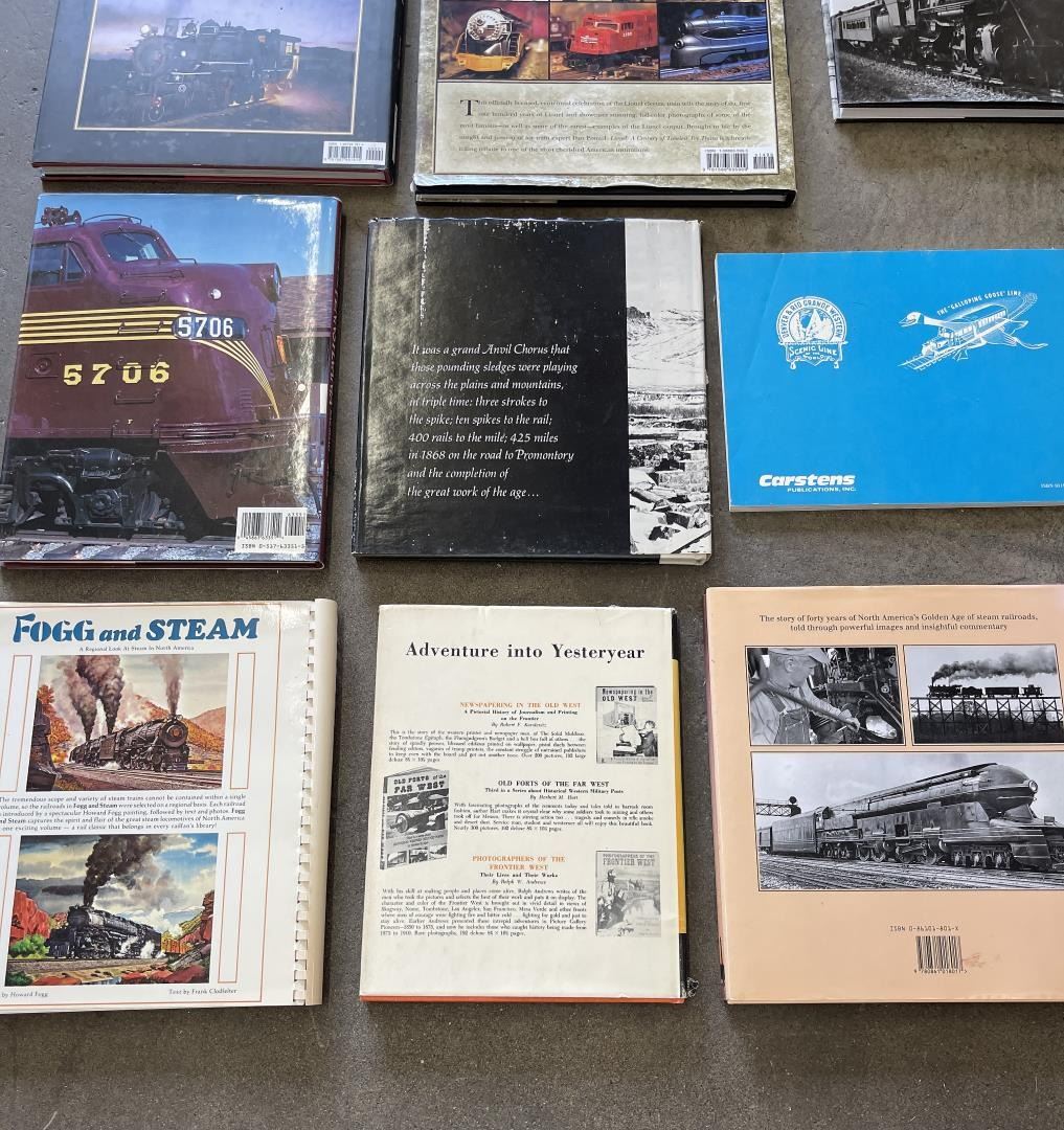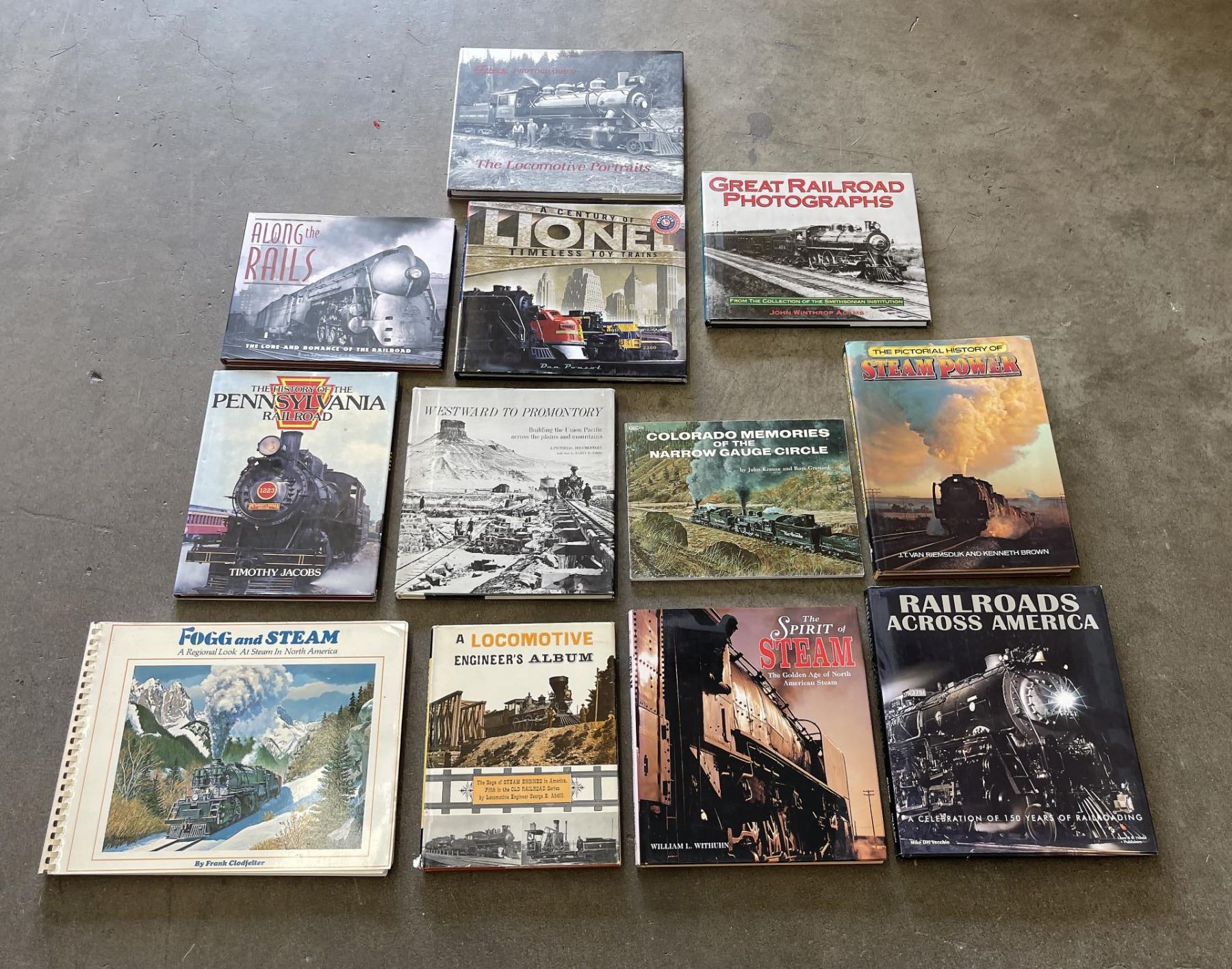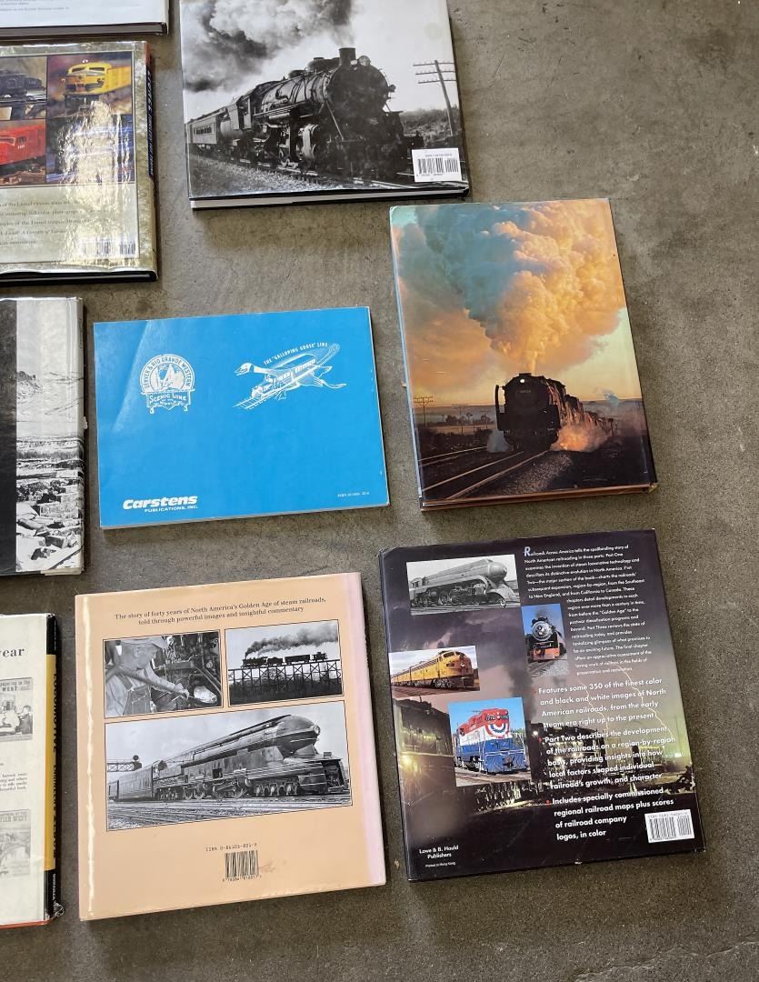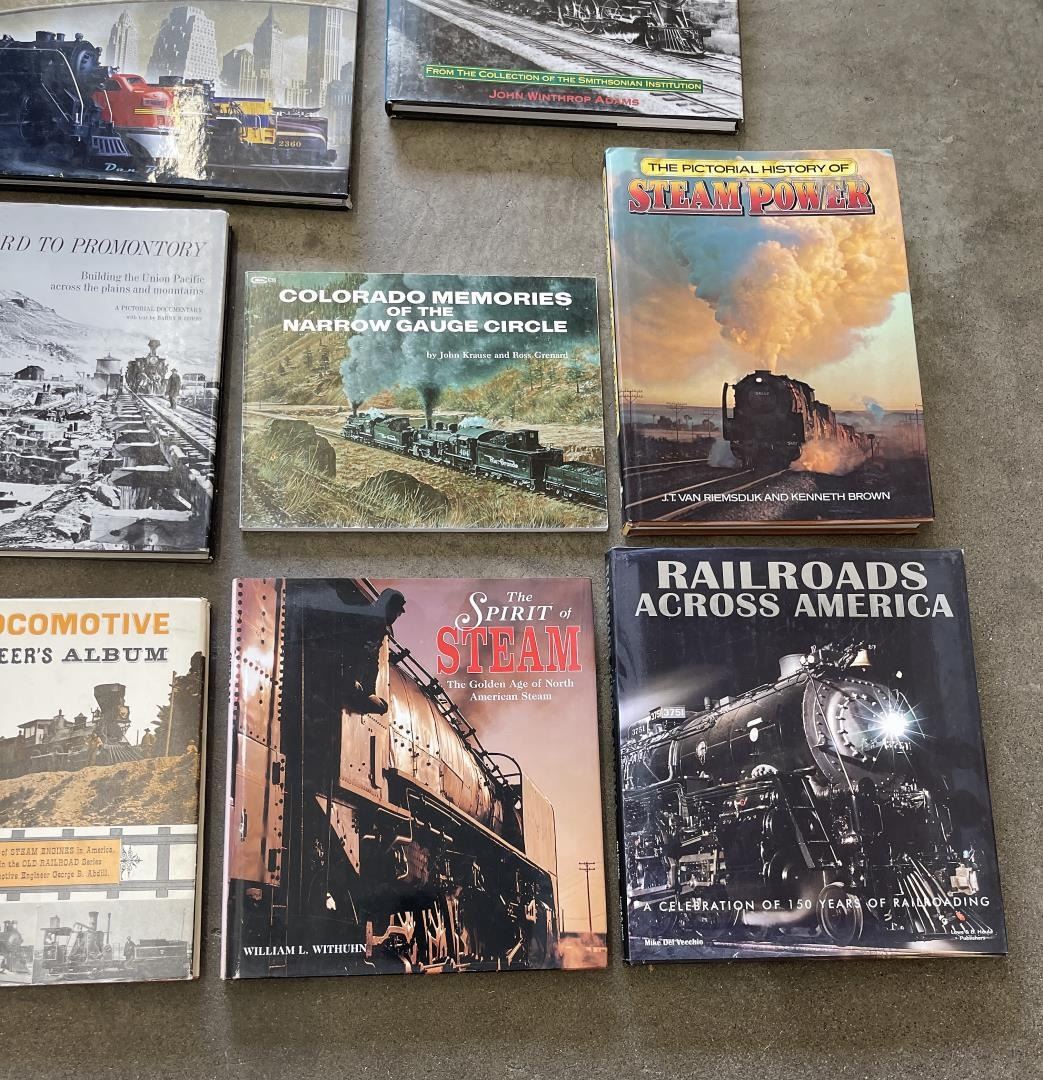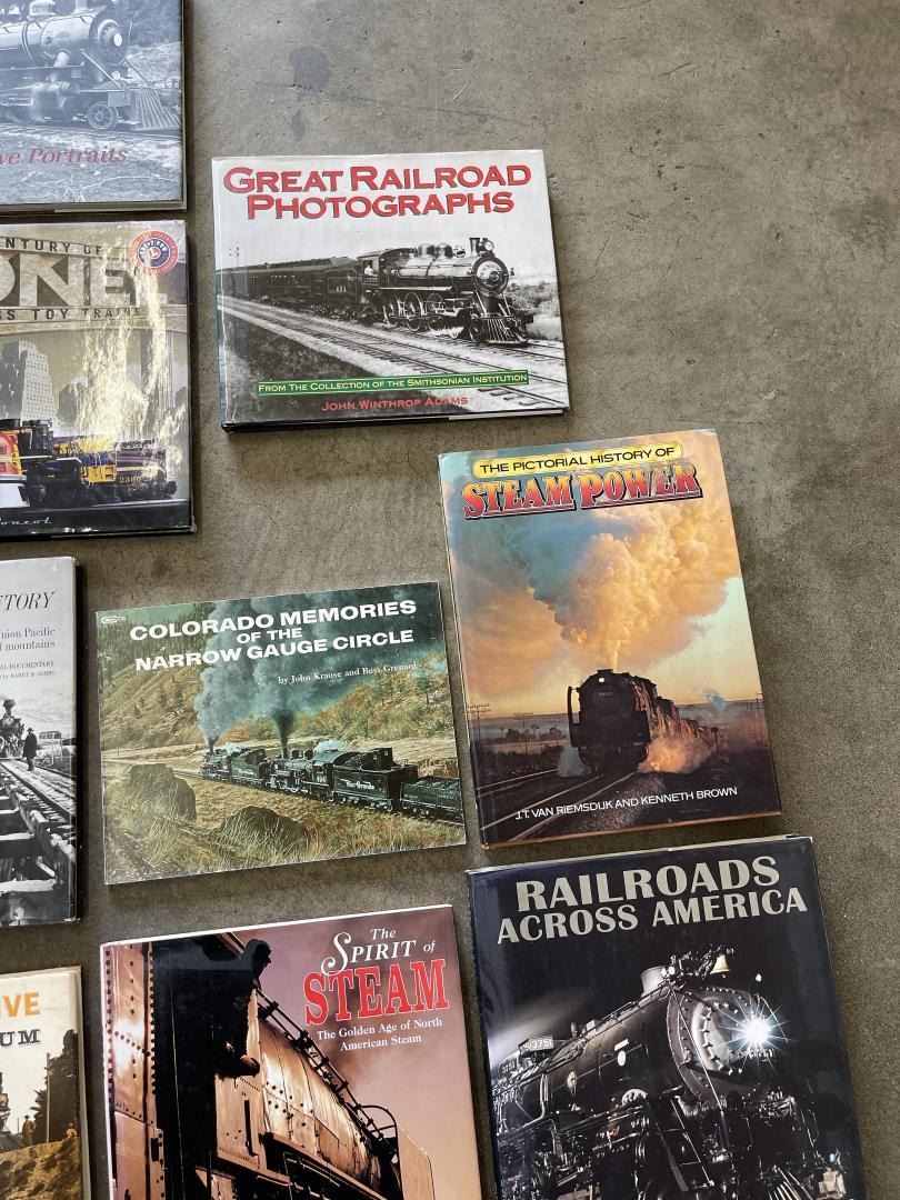 Titles include: The Locomotive Portraits, Great Railroad Photographs, A century of Lionel, Along the Rails, The History of the Pennsylvania Railroad, Westward to Promontory, Colorado Memories of the Narrow Gauge, The Pictorial History of Steam Power, Fogg and Steam, A Locomotive Engineers Album, The Spirit of Steam, Railroads Across America.