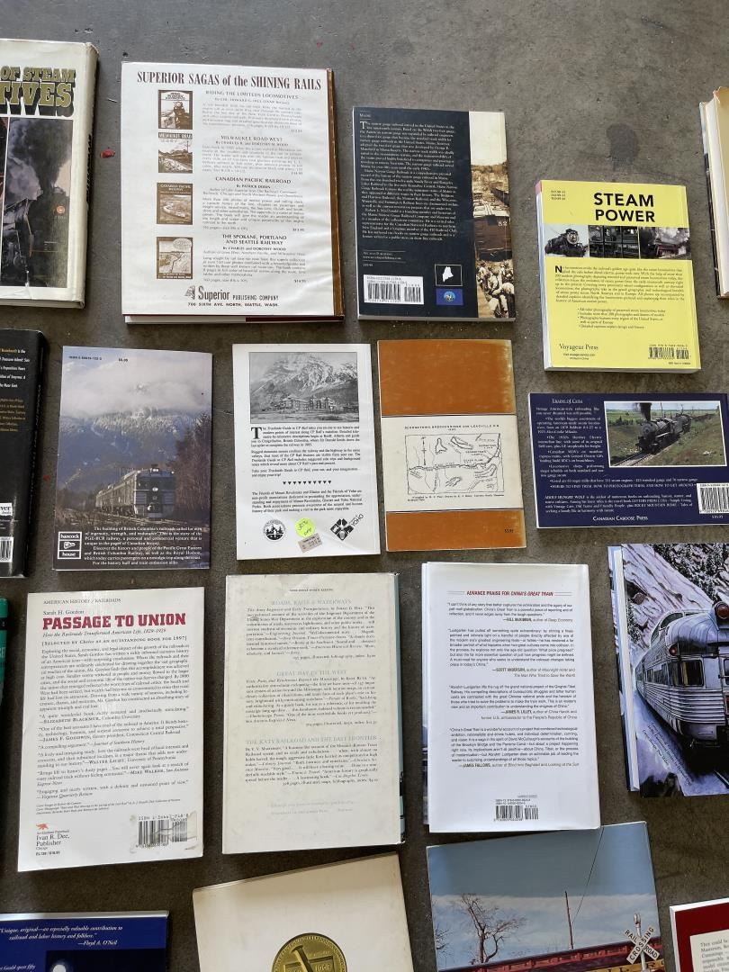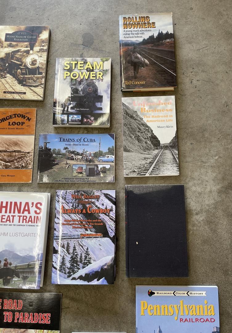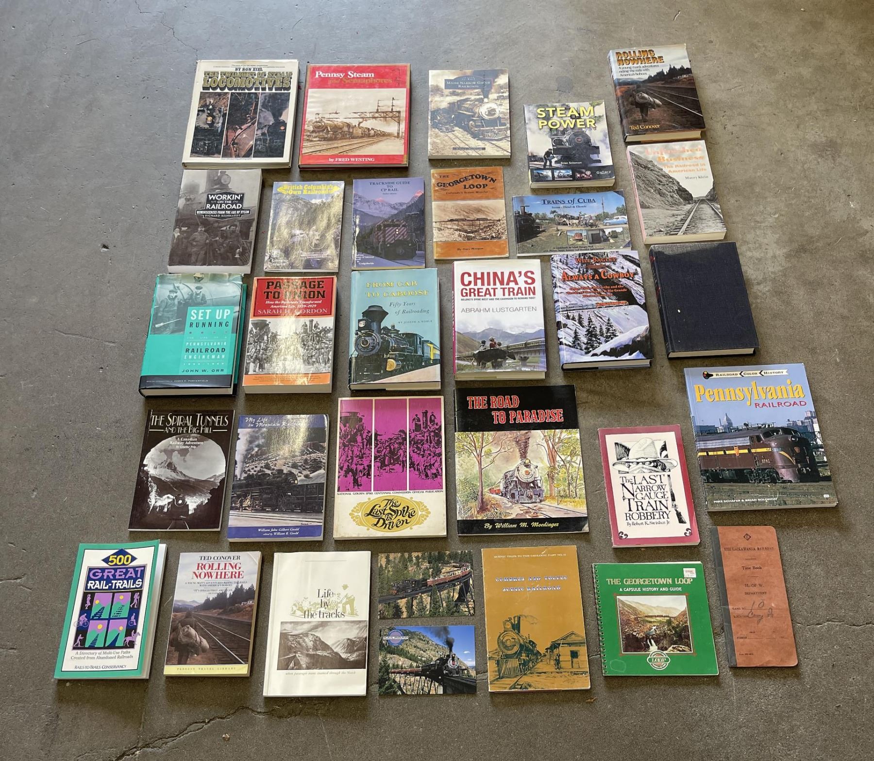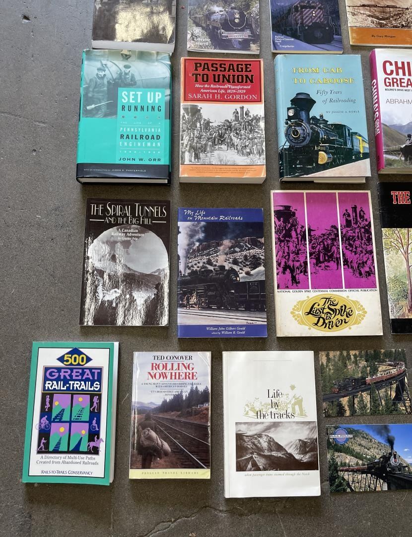 The Twilight of Steam Locomotives, Pennsy Steam, Maine Narrow Gauge, Steam Power, Rolling Nowhere, Workin on the Railroad, British Columbias own Railroad, Trackside Guide to CP Rail, The Georgetown Loop, Trains of Cuba, Unfinished Business, Set Up Running, Passage to Union, From Car to Caboose, China's Great Train, Always a Cowboy, The Spiral Tunnels My Life in Mountain Railway, The Last Spike is Driven, The Road to Paradise, The Last Narrow Gauge Train Robbery, Pennsylvania Railroad, 500 Great Rail Trains, Rolling Nowhere, Life by the Tracks, The Georgetown Loop.