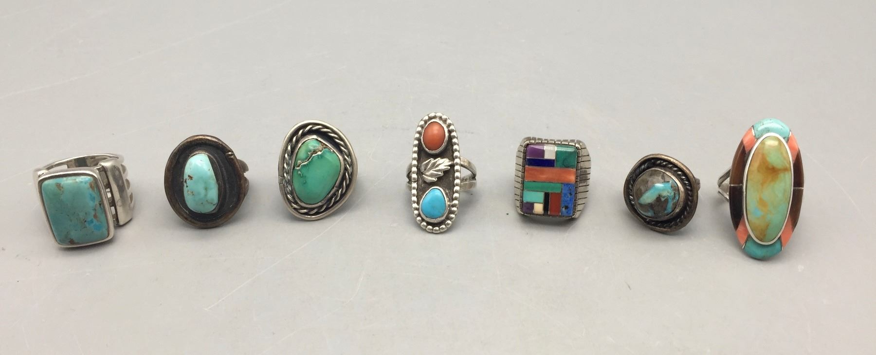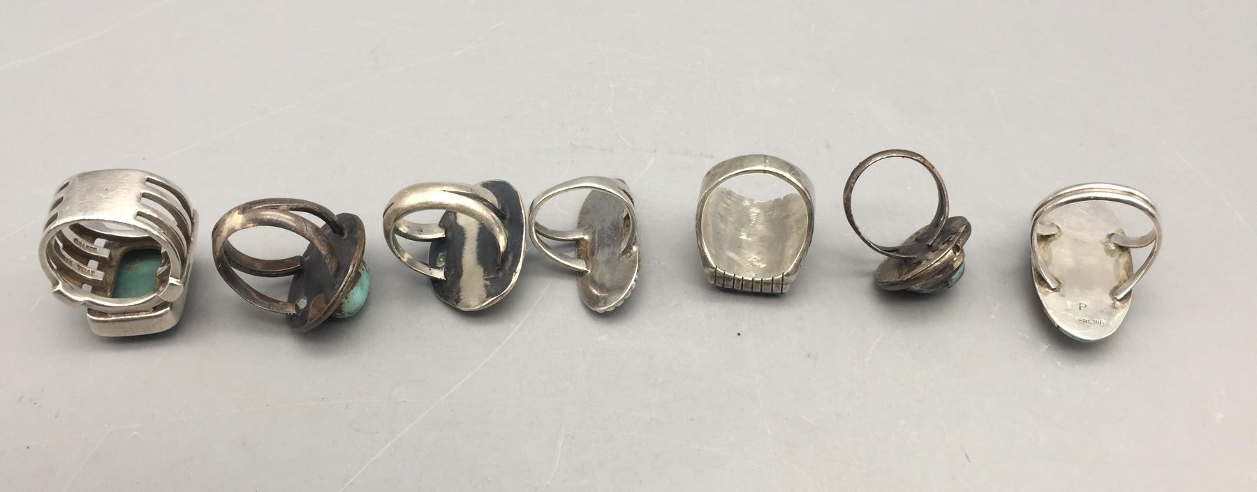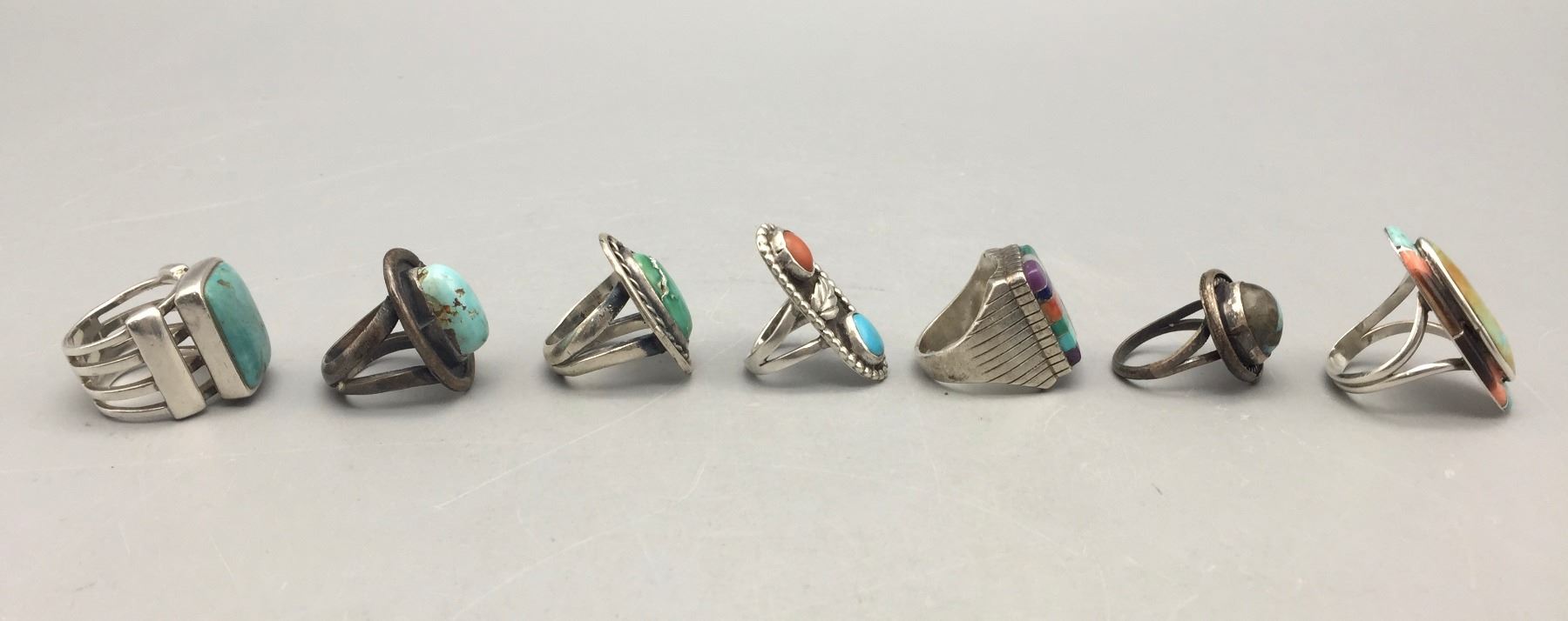 Description: For sale in this lot is a group of seven nicer sterling silver rings with various stones in varying sizes and styles.