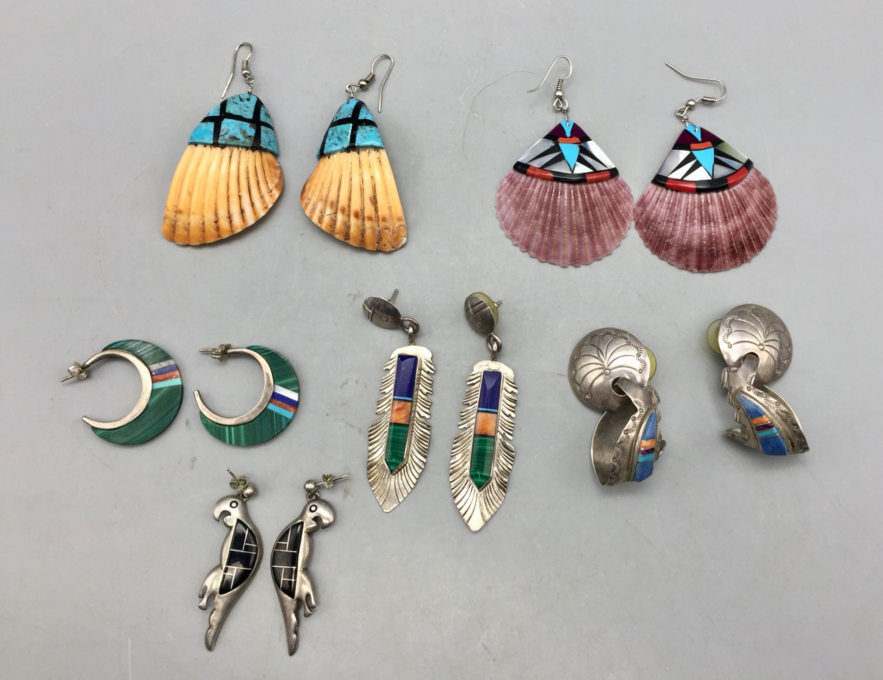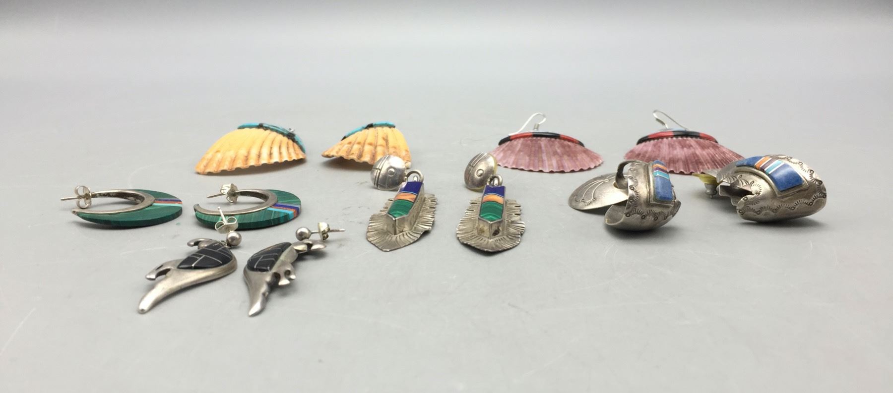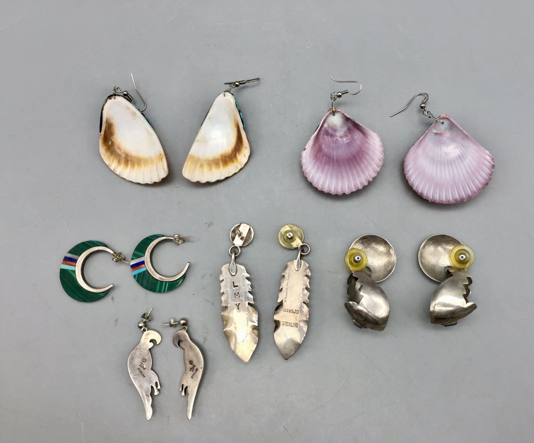 Description: For sale in this lot is a group of six pairs of earrings in a variety of sizes and styles. They appear to be sterling silver where applicable. Maker: Various. Approx. Age: Vintage to modern. Size: Various. Combined weight is 58.2 grams. Condition: Good for their age, normal wear expected. Please look closely at the pictures - they are an important part of our description. Shipping: There will be a $5 handling / packaging fee for shipping this lot. The actual cost of postage will be added on top of that.
